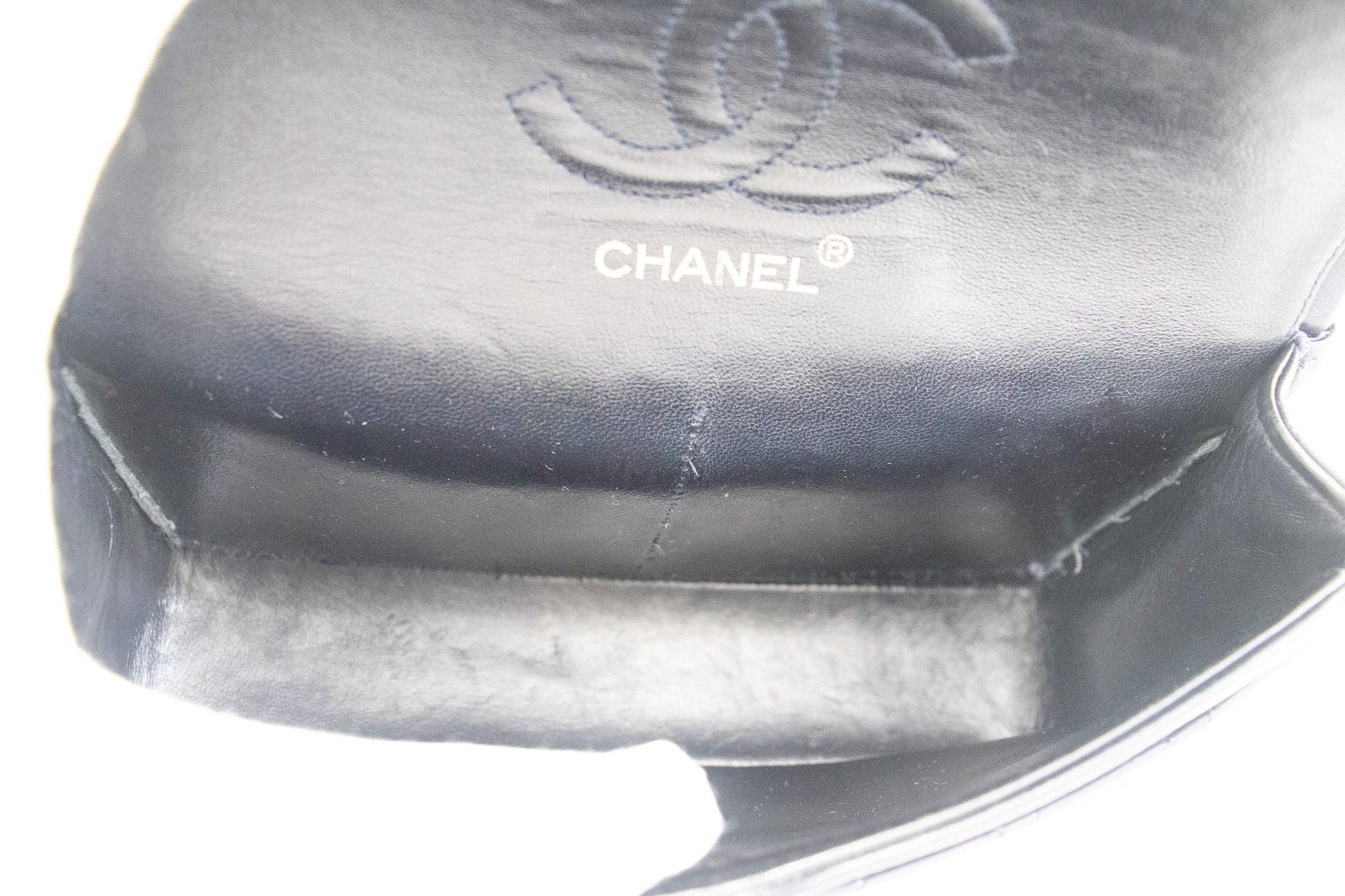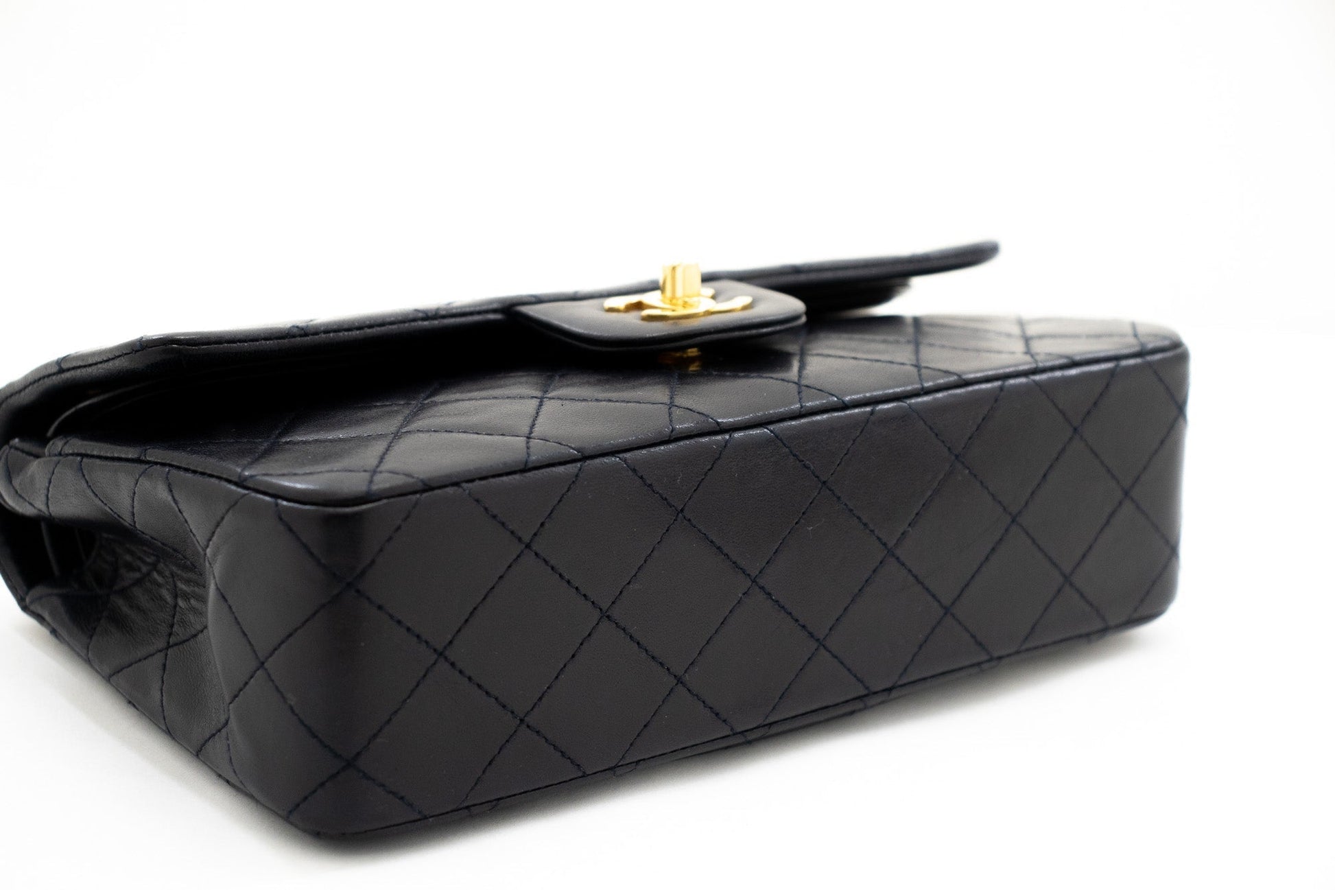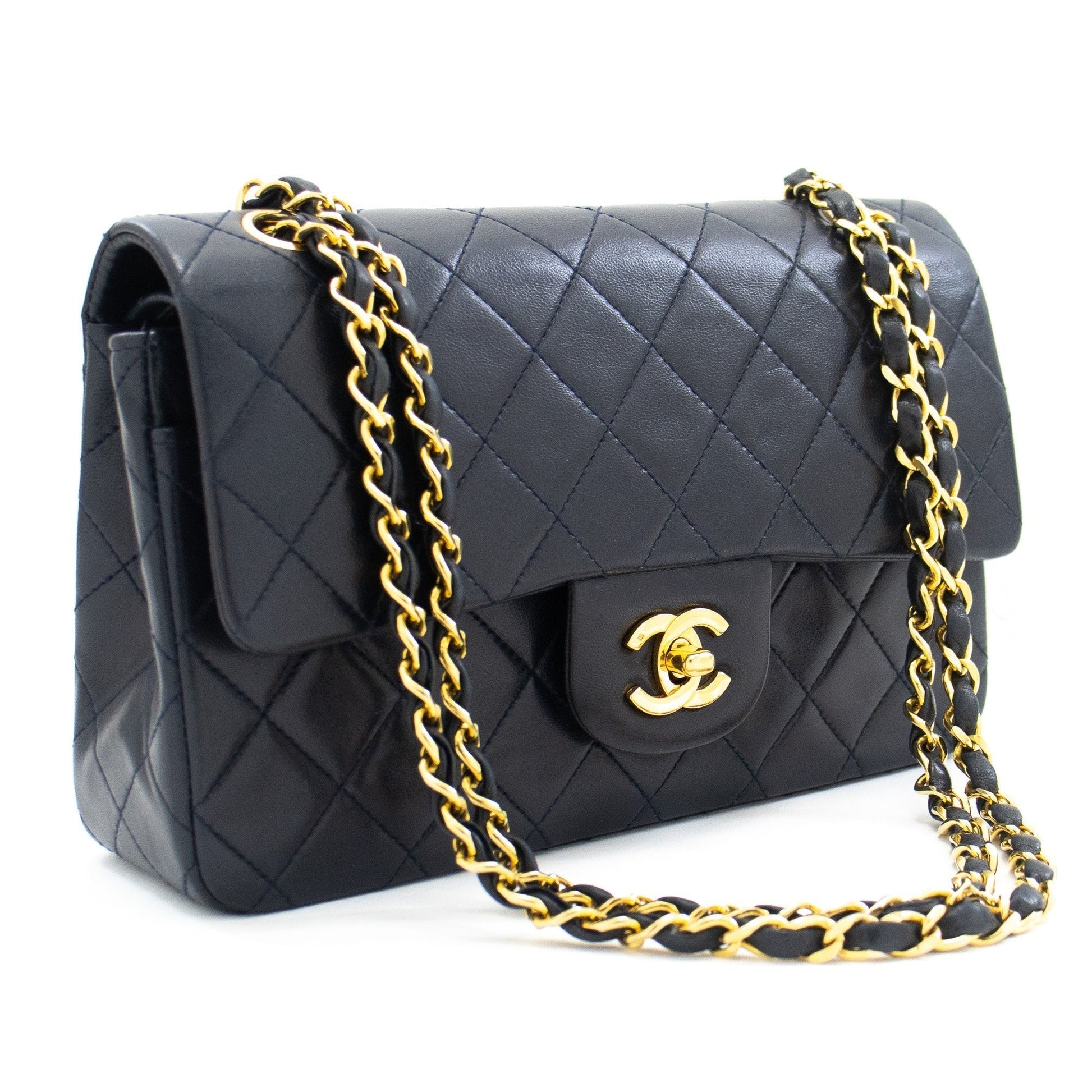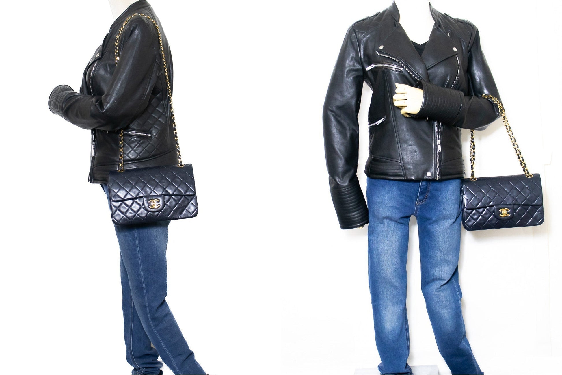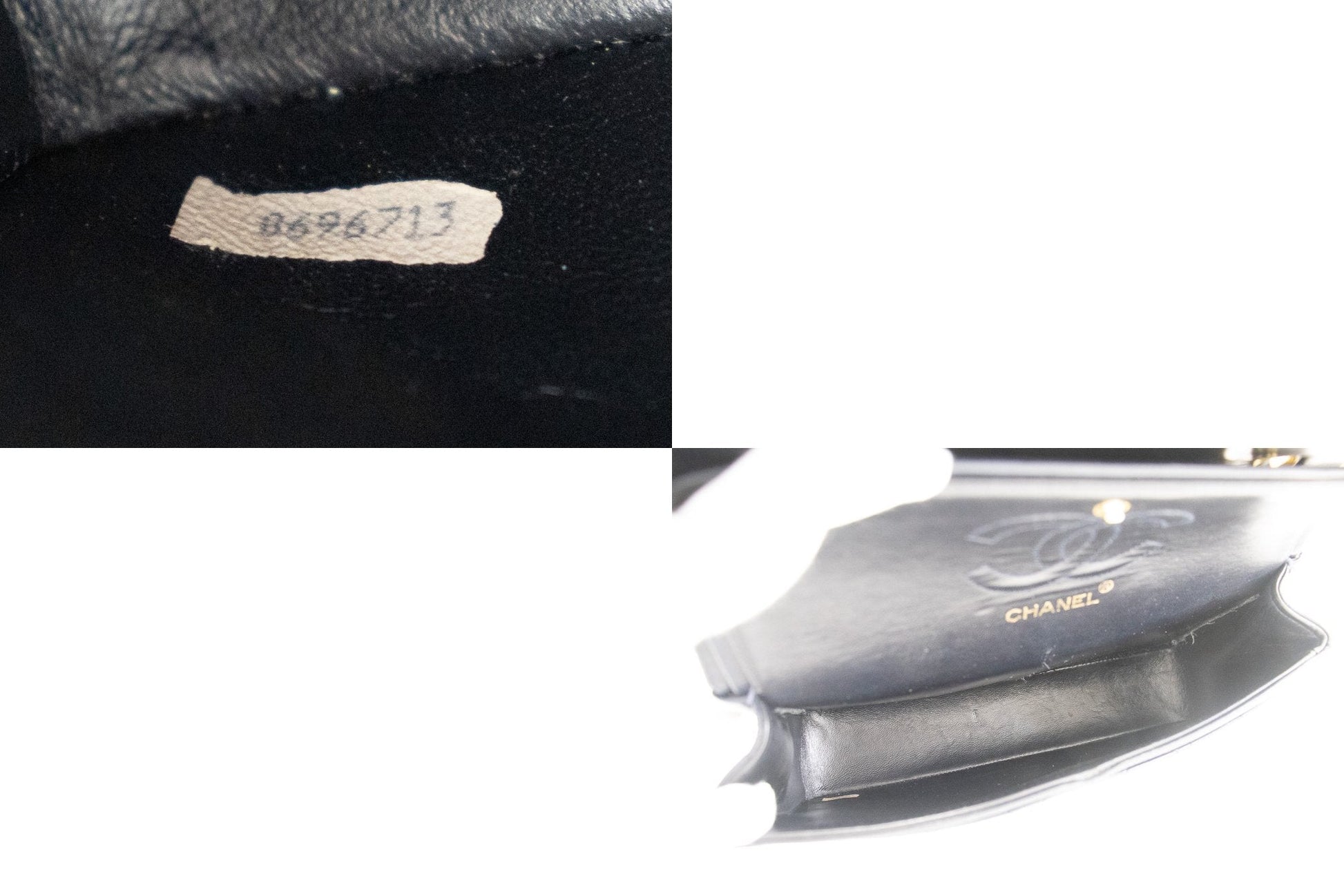 An CHANEL Classic Double Flap 9" Chain Shoulder Bag Navy made of black Lambskin g71 This item is Vintage / Classic. The year of manufacture would be 1986-1988.