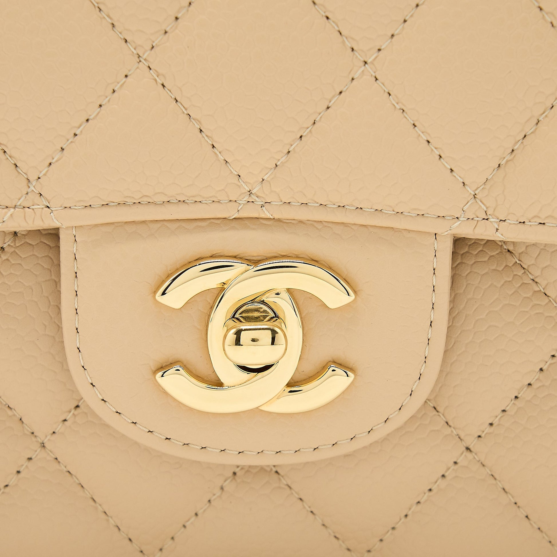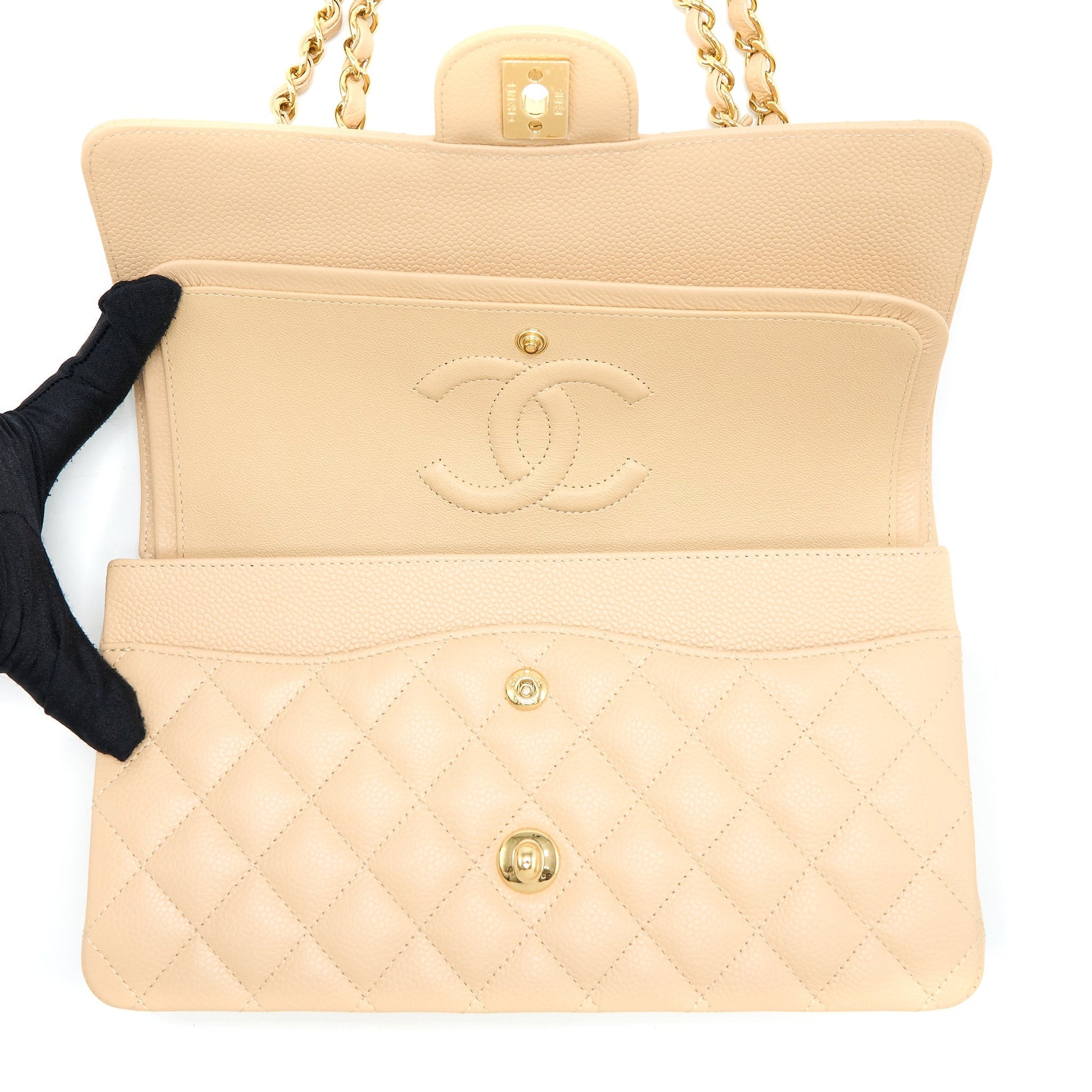 Chanel Medium Classic Double Flap Bag Caviar Beige GHW