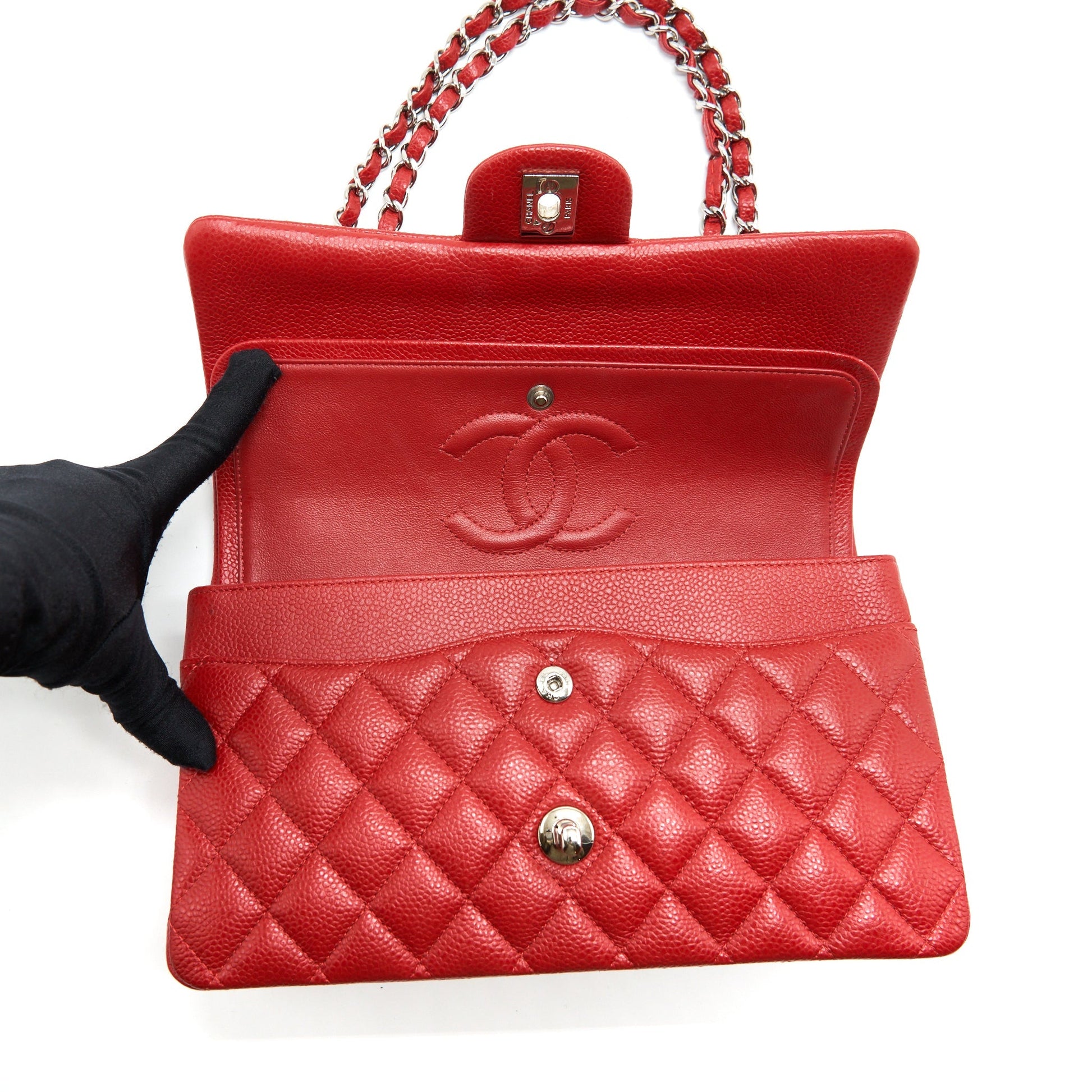 Chanel Classic Double Flap Bag Caviar Red SHW