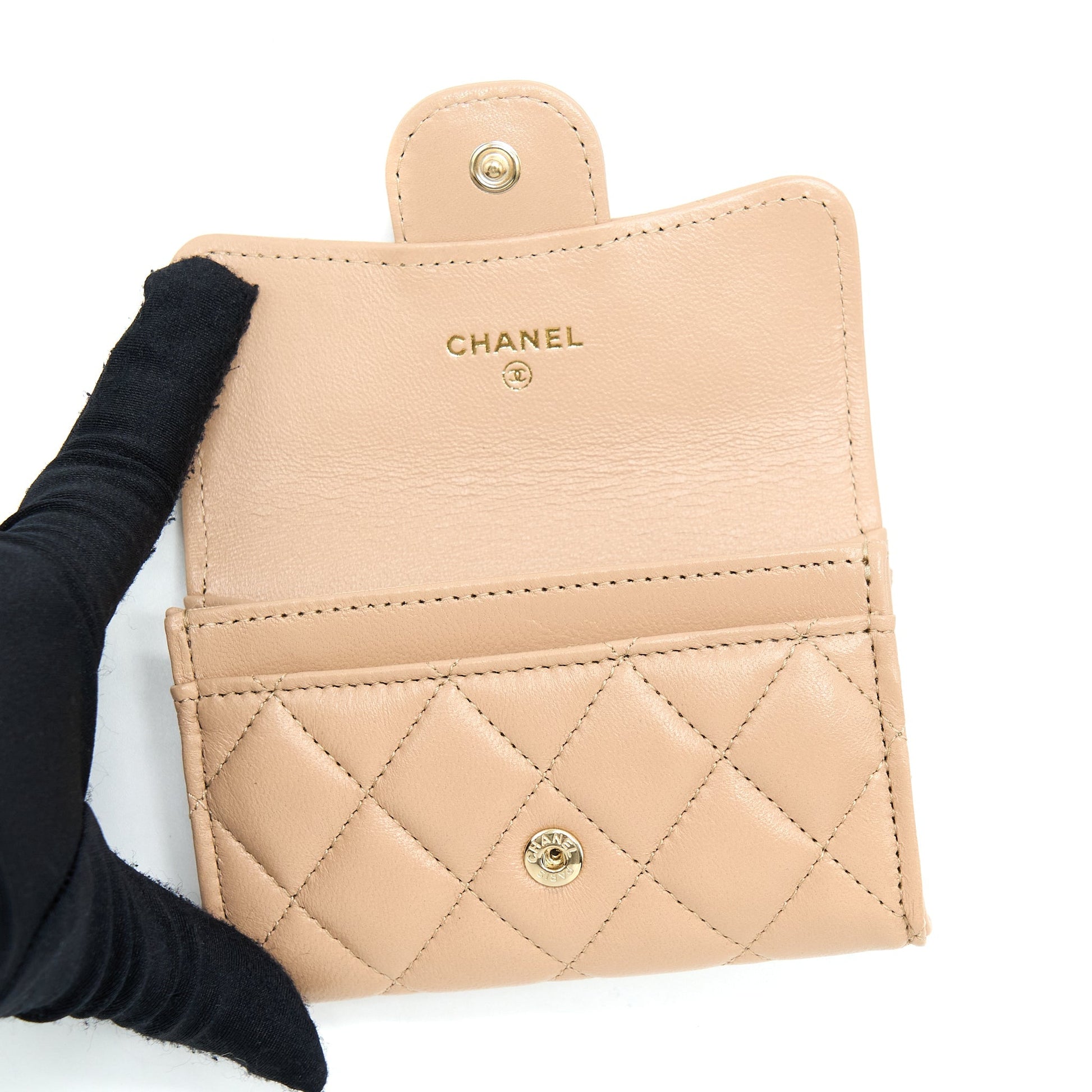 Chanel Classic Flap Card Holder Lambskin Beige LGHW