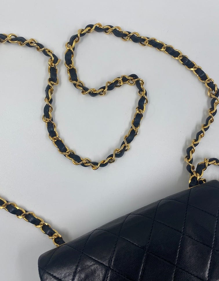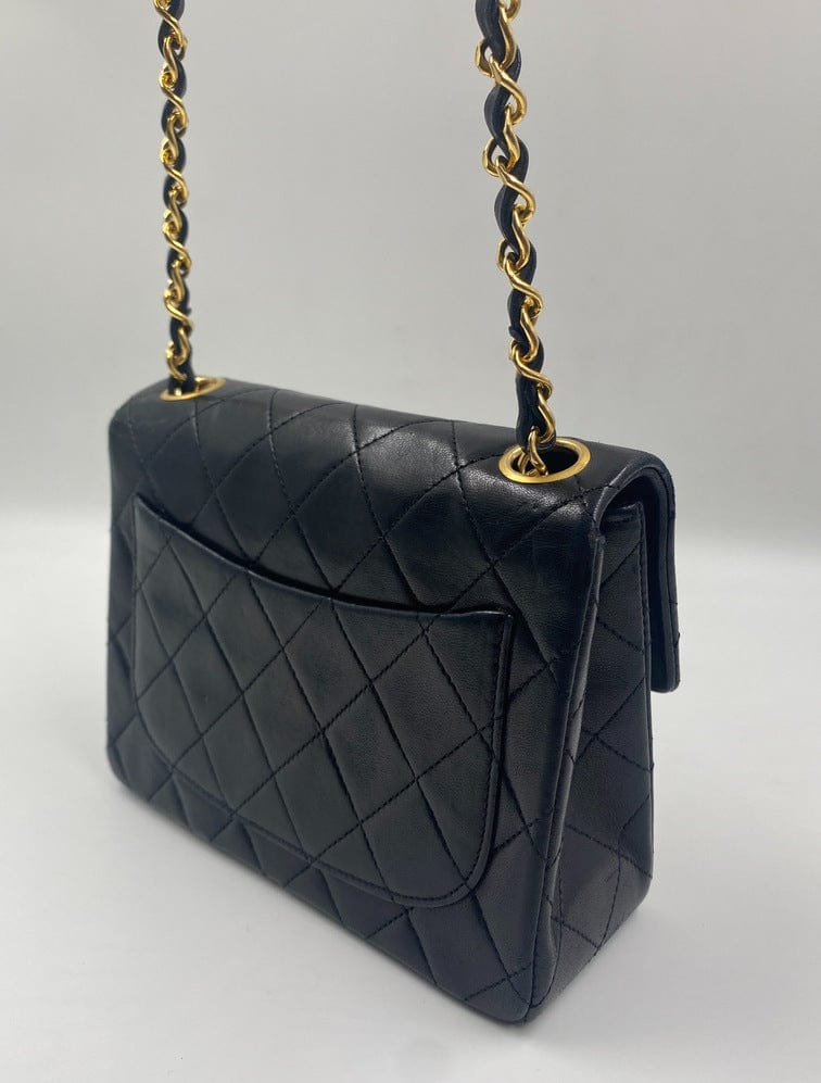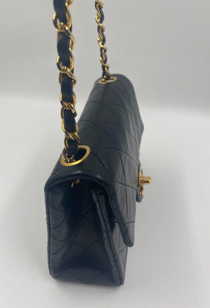 This bag is in excellent vintage condition with some very minor signs of use. The hallmark on the CC turn lock confirms the gold hardware is plated in 24K gold, a real collectors item. Before 2008, Chanel Classic Flaps with gold coloured hardware (chains, clasps, grommets, and CC turn locks) were all plated in real 24K gold. There are some minor creases to the leather. Please view all photos before buying. The hardware is in New condition with minor signs of wear. This bag comes with its , serial sticker plus the original bag. The serial number on the tells us this bag was made between 1989-1991.