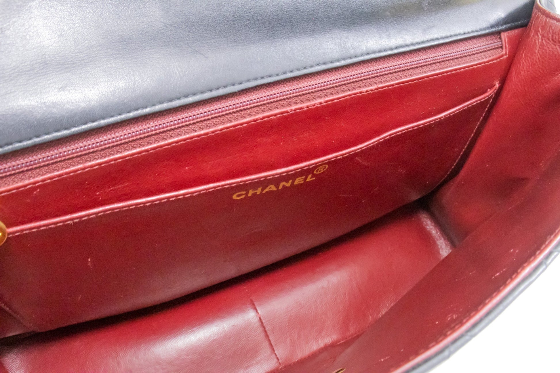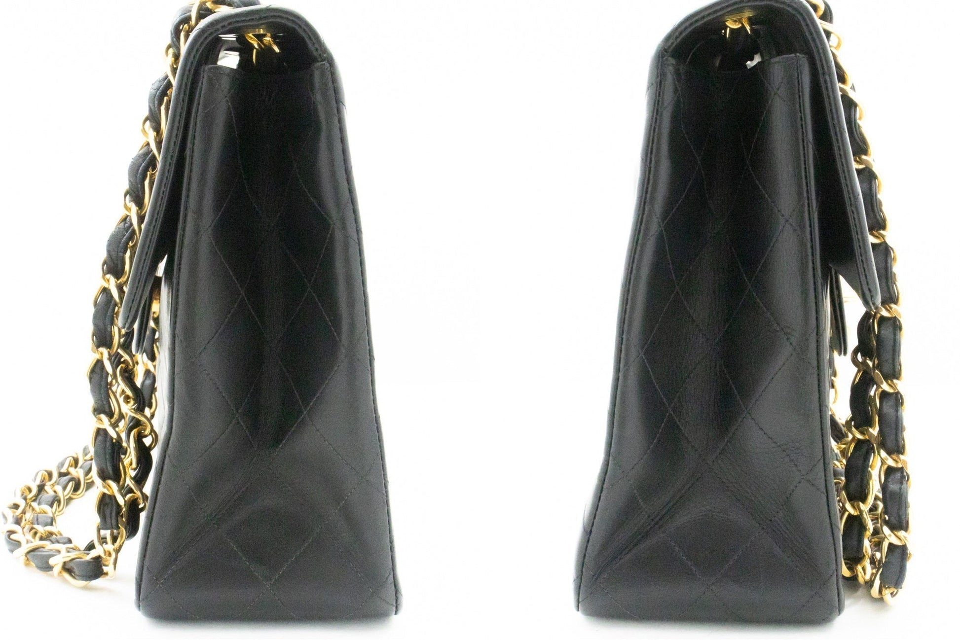 An CHANEL Classic Large 13" Flap Chain Shoulder Bag Black made of black Lambskin j58 This item is Vintage / Classic. The year of manufacture would be 1991-1994.