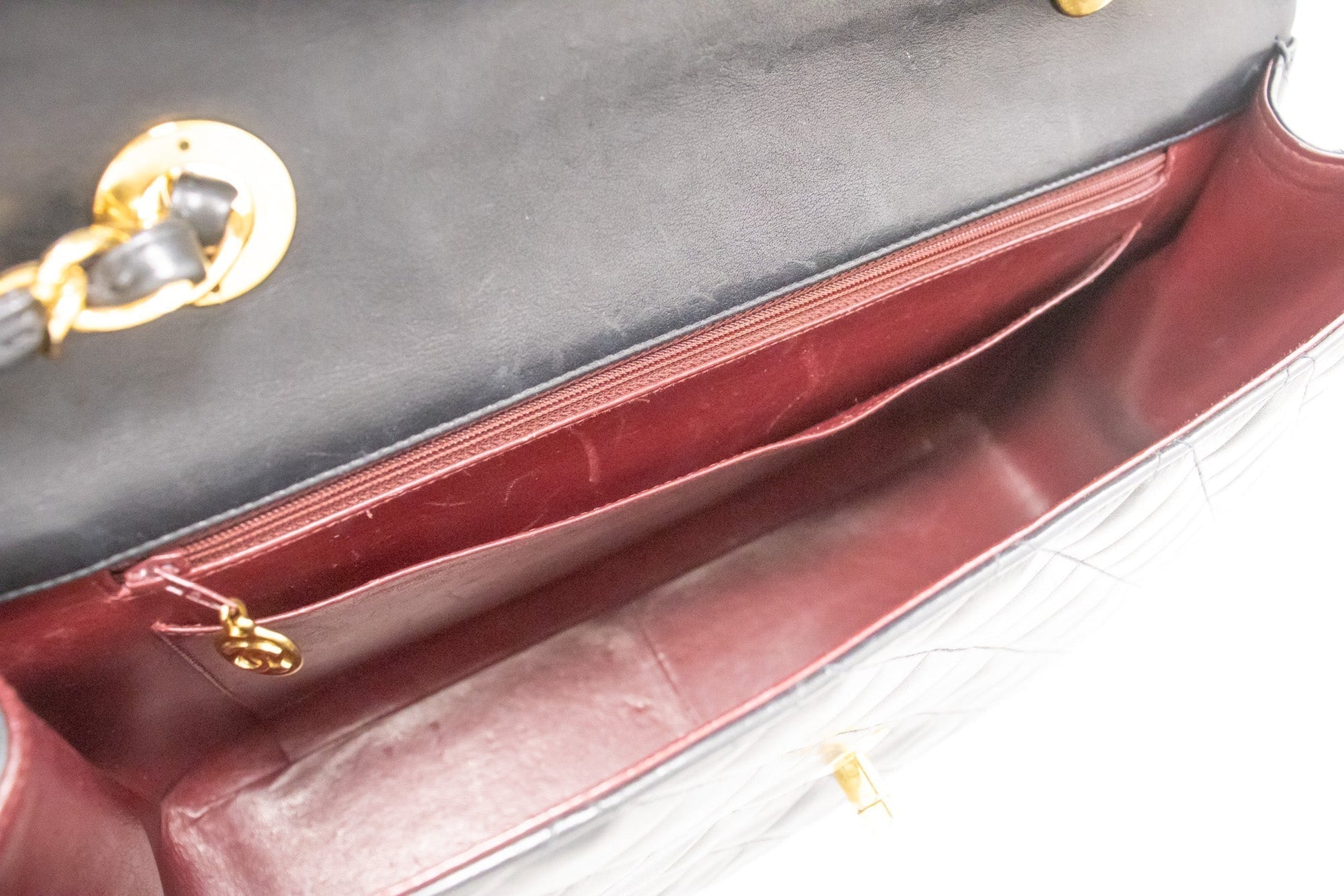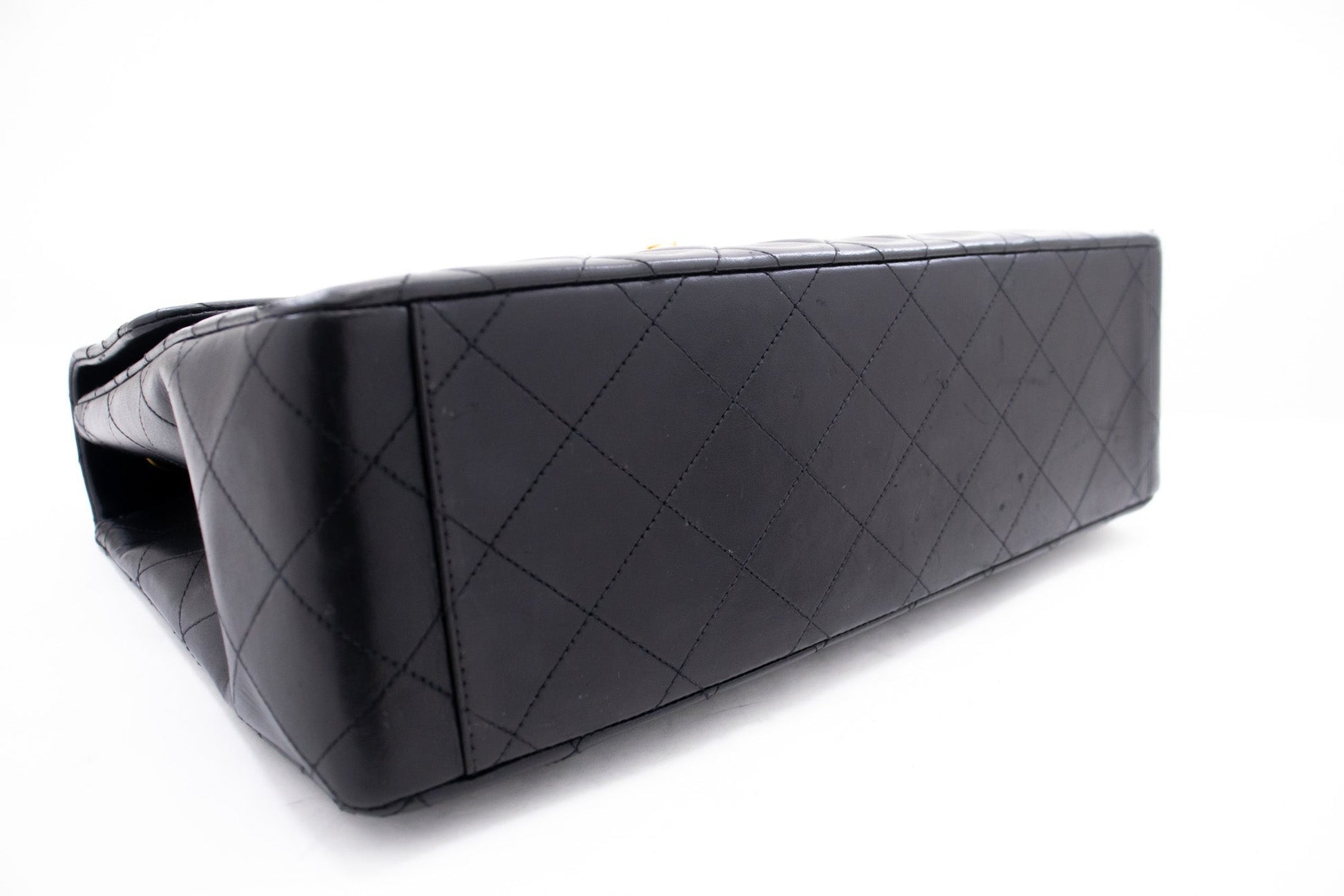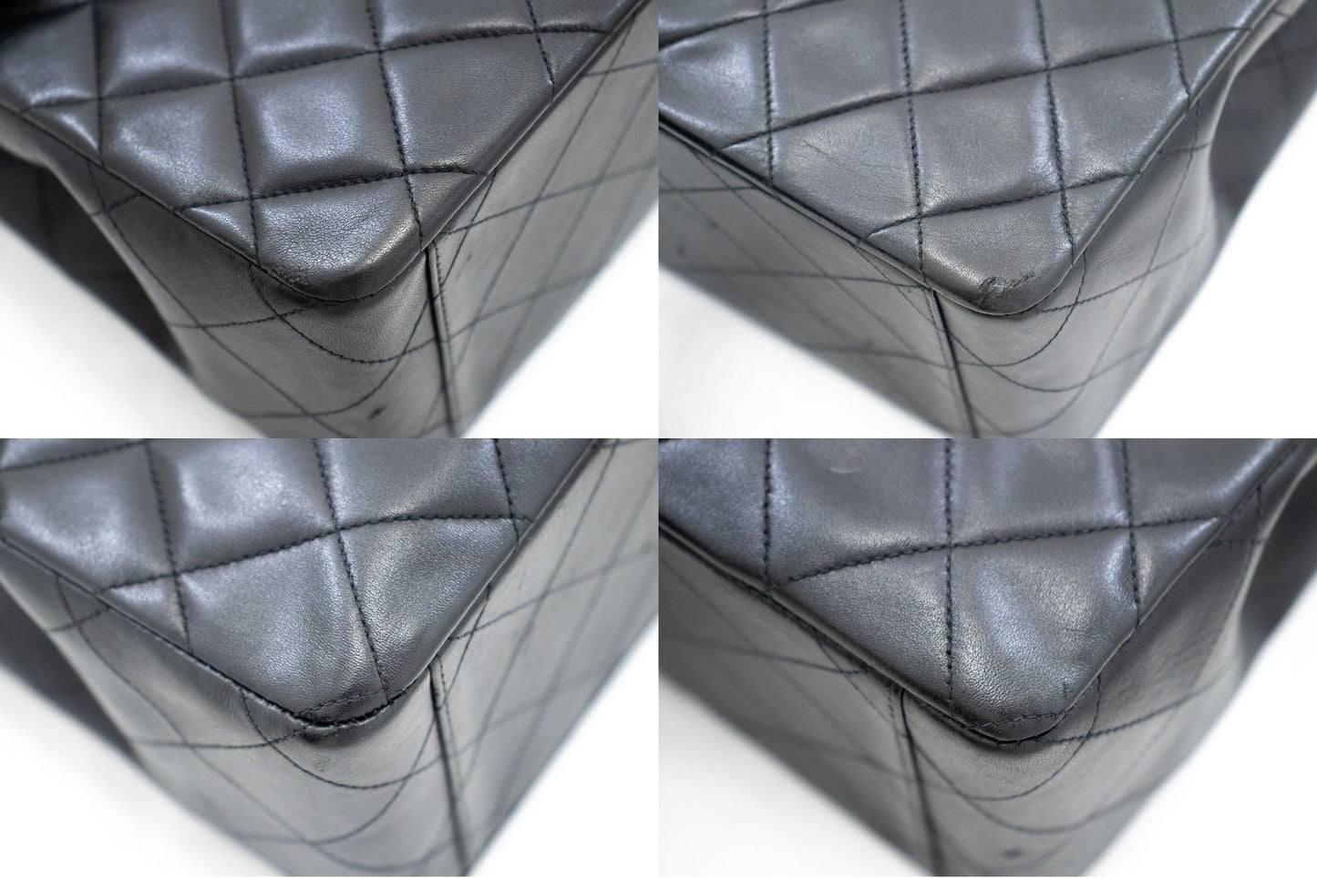 An CHANEL Classic Large 13" Flap Chain Shoulder Bag Black made of black Lambskin j74 This item is Vintage / Classic. The year of manufacture would be 1994-1996.
