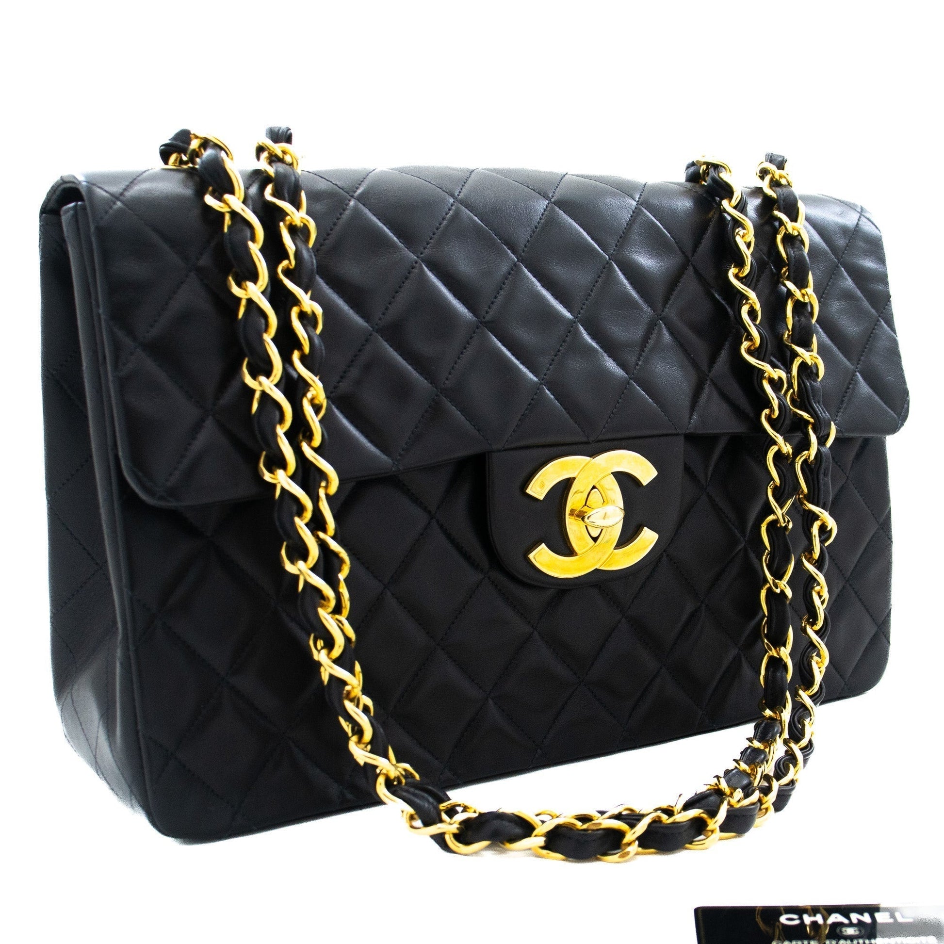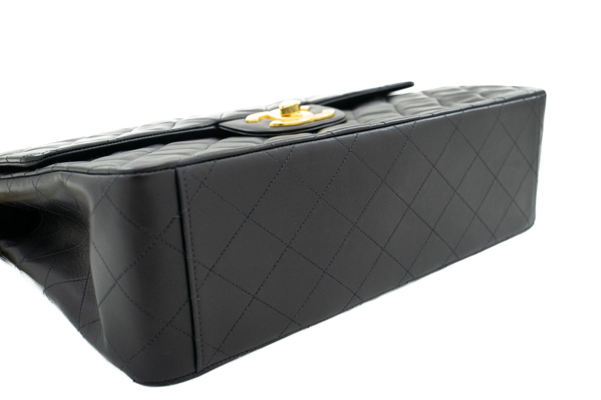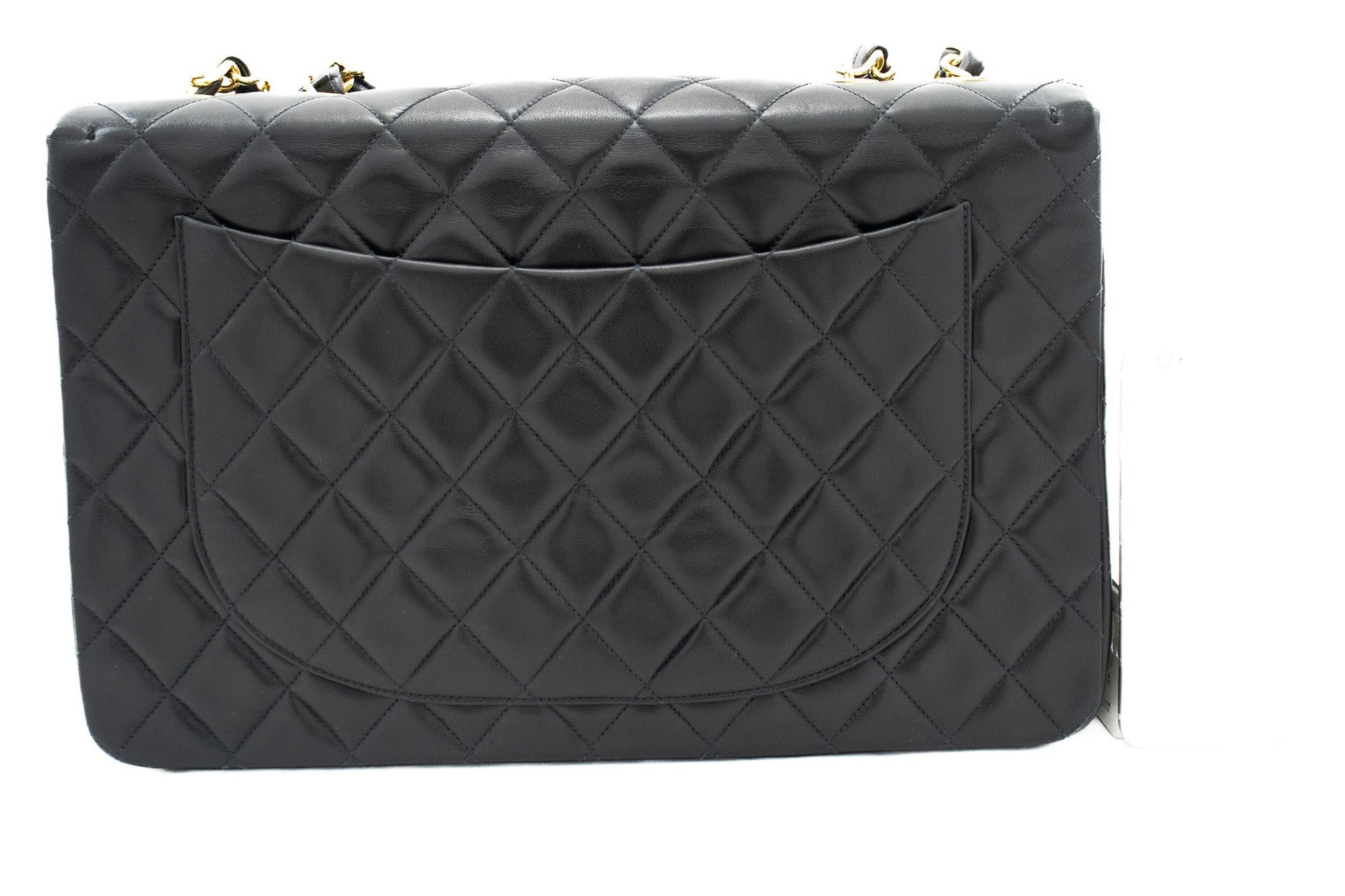 An CHANEL Classic Large 13" Flap Chain Shoulder Bag Black made of black Lambskin j82 This item is Vintage / Classic. The year of manufacture would be 1994-1996.