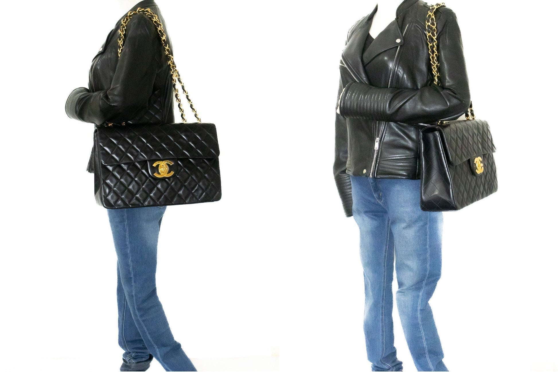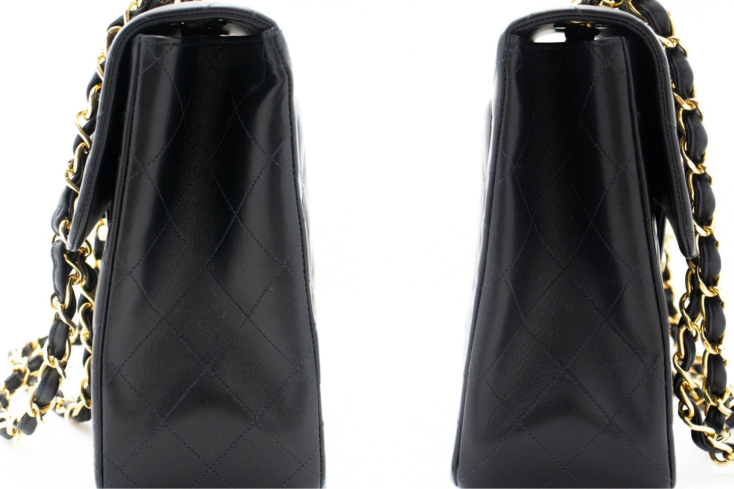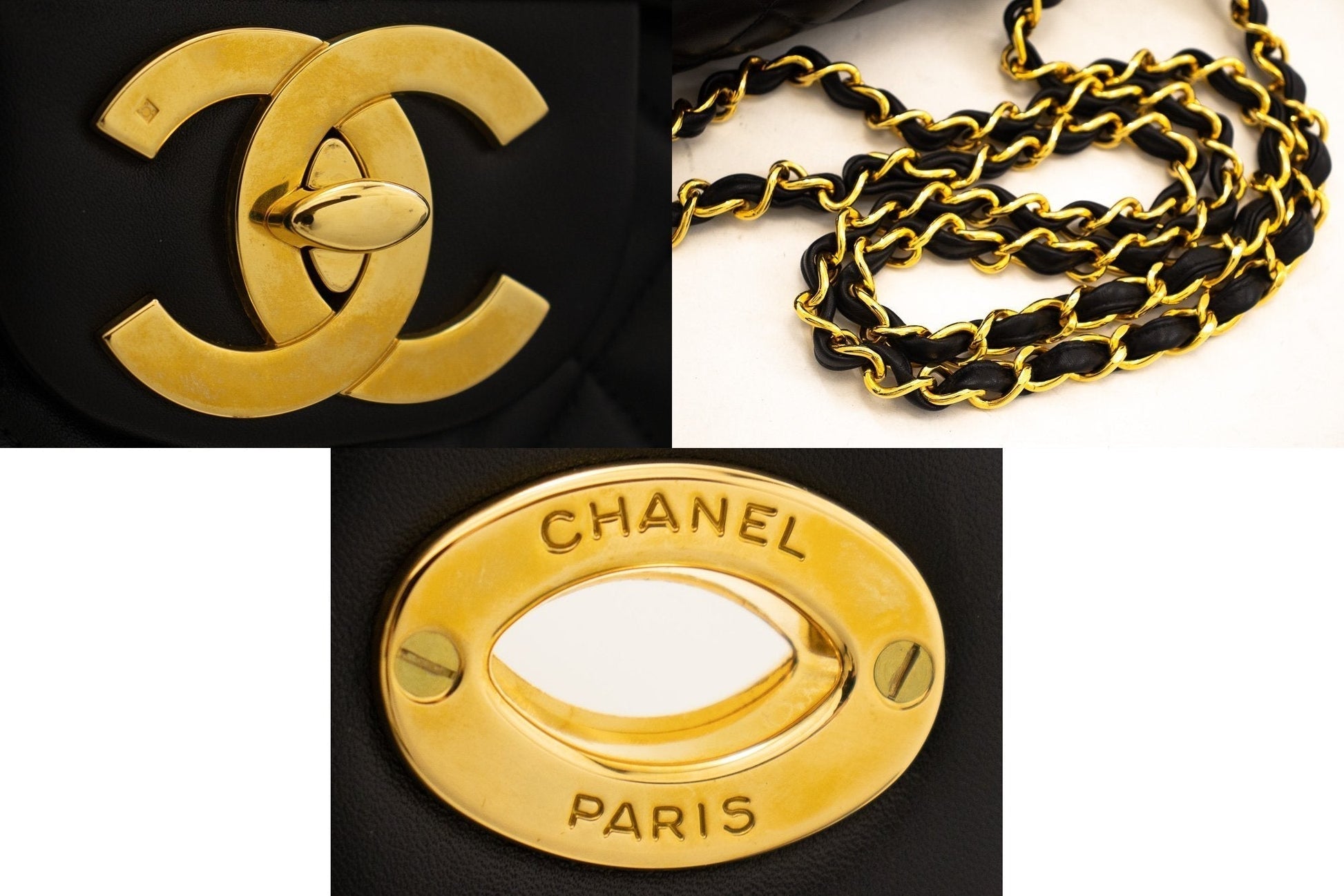 An CHANEL Classic Large 13" Flap Chain Shoulder Bag Black made of black Lambskin j82 This item is Vintage / Classic. The year of manufacture would be 1994-1996.