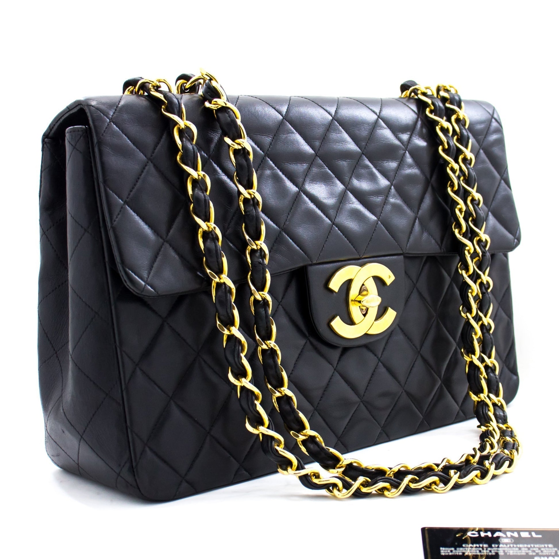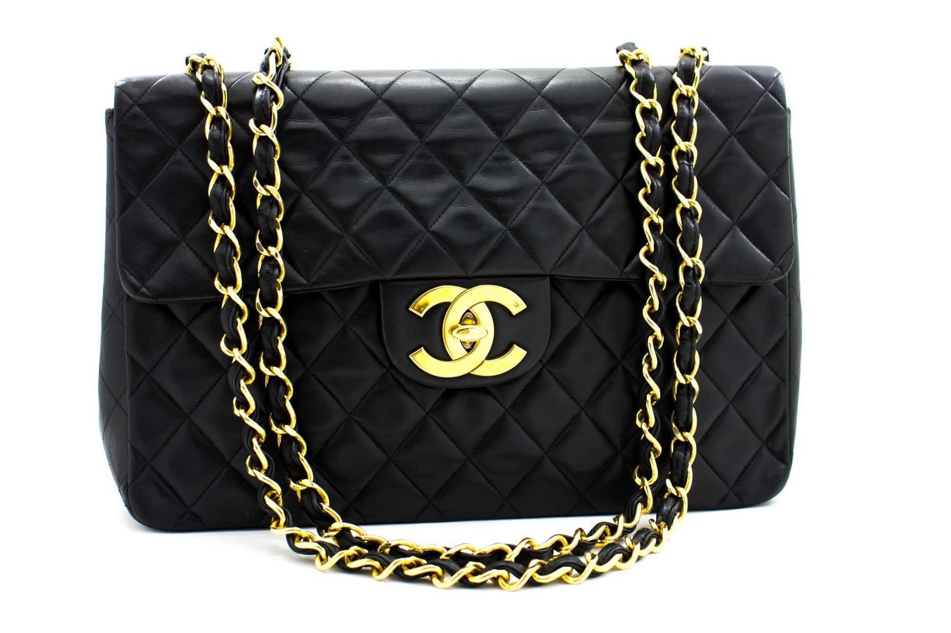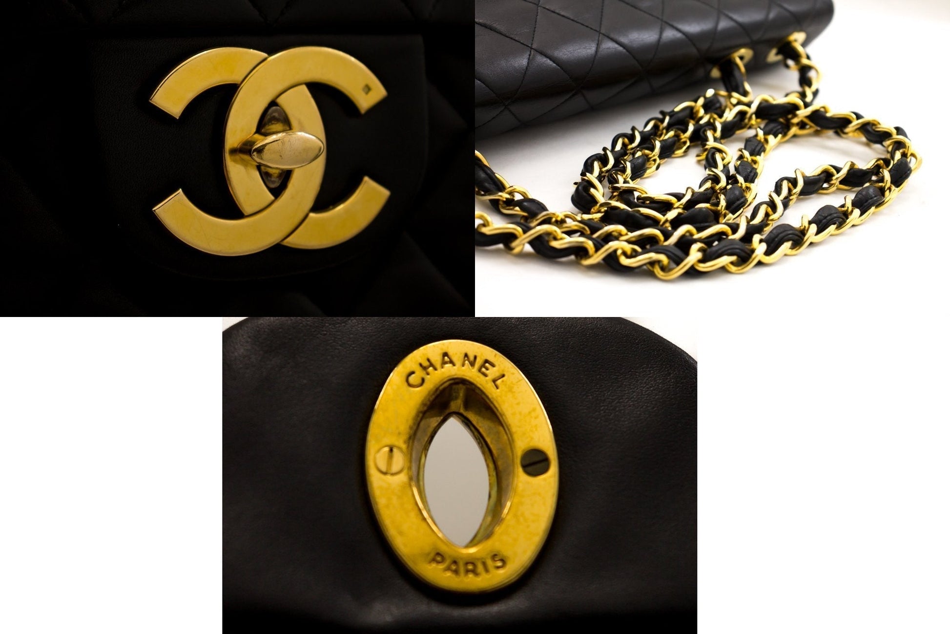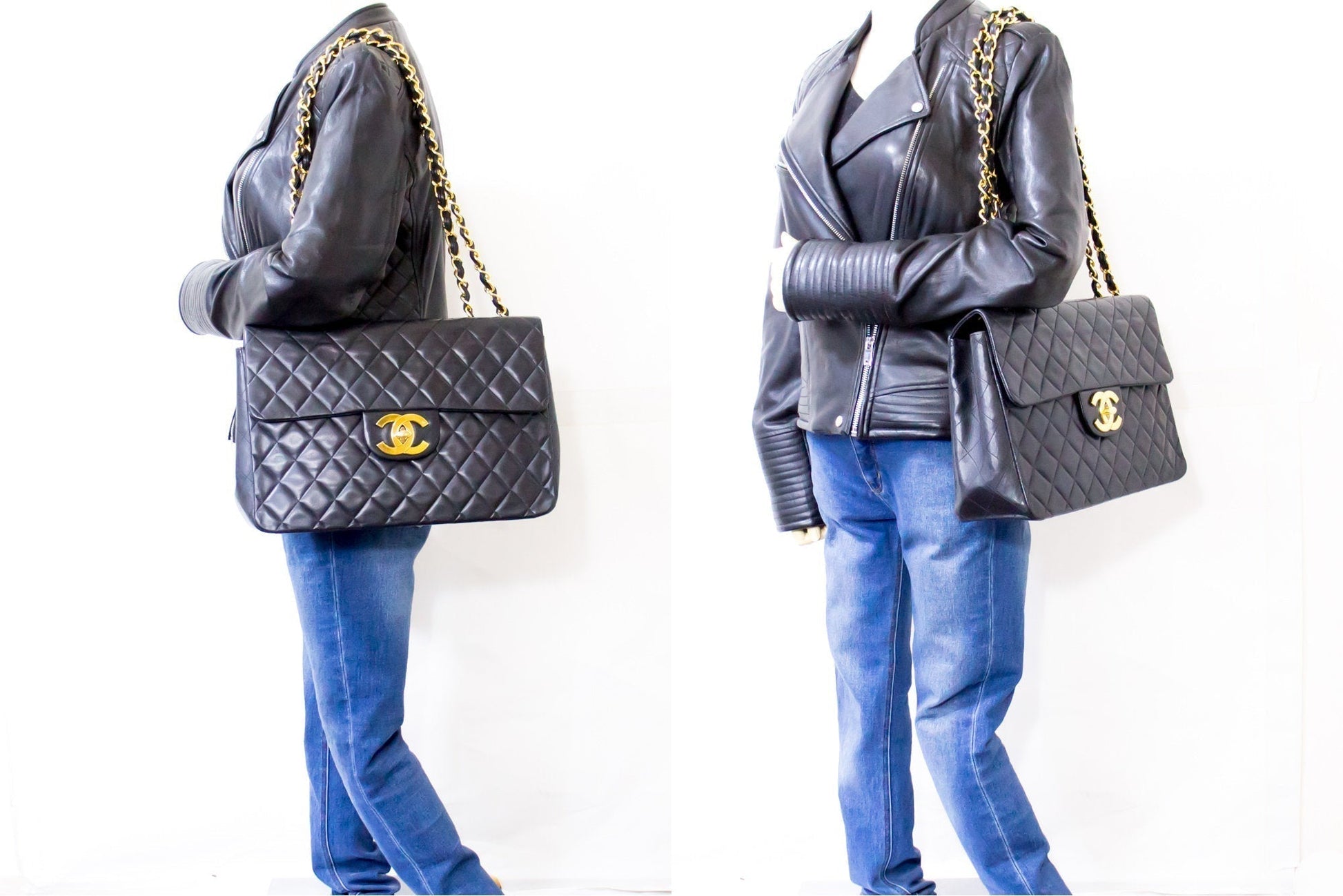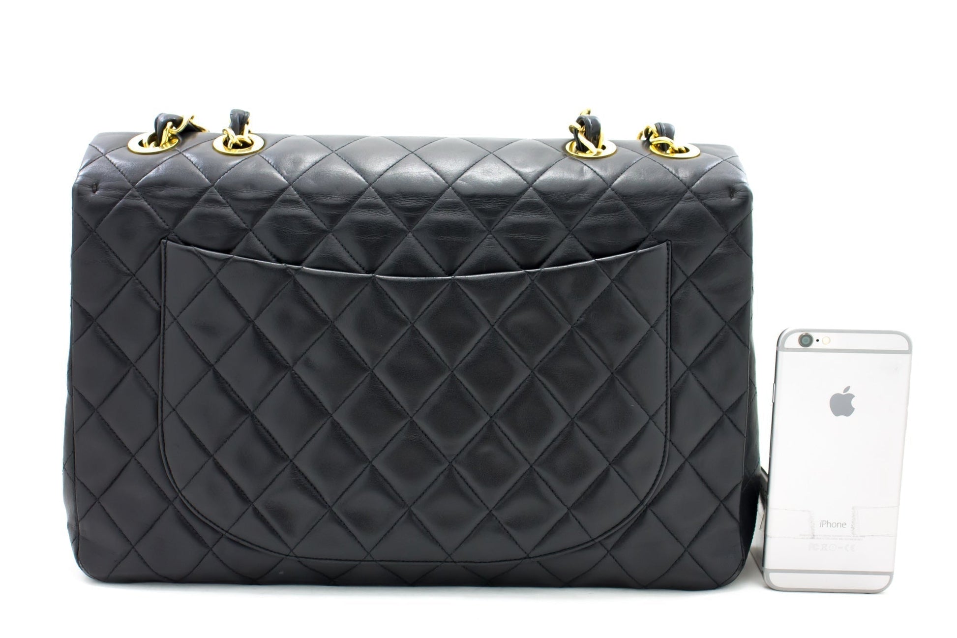 An CHANEL Classic Maxi 13" 2.55 Flap Chain Shoulder Bag Black Lamb h22 This item is Vintage / Classic. The year of manufacture would be 1991-1994.