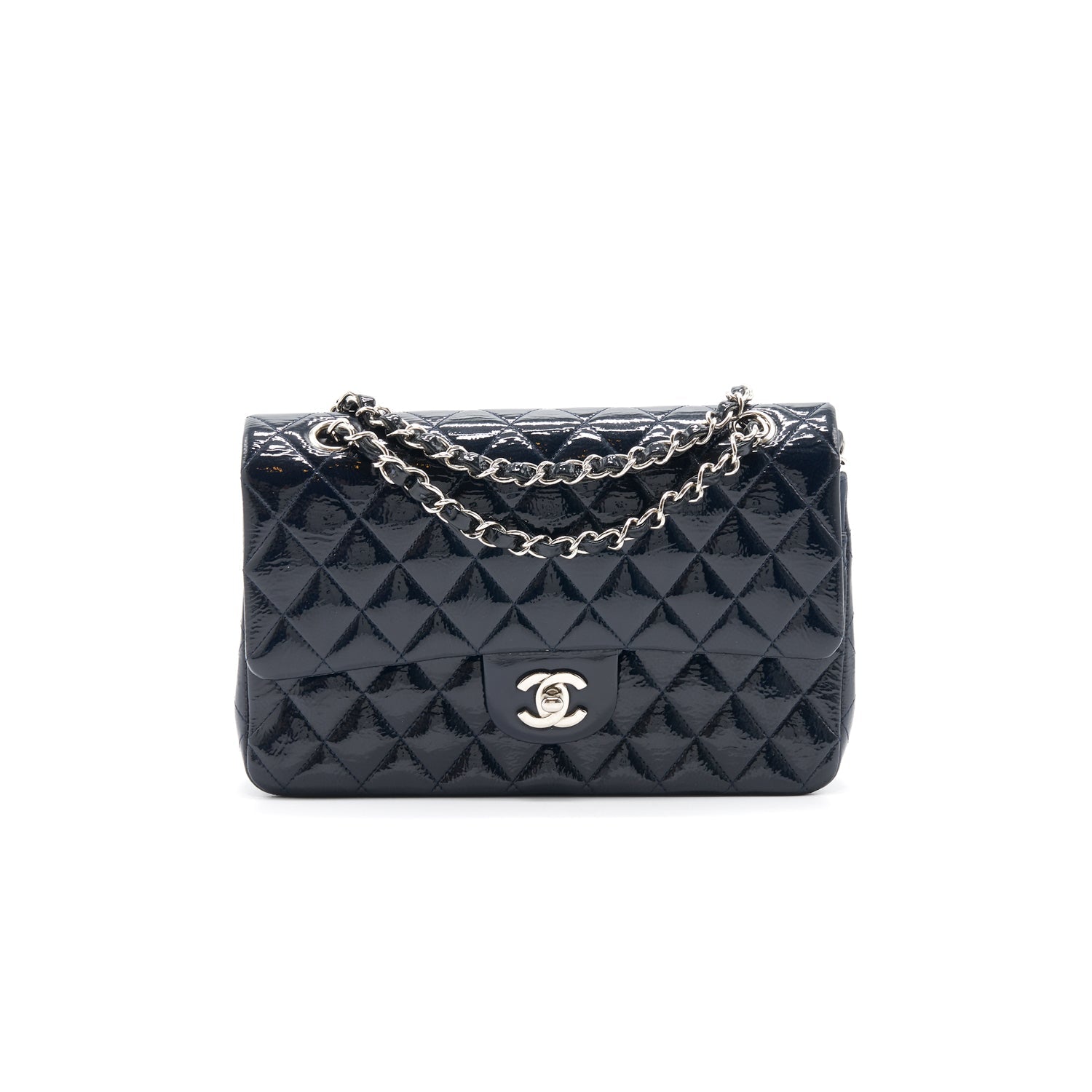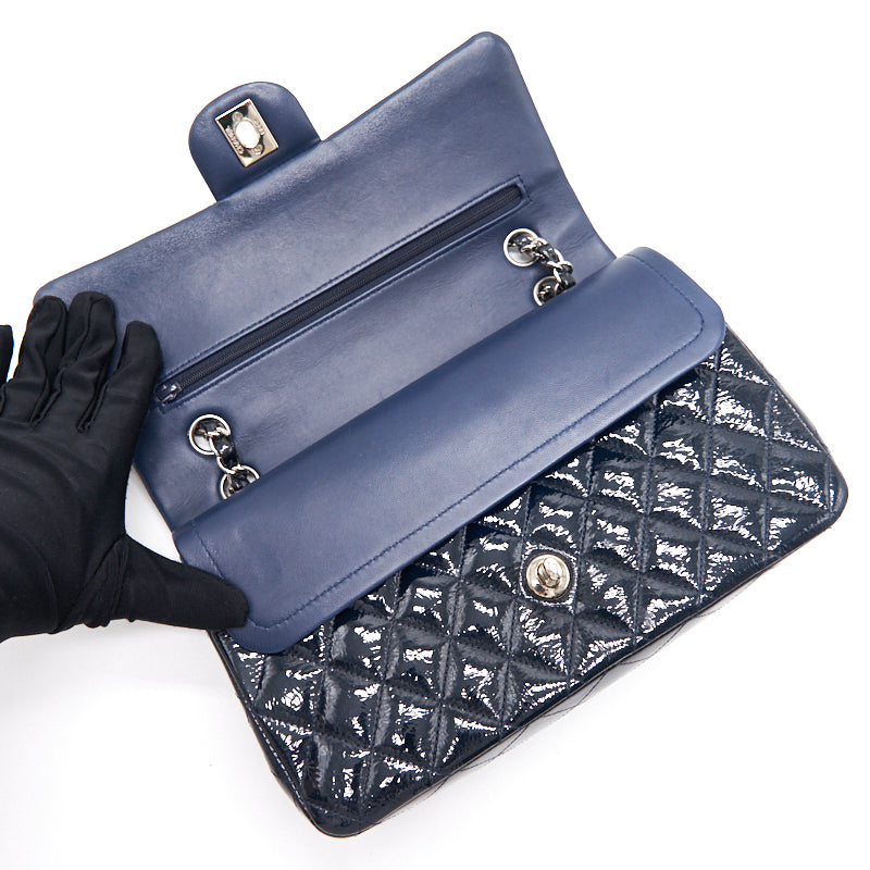 Chanel Classic Medium Double Flap Patent Leather Dark Navy with SHW