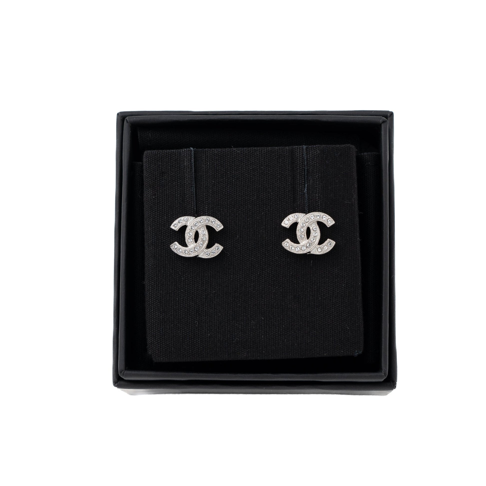 Chanel Classic Mini CC Logo Earrings Silver Tone