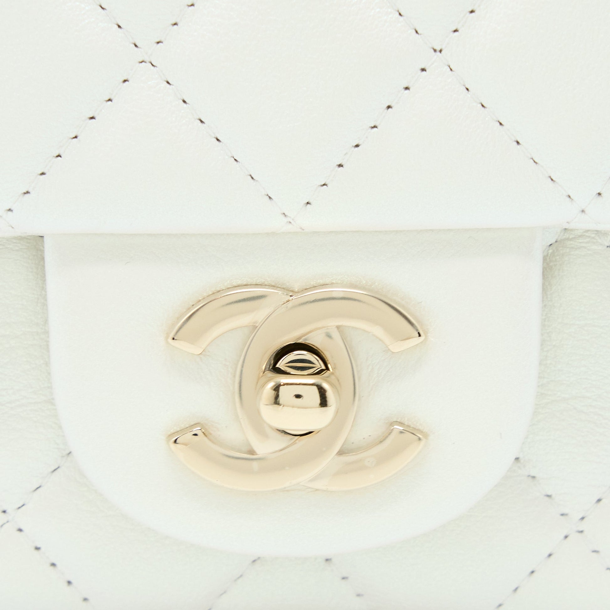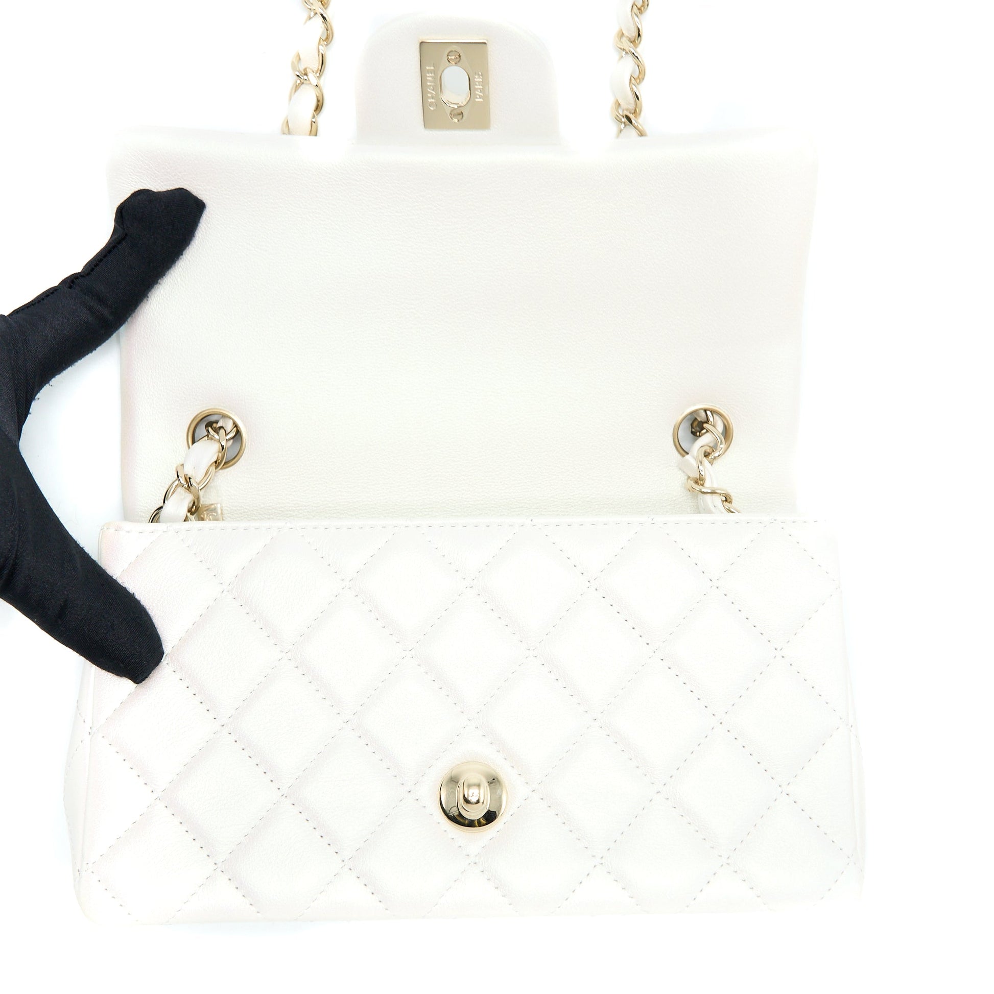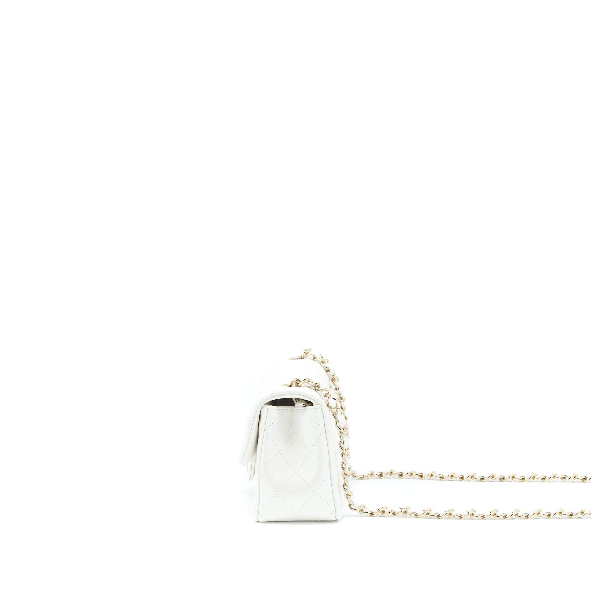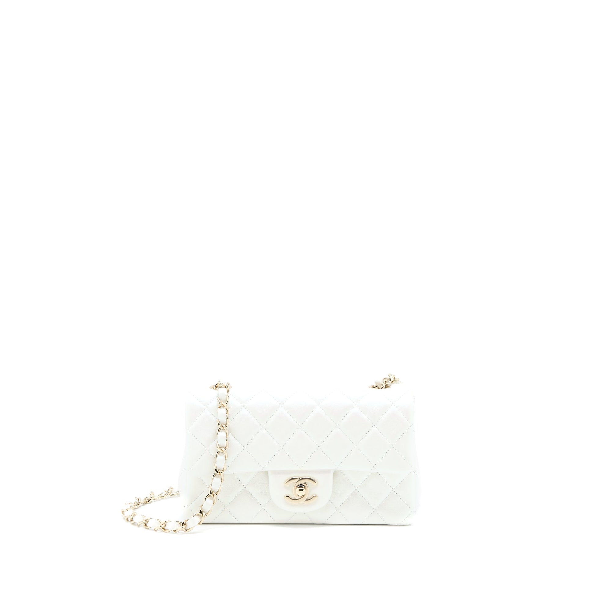 Chanel Classic Mini Rectangular Flap Bag Calfskin Iridescent White LGHW