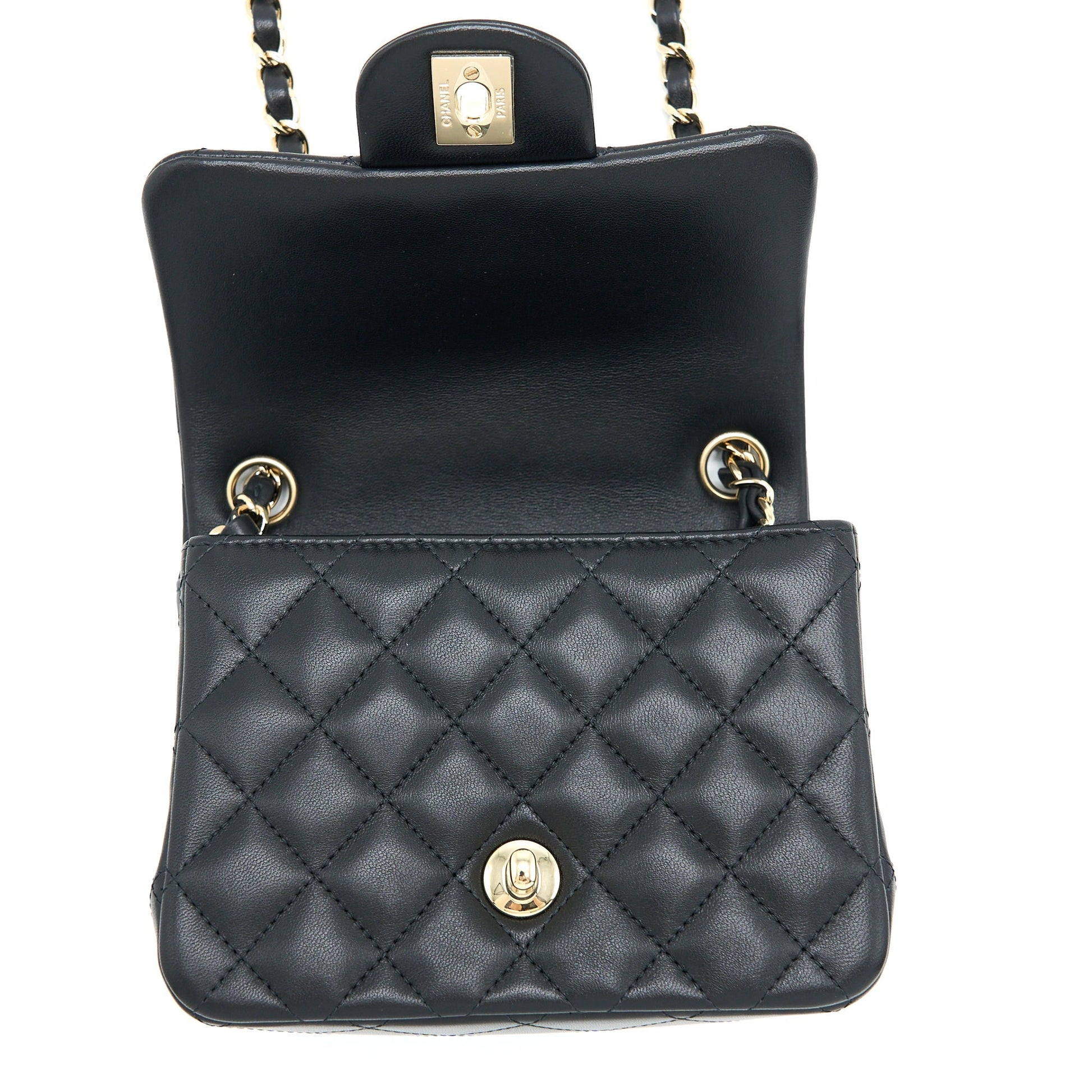Chanel Classic Mini Square Flap Bag Lambskin Black GHW