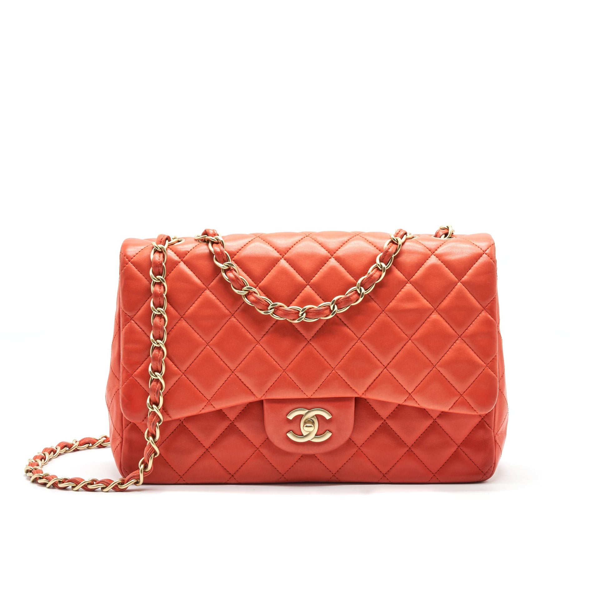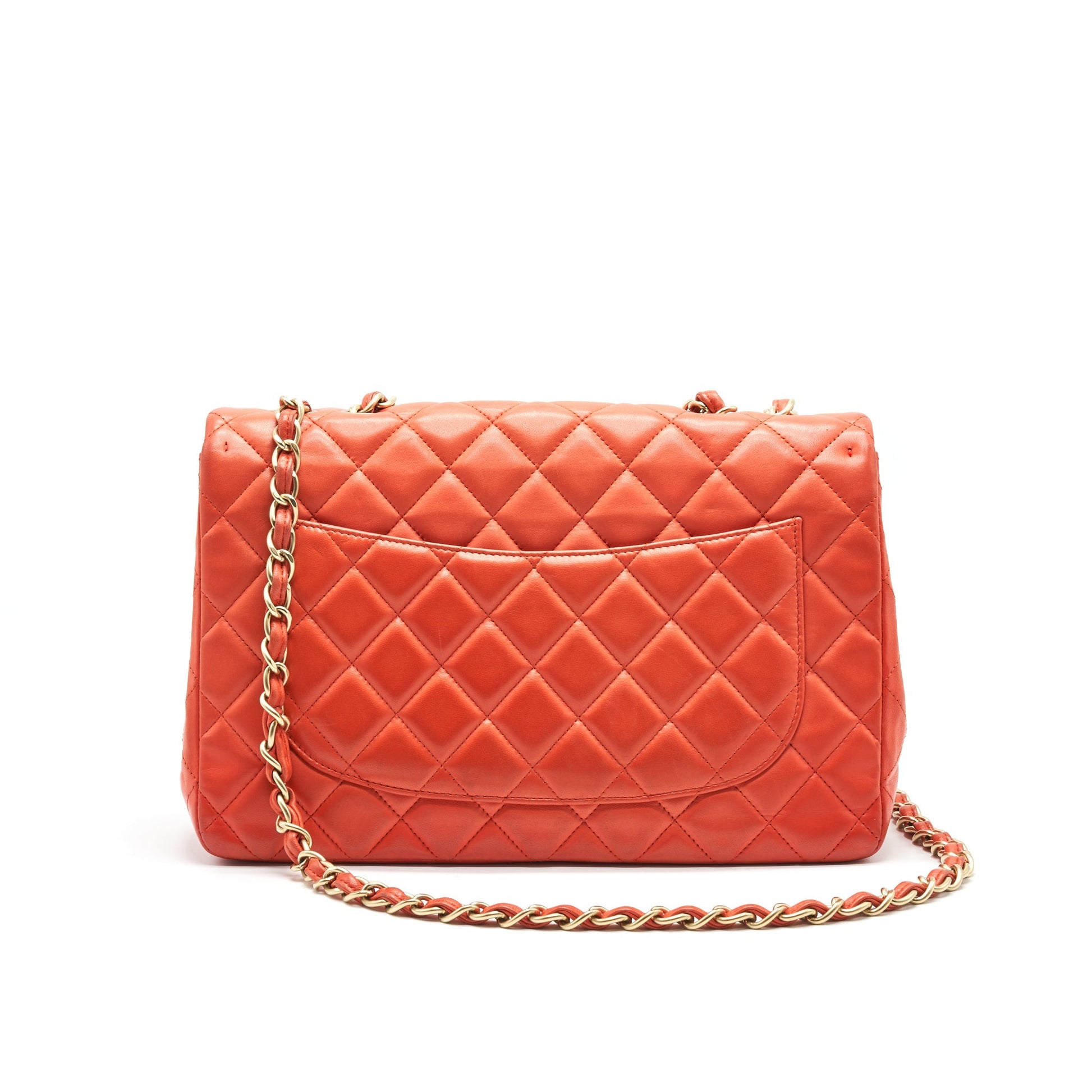 CHANEL CLASSIC SINGLE FLAP JUMBO BAG ORANGE LAMBSKIN GHW