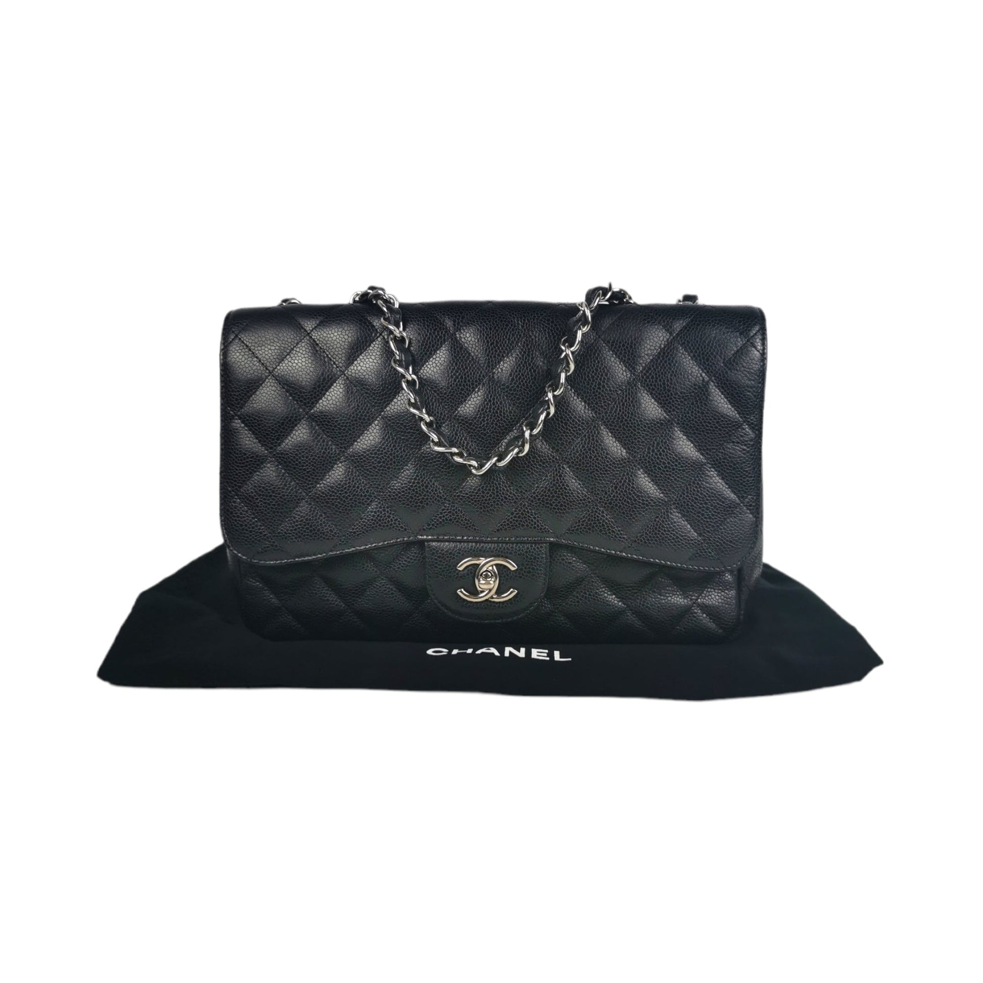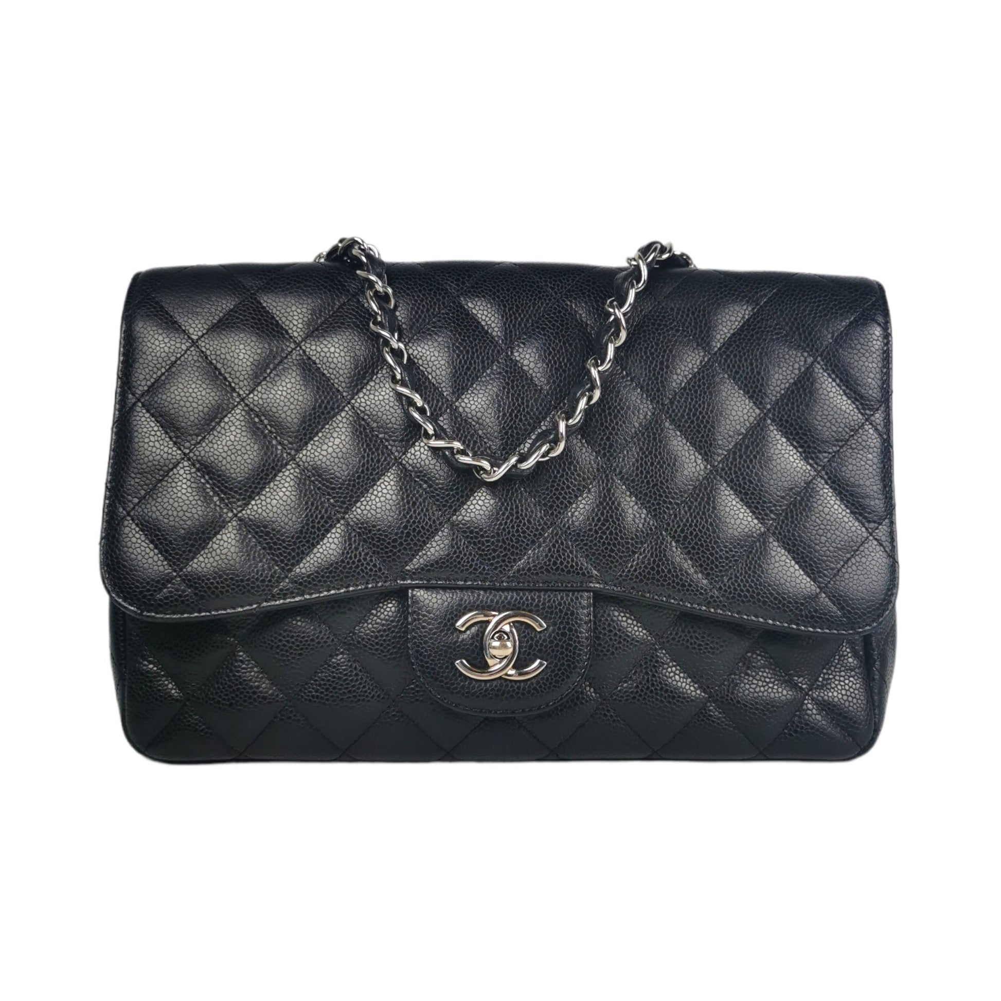 Chanel Classic Single Flap Jumbo Black Caviar Silver