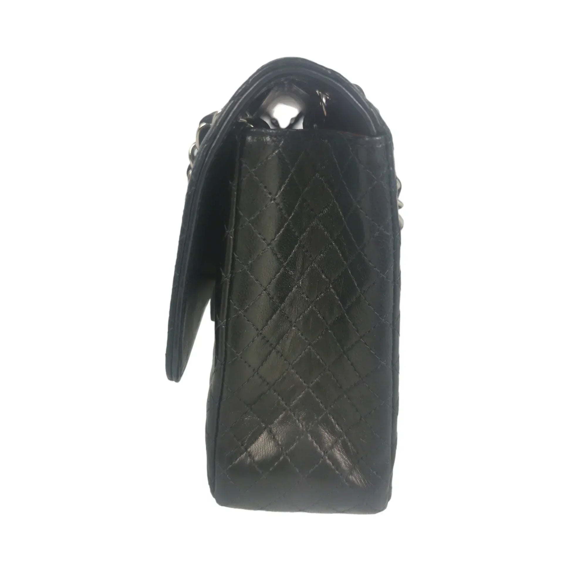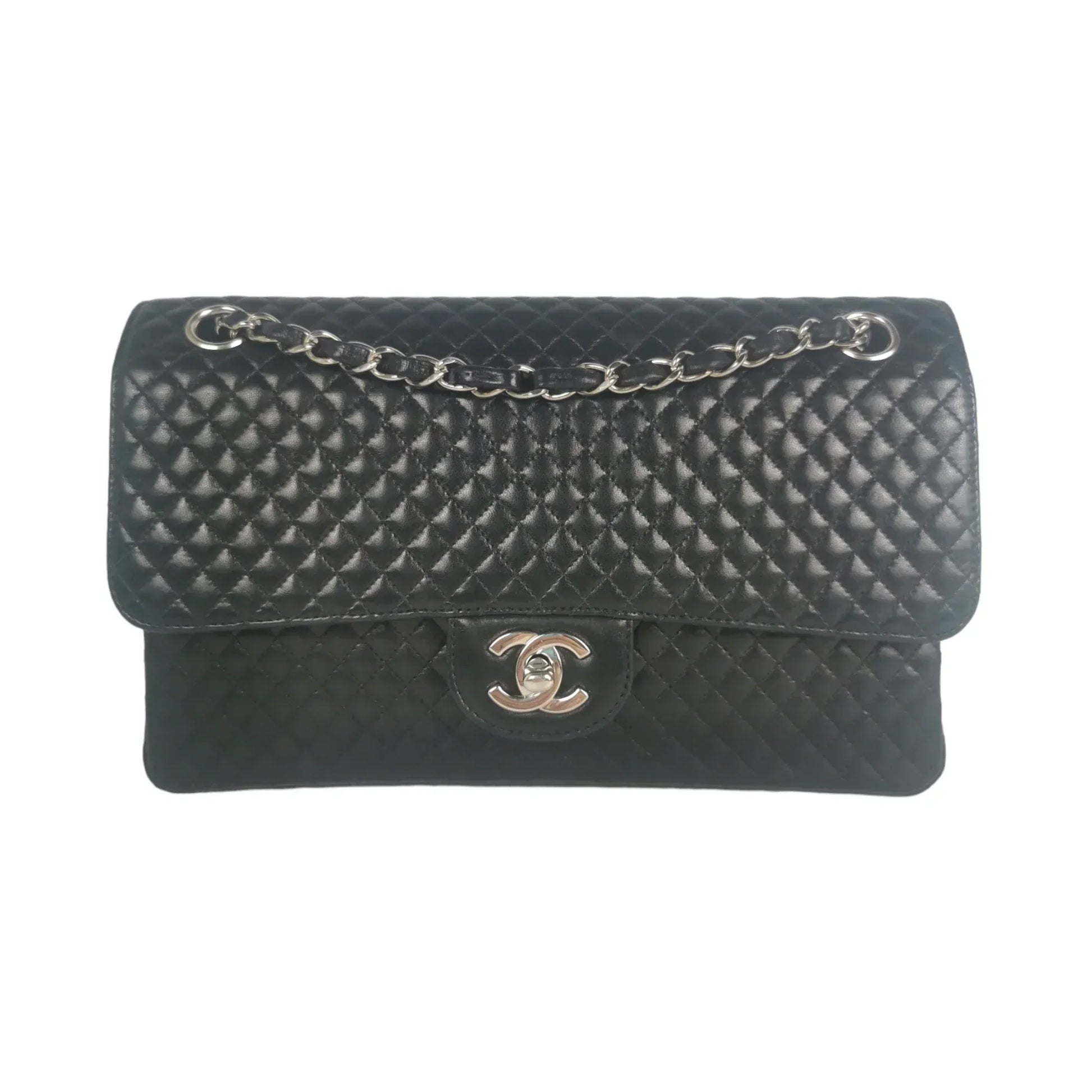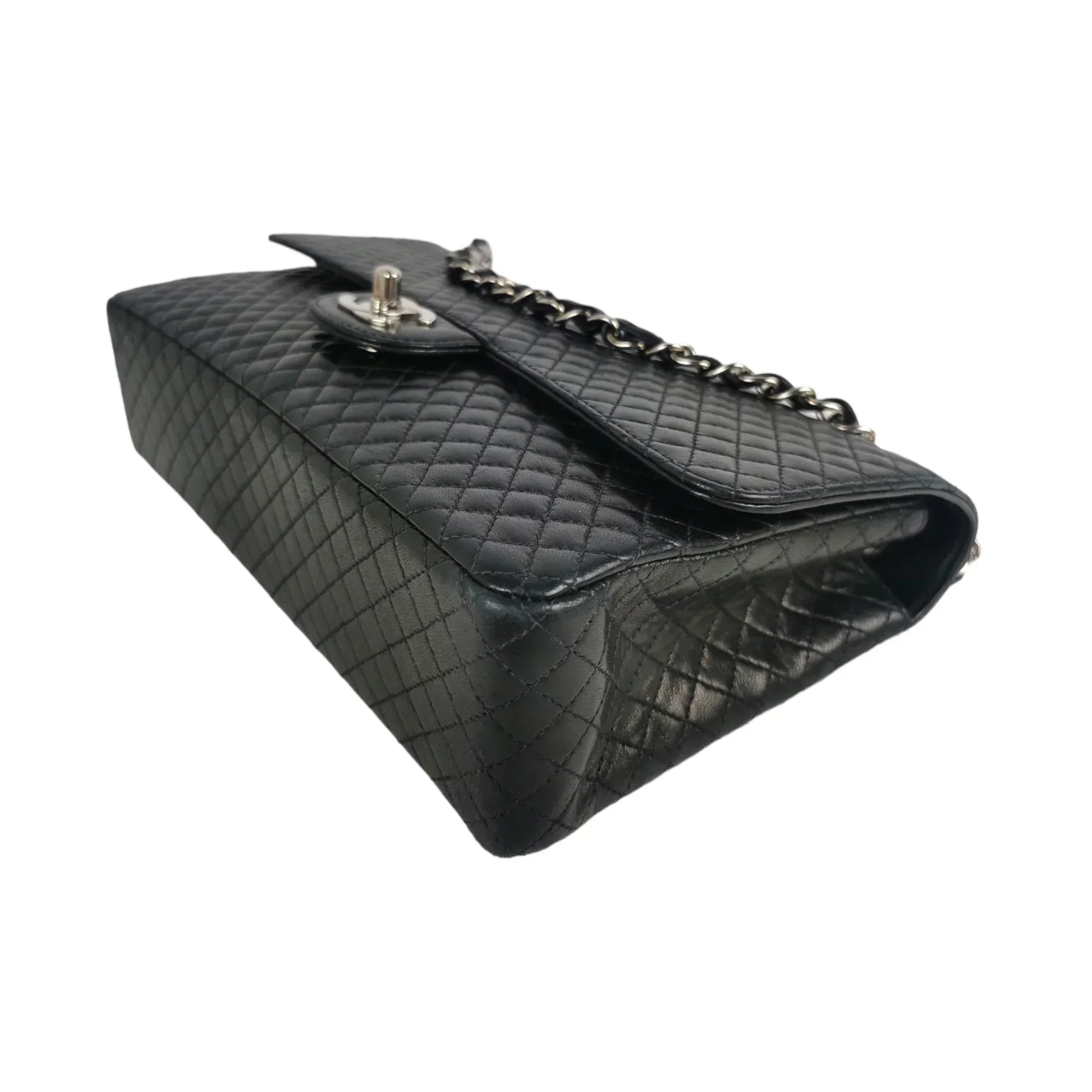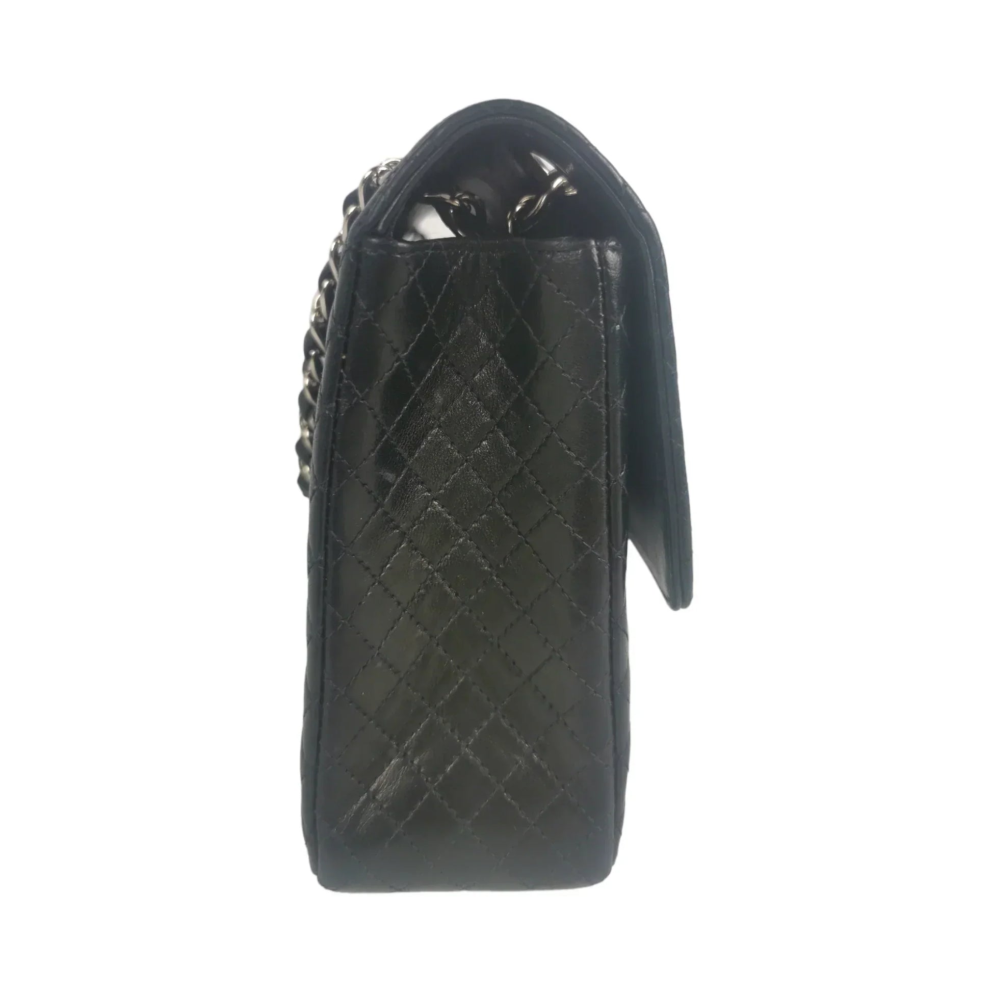 Chanel Classic Single Flap Medium Black Micro Lambskin Silver