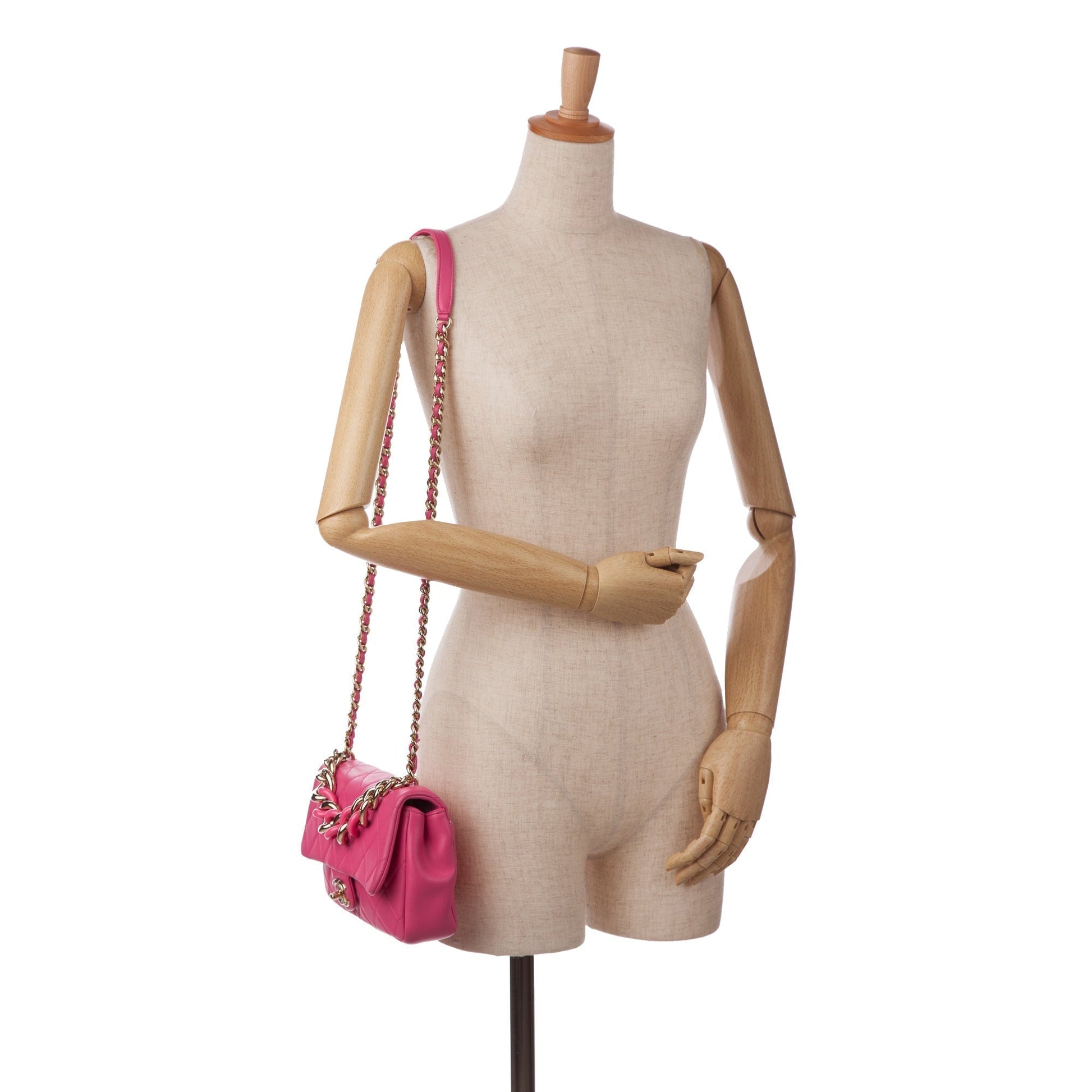 The Chanel Flap Bag Mini Square in pink and gold hardware is a true rarity. The Chanel Classic is arguably one of the most coveted bags in the world. With its elegant and timeless design, its origins date back to the 2.55 model from 1955. The iconic CC-Lock however, was created later through the magic of Karl Lagerfeld.