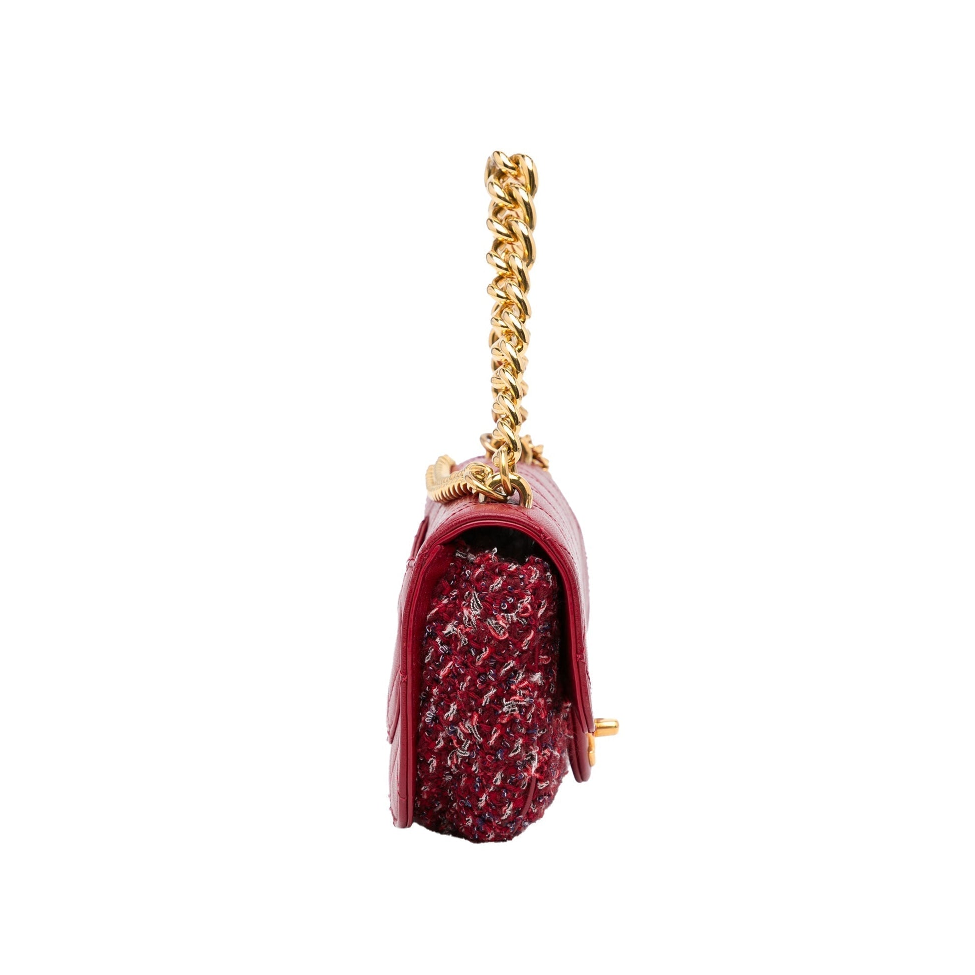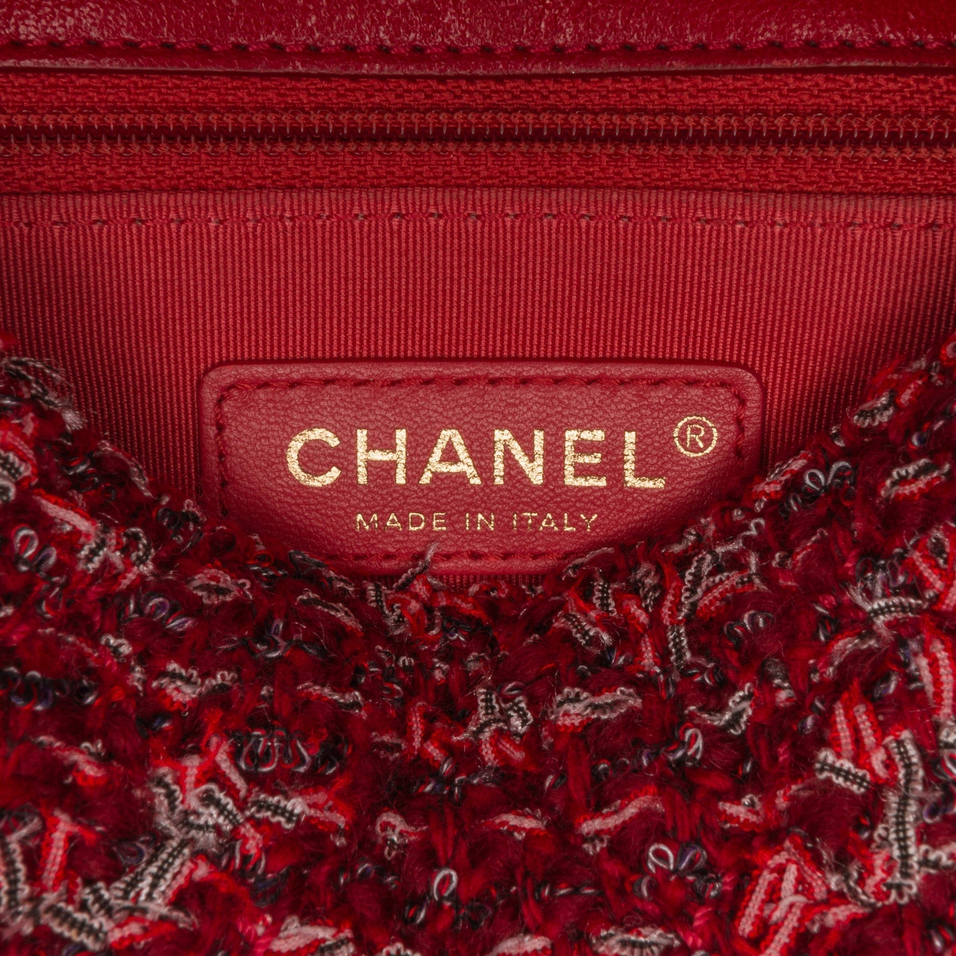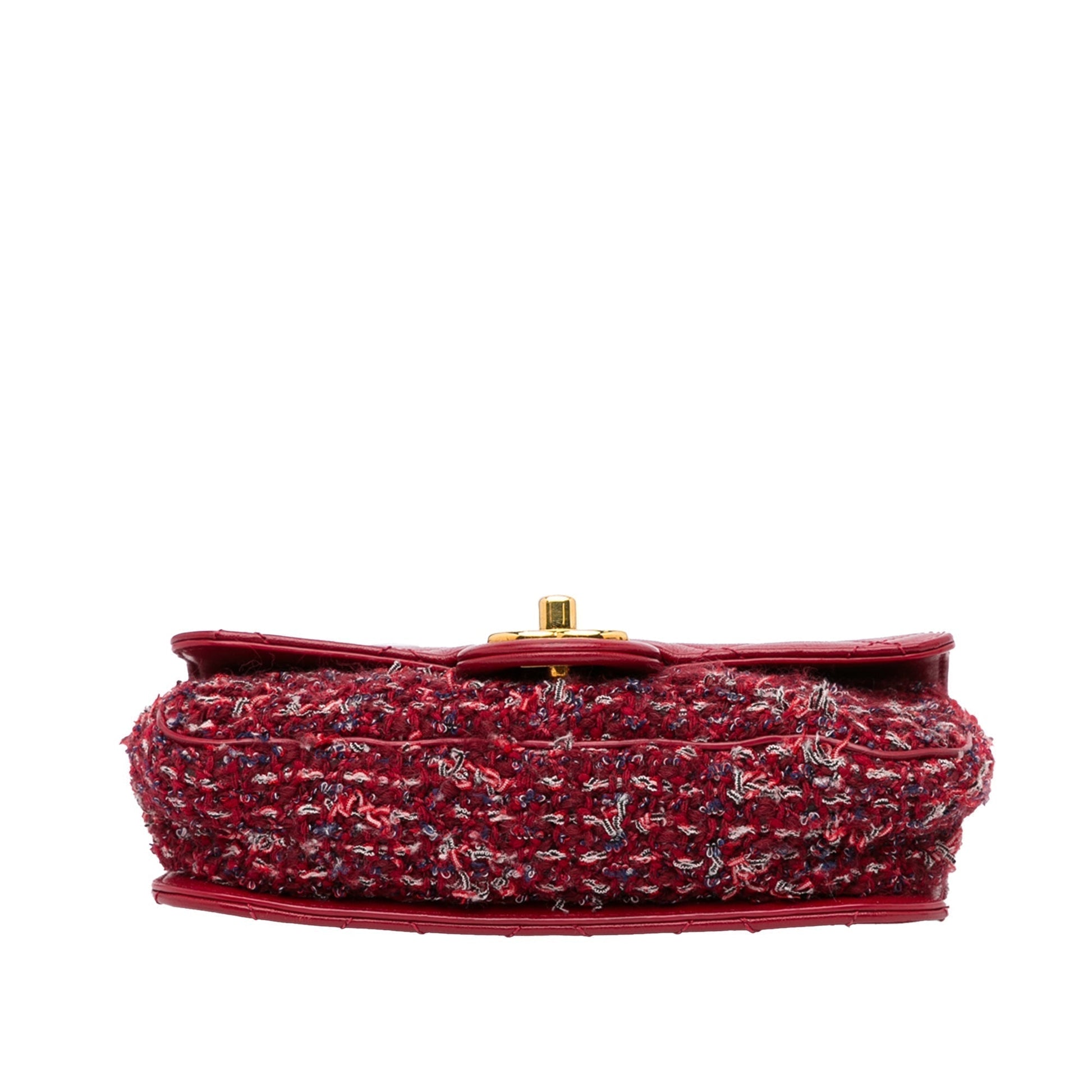 Chanel Classic Single Flap Red Tweed Lambskin Gold