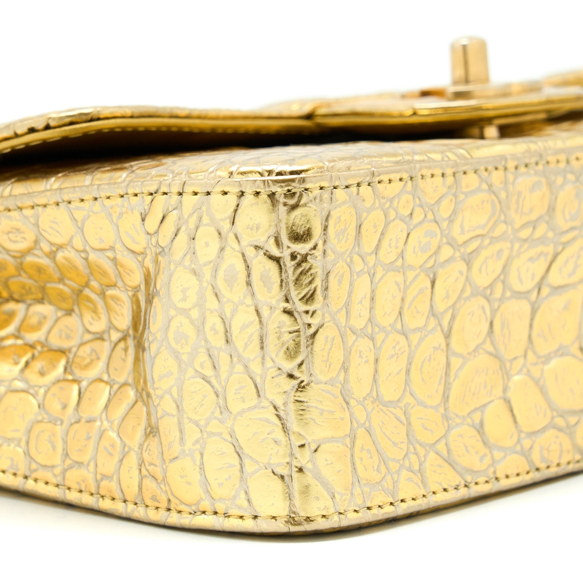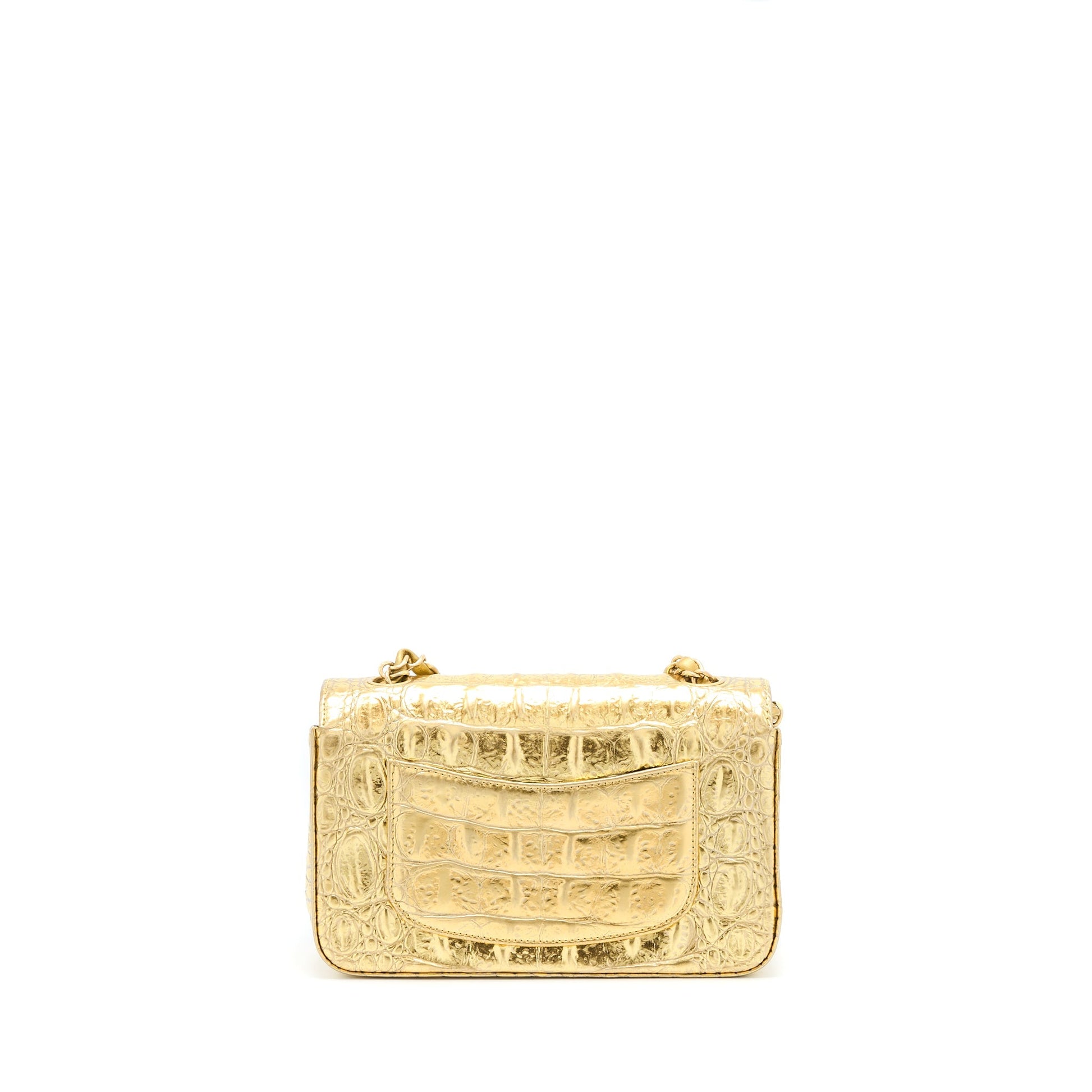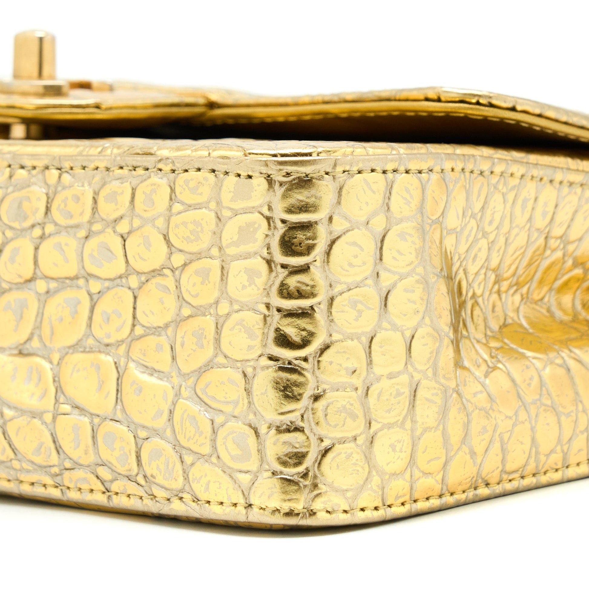 Chanel Mini Rectangular Flap Bag Croc Embossed Calfskin Gold GHW