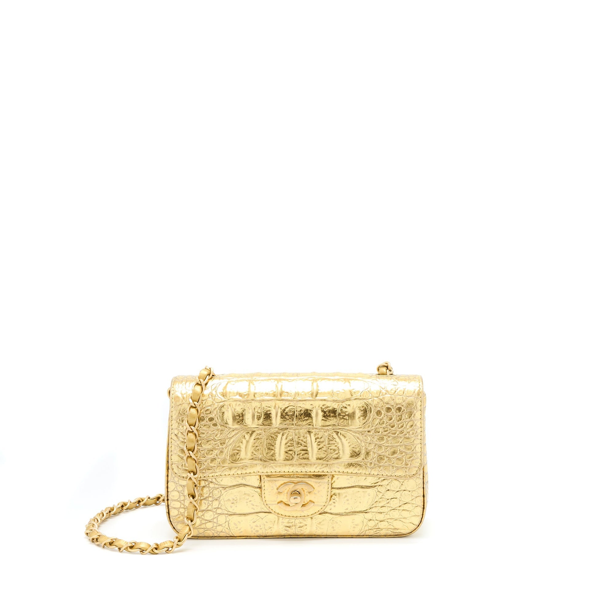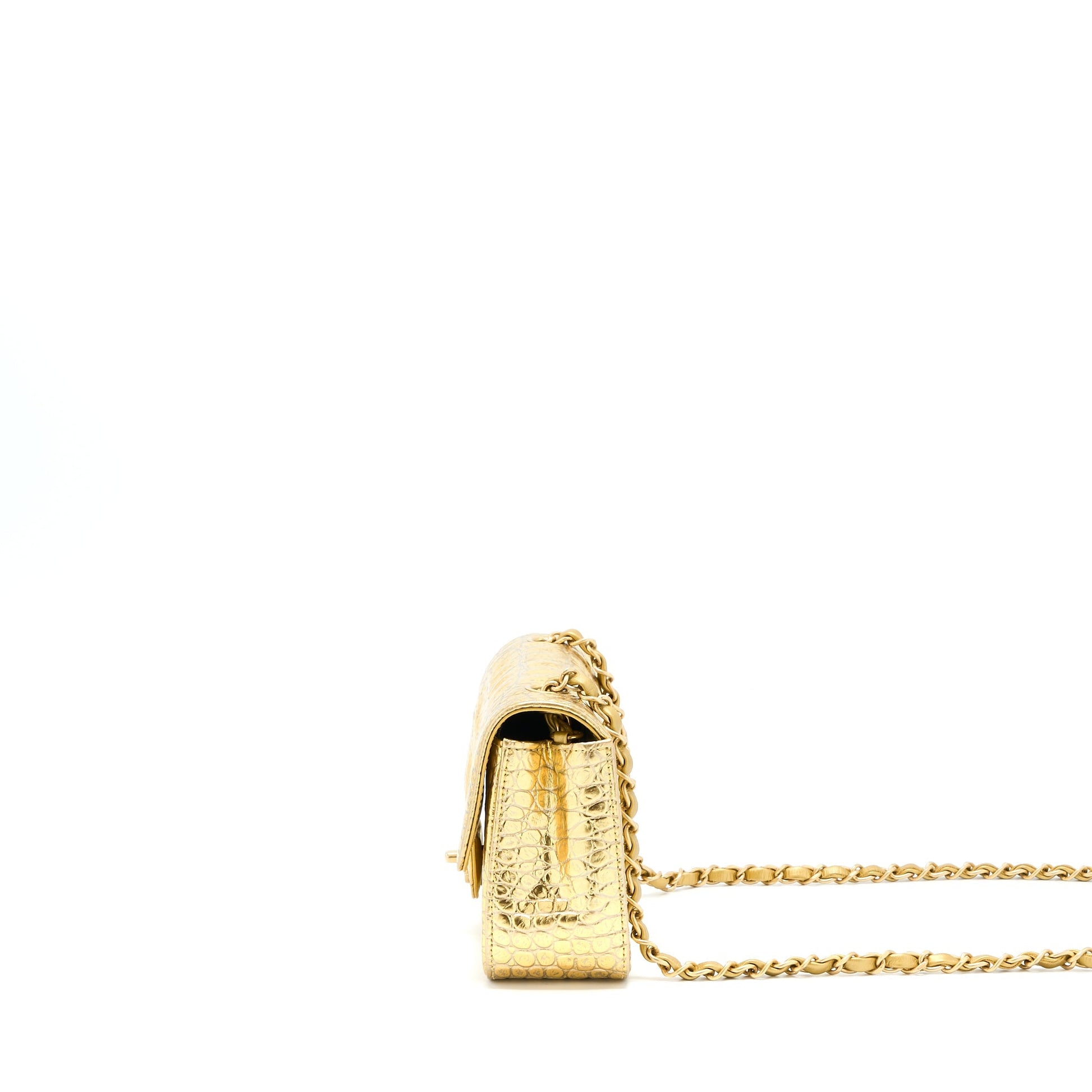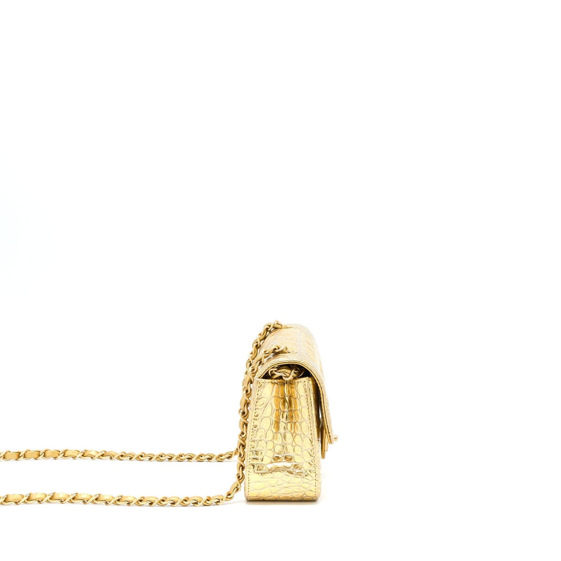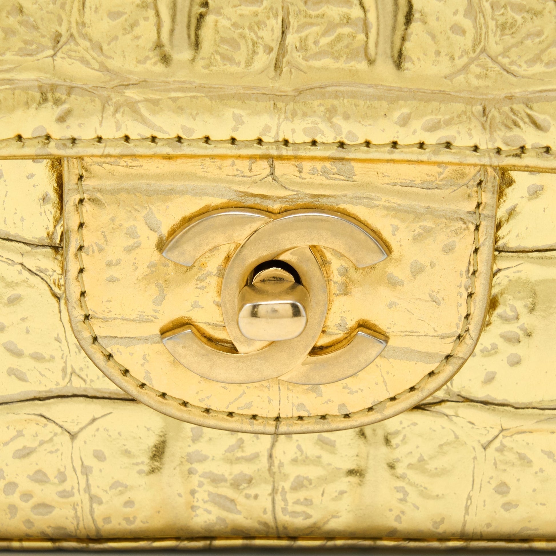 Chanel Mini Rectangular Flap Bag Croc Embossed Calfskin Gold GHW