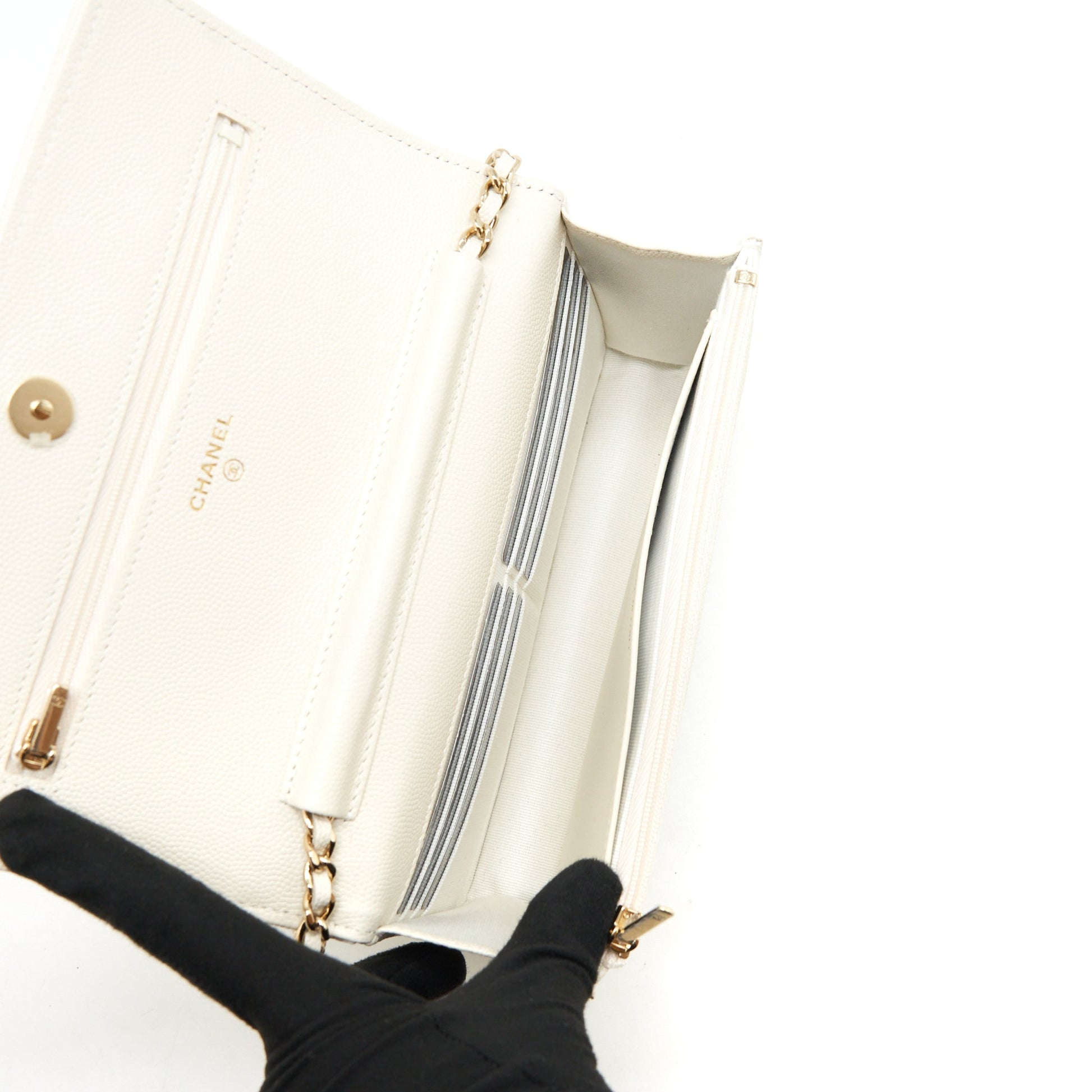 Chanel Classic Wallet On Chain Caviar White LGHW (MICROCHIP)