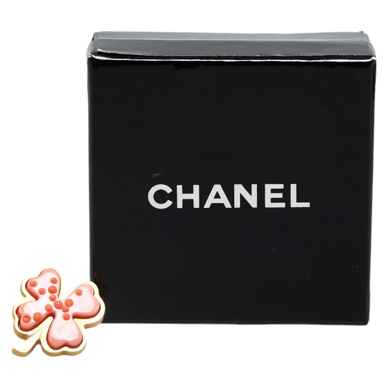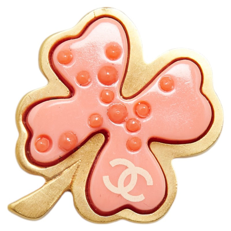 Chanel Clover Brooch Gold Pink Plastic