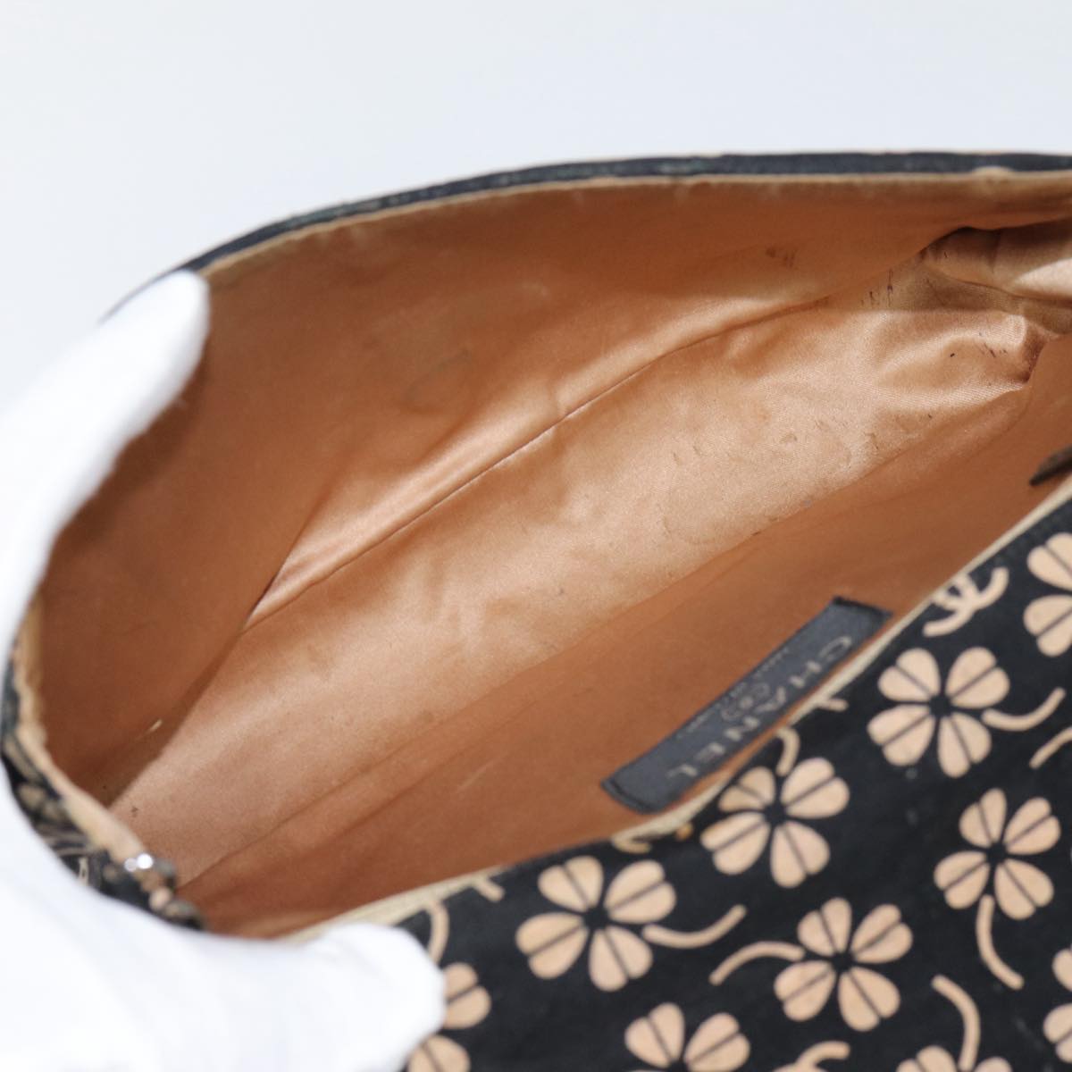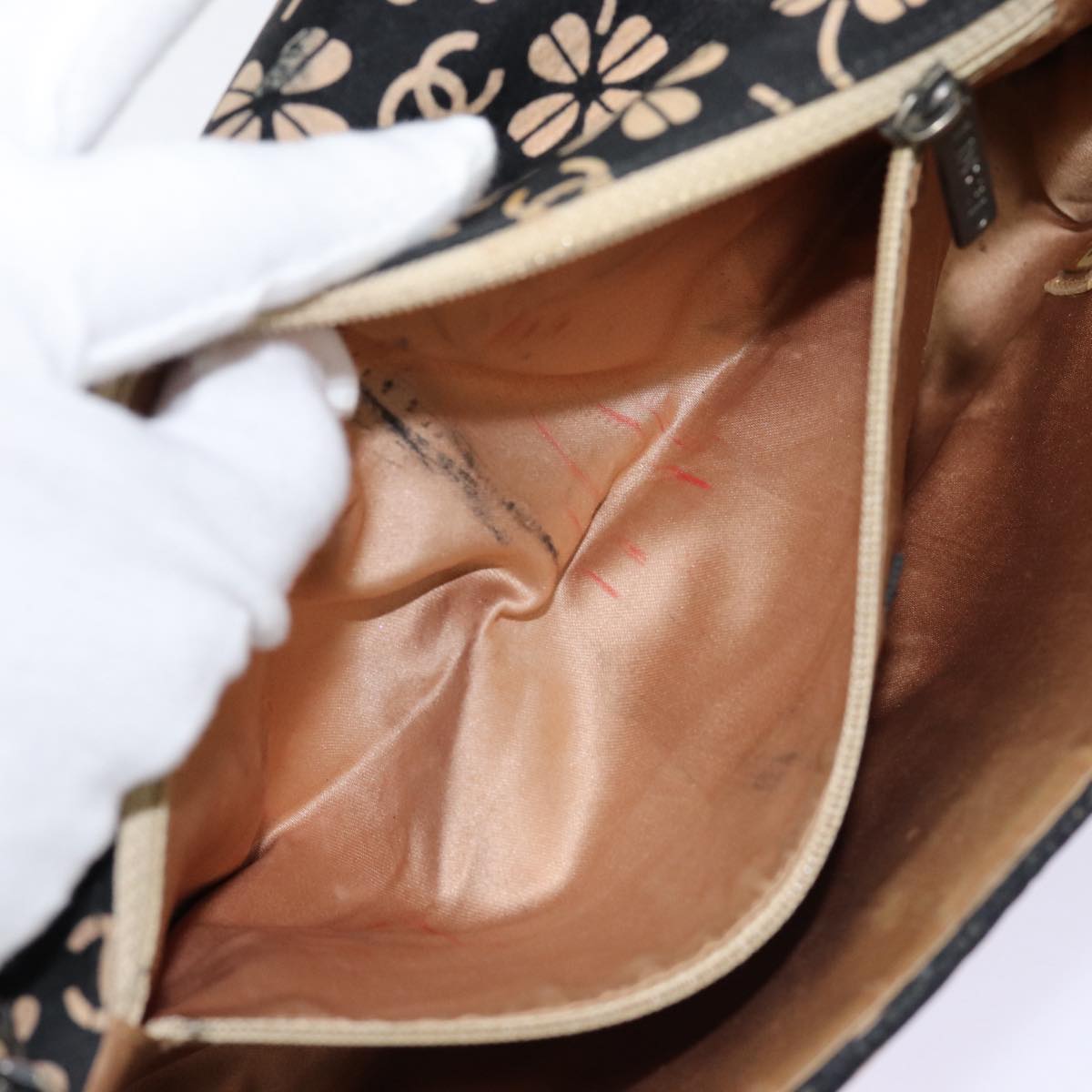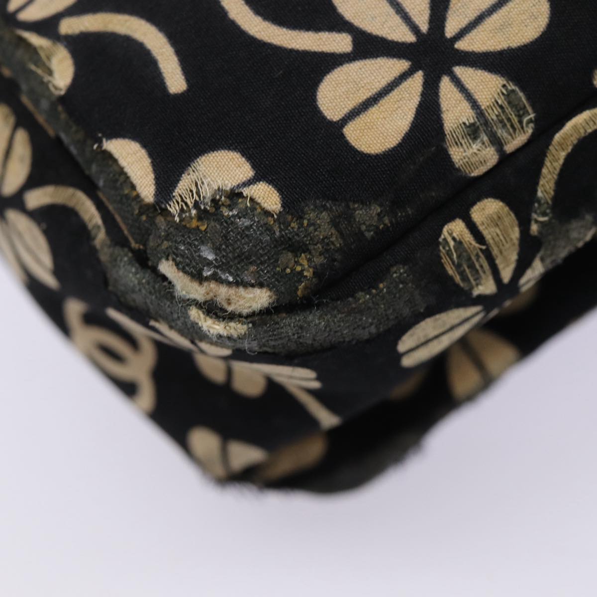 CHANEL Clover Turn Lock Chain Shoulder Bag Canvas Black Silver CC bs16983