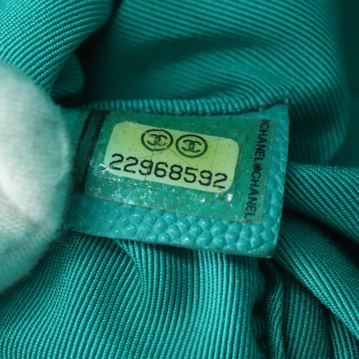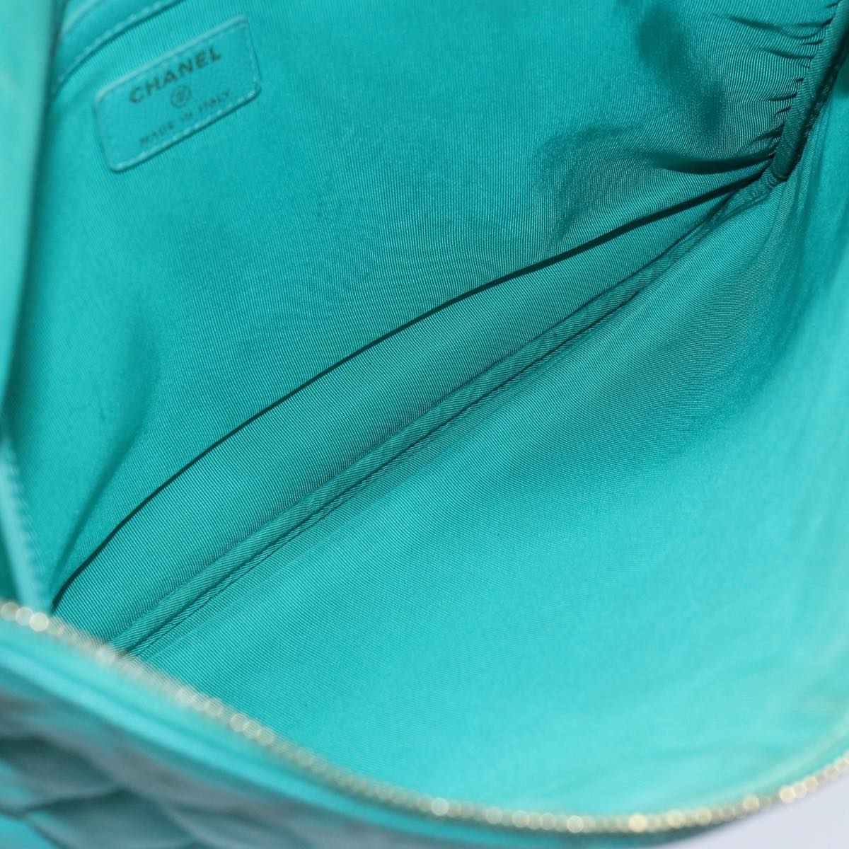 CHANEL Clutch Bag Caviar Skin Turquoise Blue CC 83807A