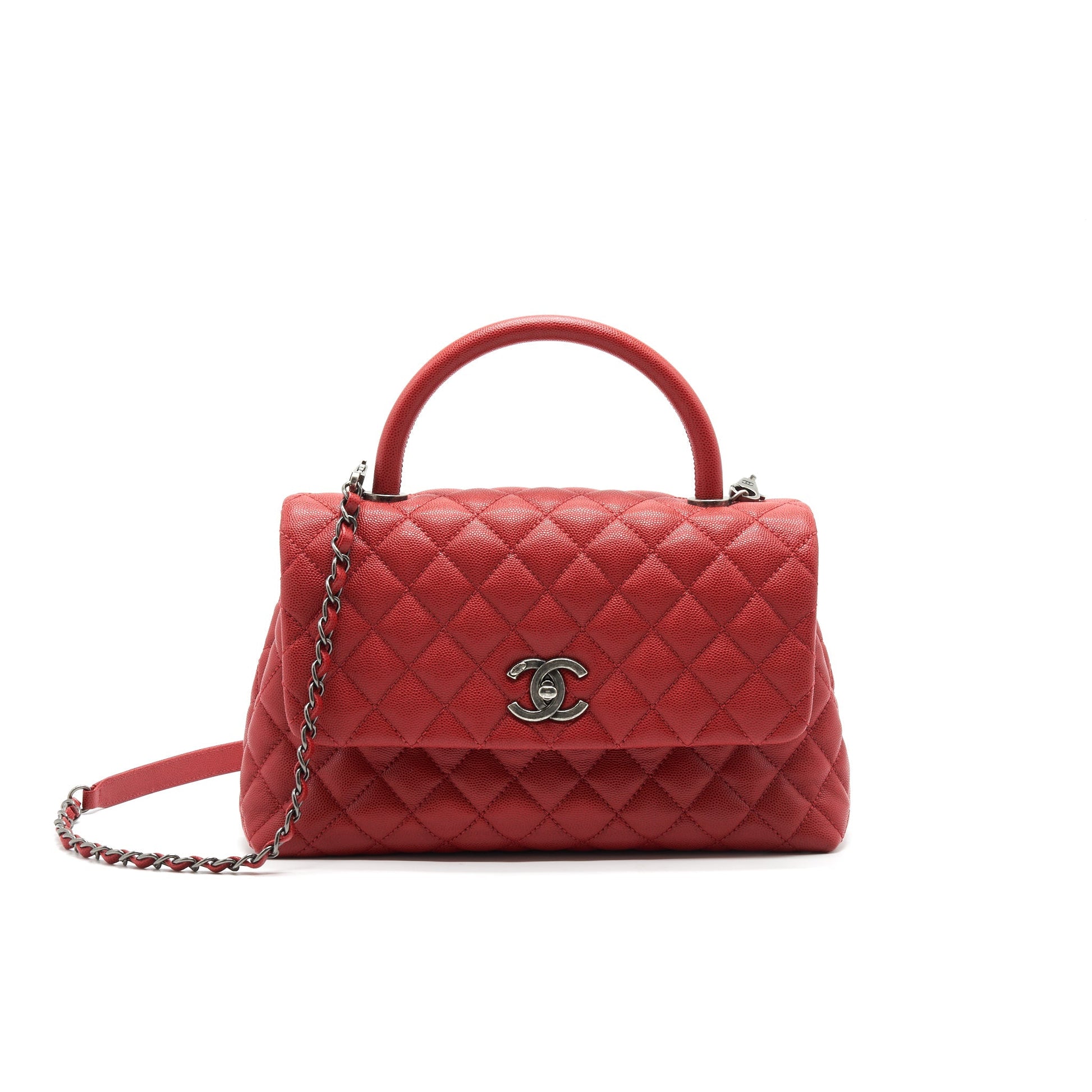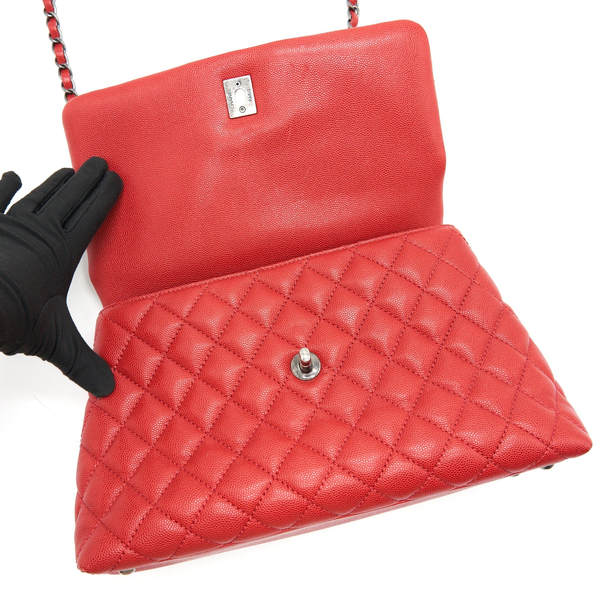 CHANEL COCO HANDLE SMALL FLAP BAG RED CALFSKIN RSHW