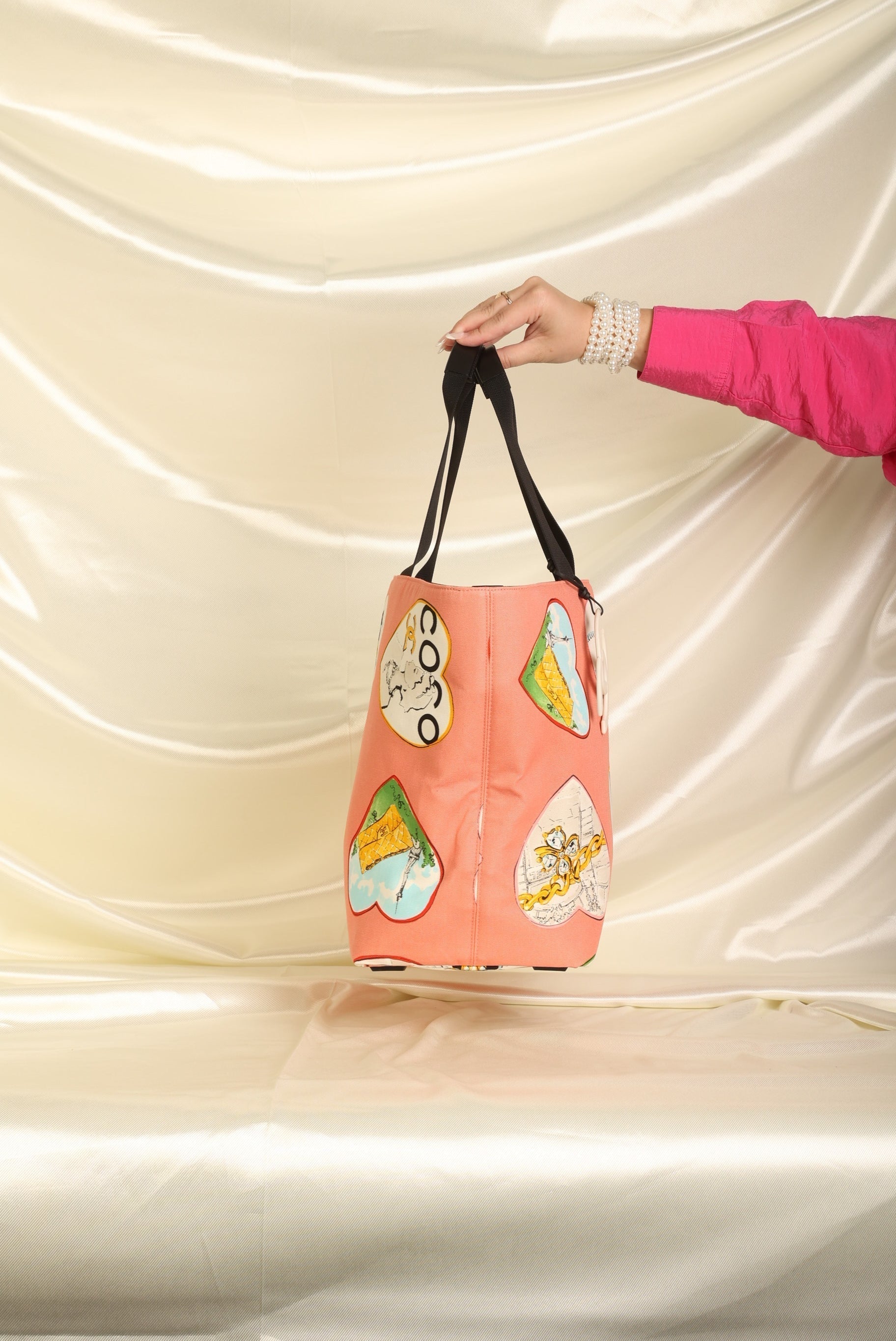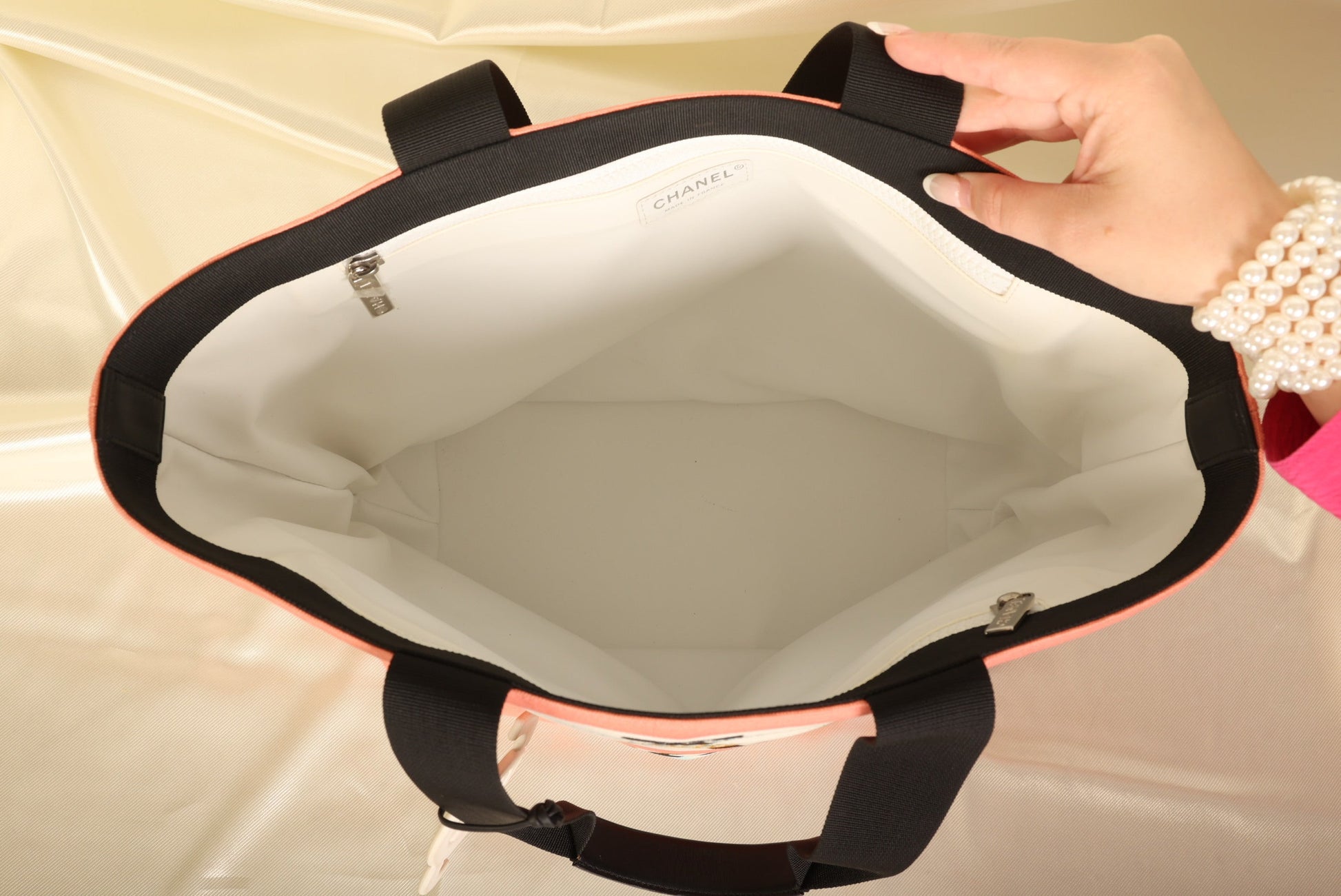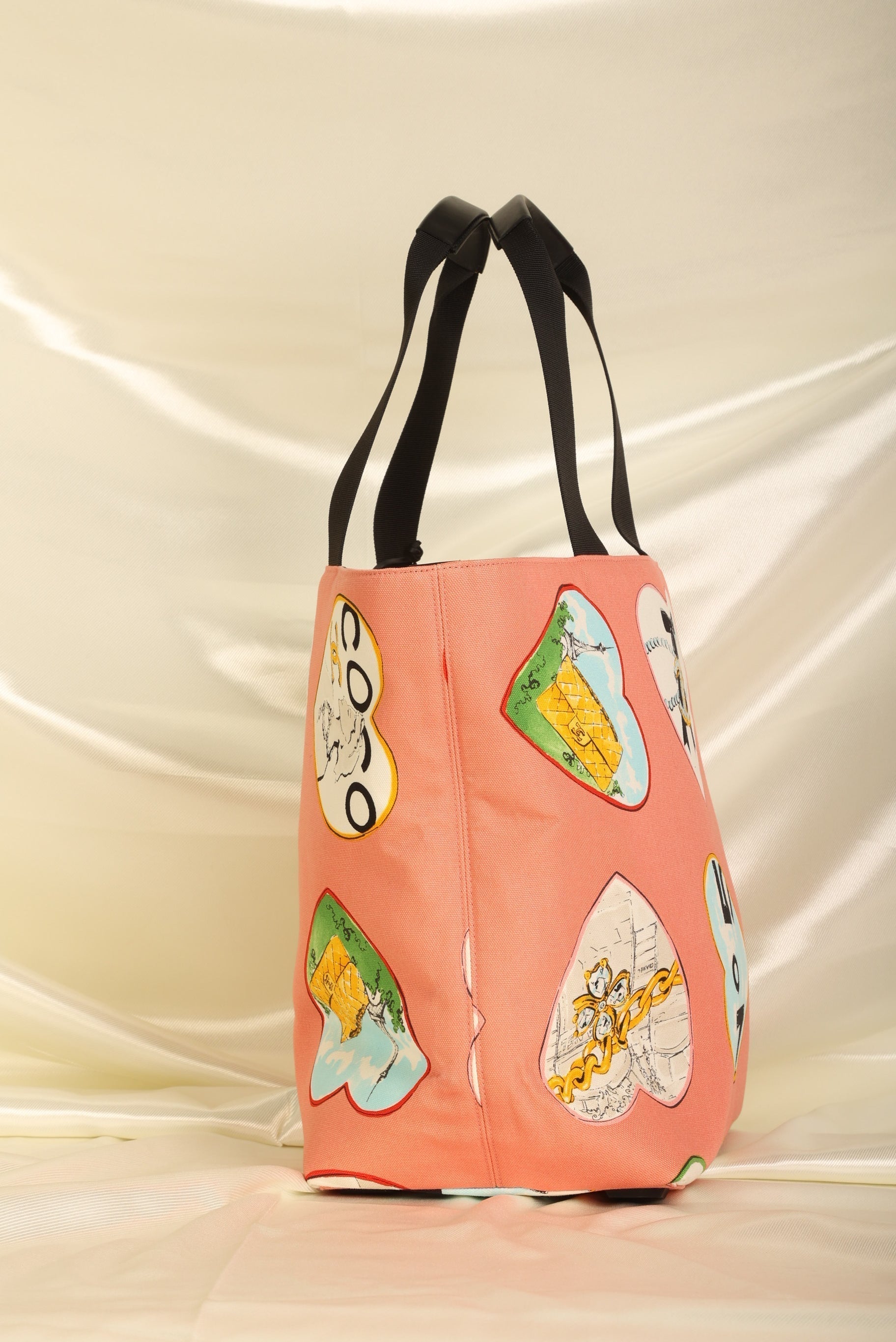 Crafted in 2005. Throwing over this tote gives an effortless look with the benefit of a great amount of space. The iconic Coco hearts cover the body of the bag exhibiting integral Chanel moments. In addition, the CC charm makes this piece timeless! Perfect to bring along when you travel, or to a fun beach day with your friends!