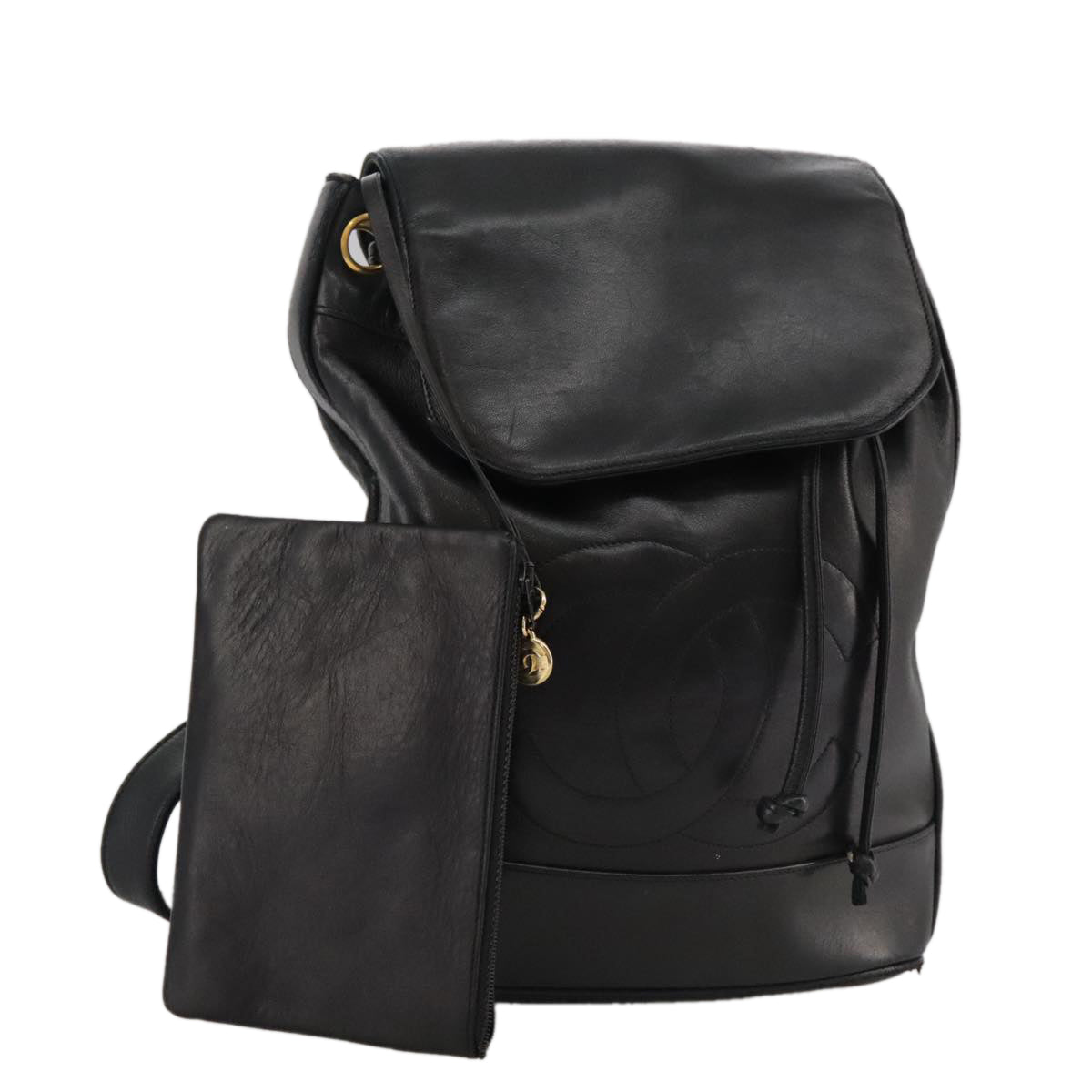 CHANEL COCO Mark Chain Body Bag Lamb Skin Black CC 102945
