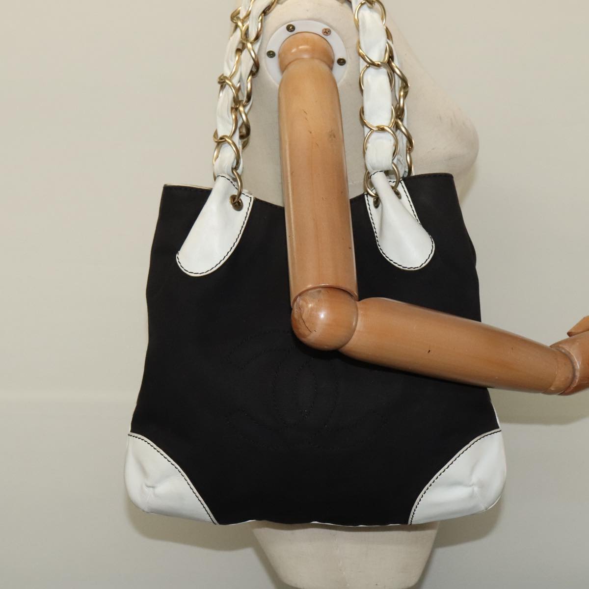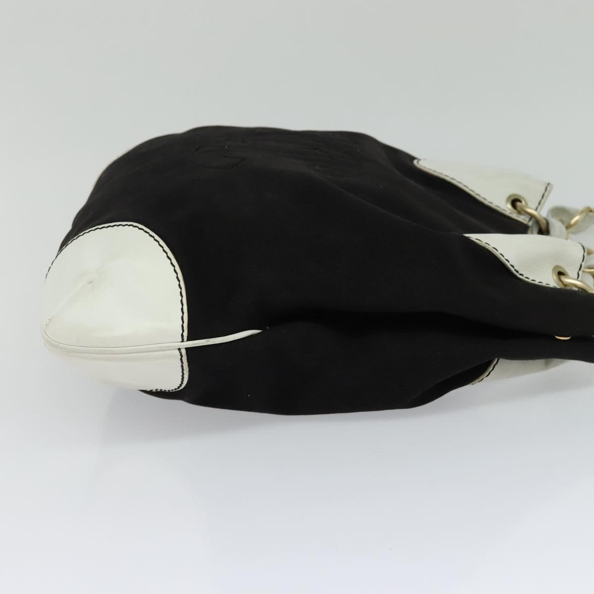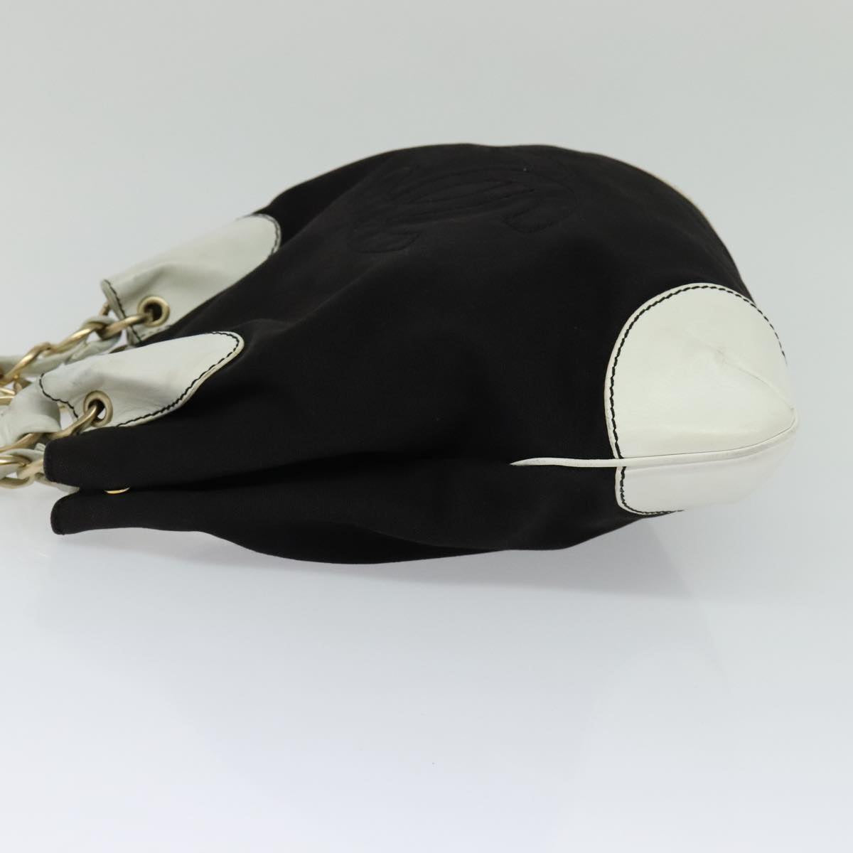 CHANEL COCO Mark Chain Tote Bag Canvas Leather Black White CC yk17264