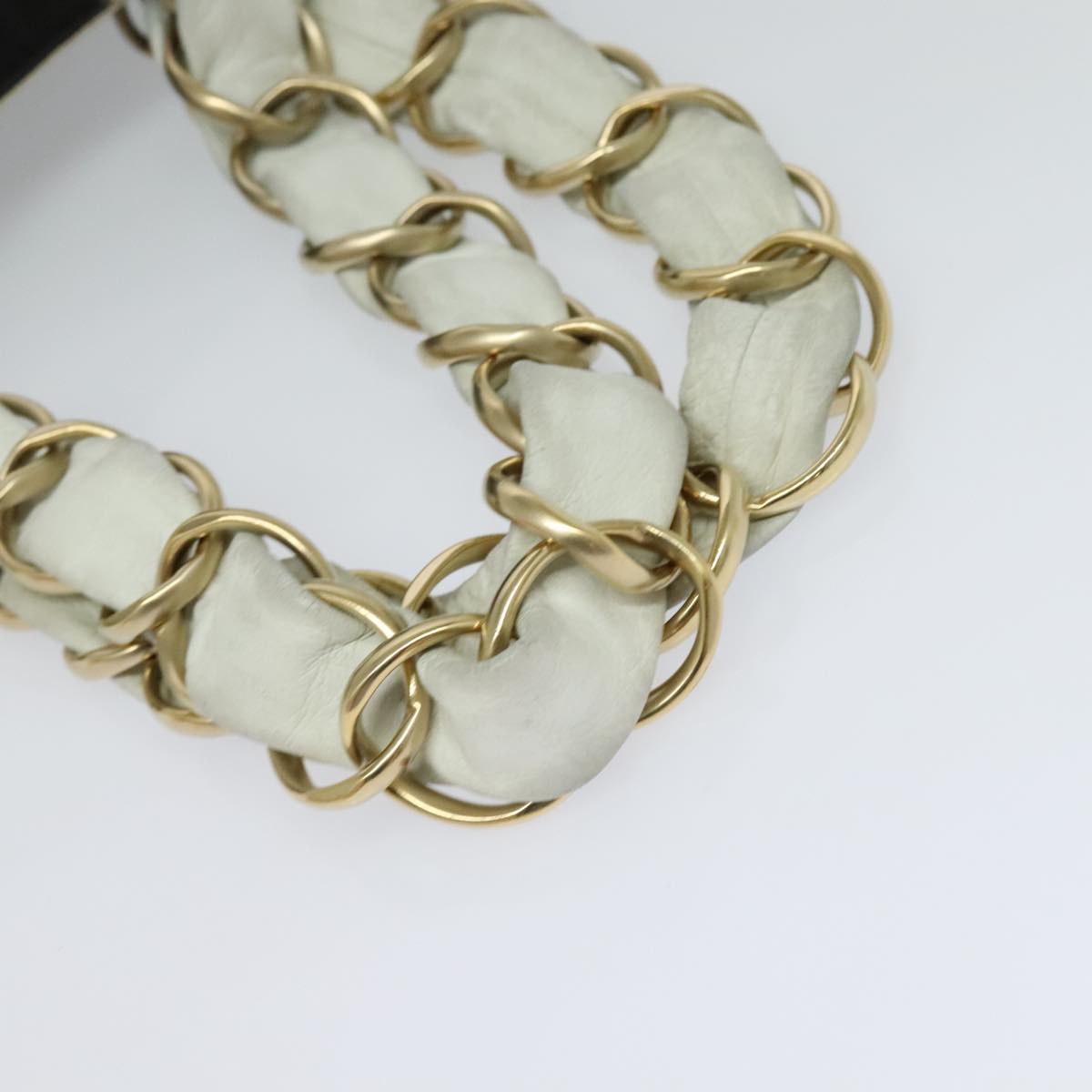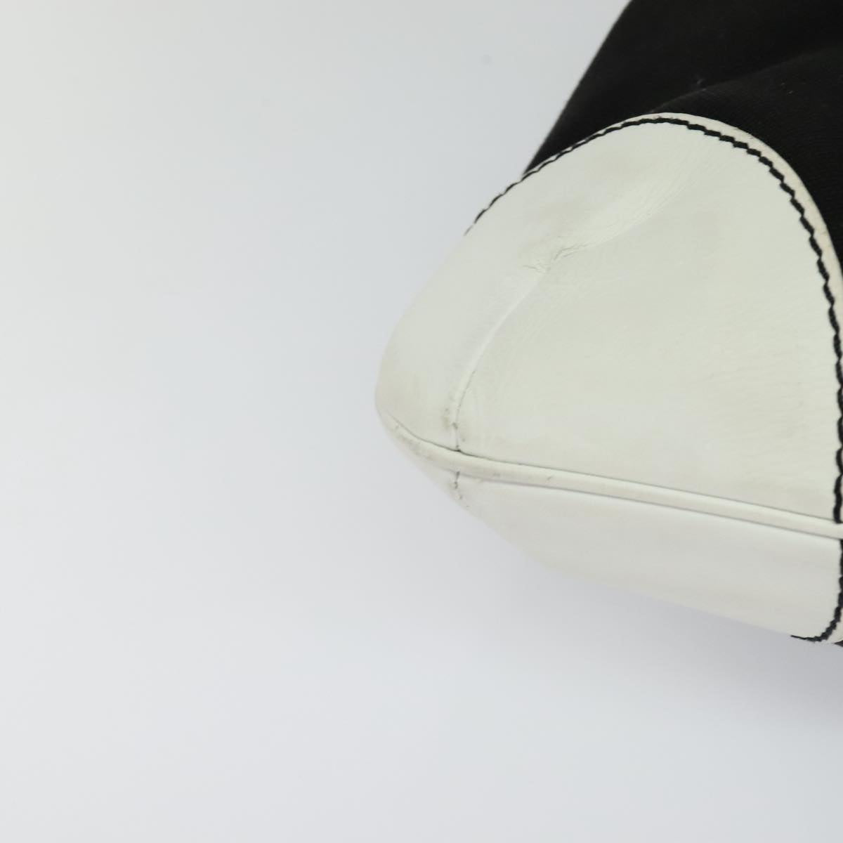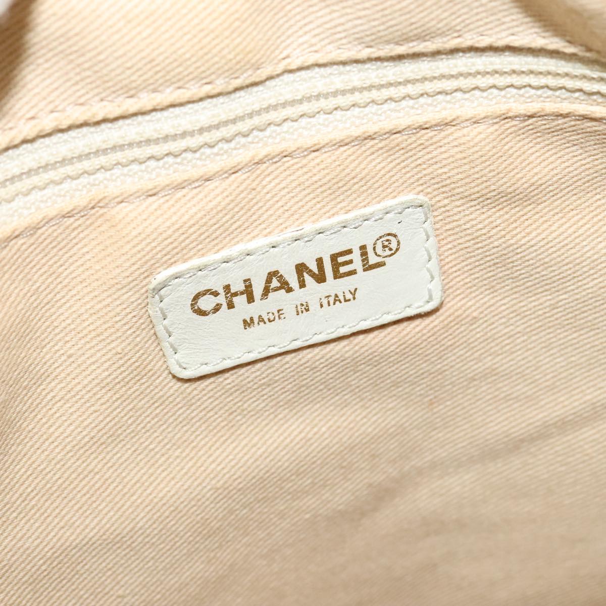 CHANEL COCO Mark Chain Tote Bag Canvas Leather Black White CC yk17264