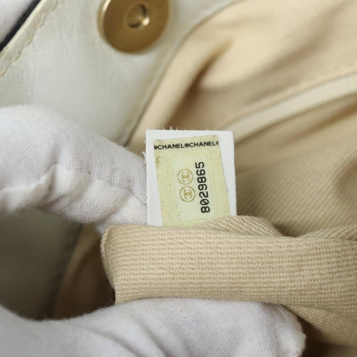 CHANEL COCO Mark Chain Tote Bag Canvas Leather Black White gold CC 90837