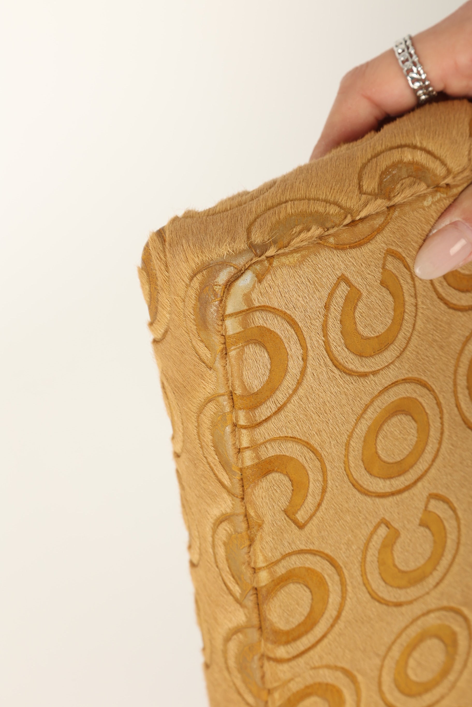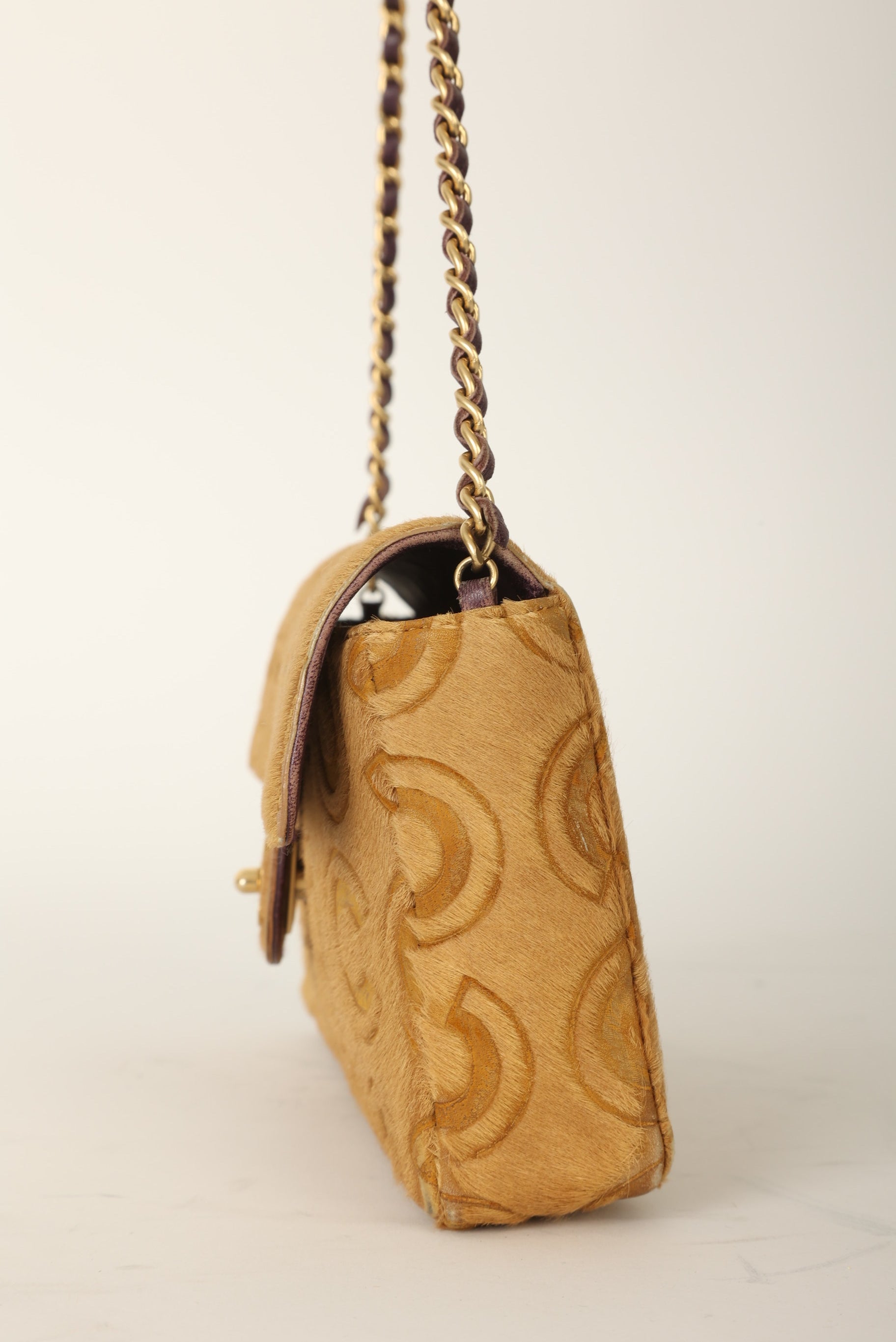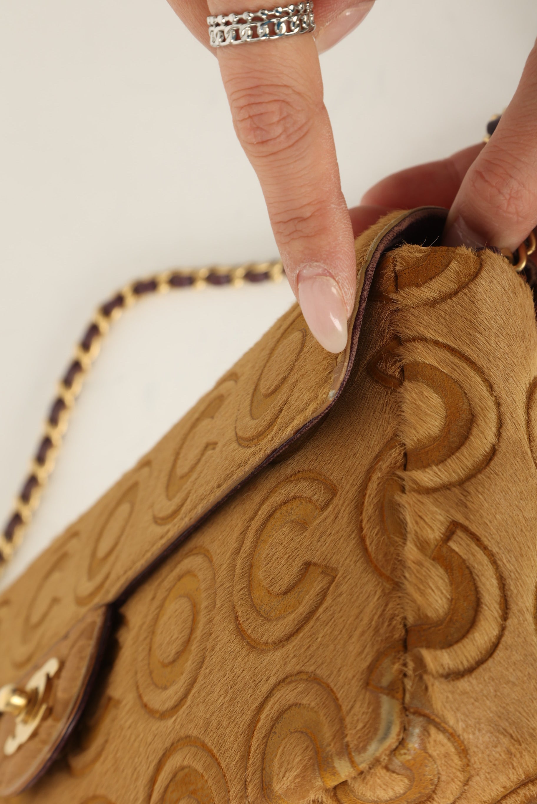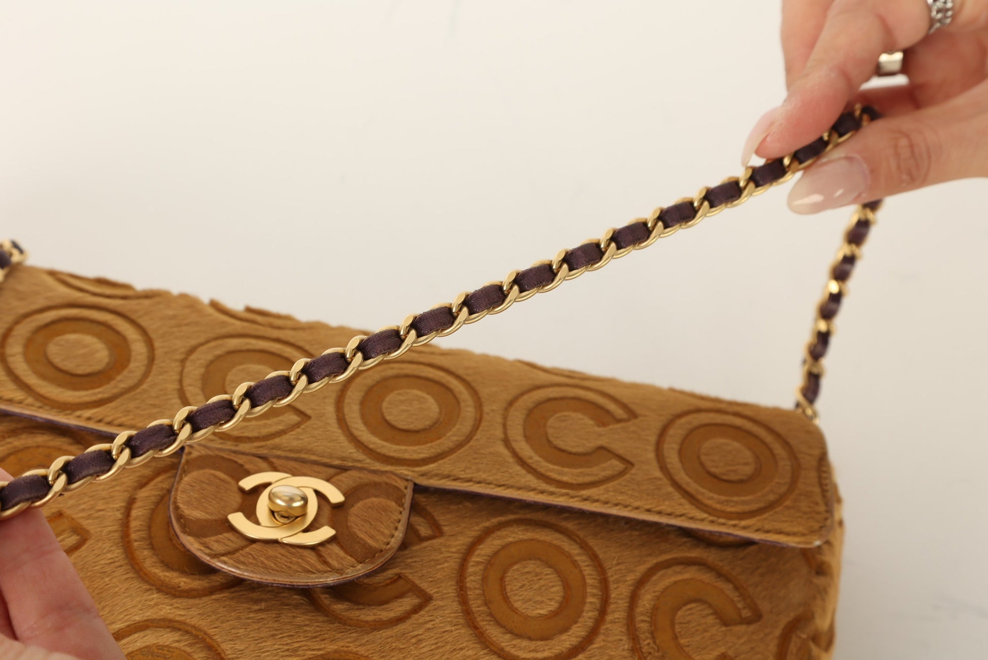 Twin with Nica - she has the same style! Dropping in the shop is a beautiful Chanel Ponyhair Coco East West Flap in a stunning caramel color with antique gold hardware! This beauty is such a special piece as it's crafted in ponyhair and has COCO etched all over the bag. The inner purple lambskin lining gives the bag such a fun touch. To make it even more special, the bag is the discontinued east west design. Such a great bag to grab on your night out on the town! You can fit your phone, keys, wallet, sunglasses, and one or two more smaller essentials.?