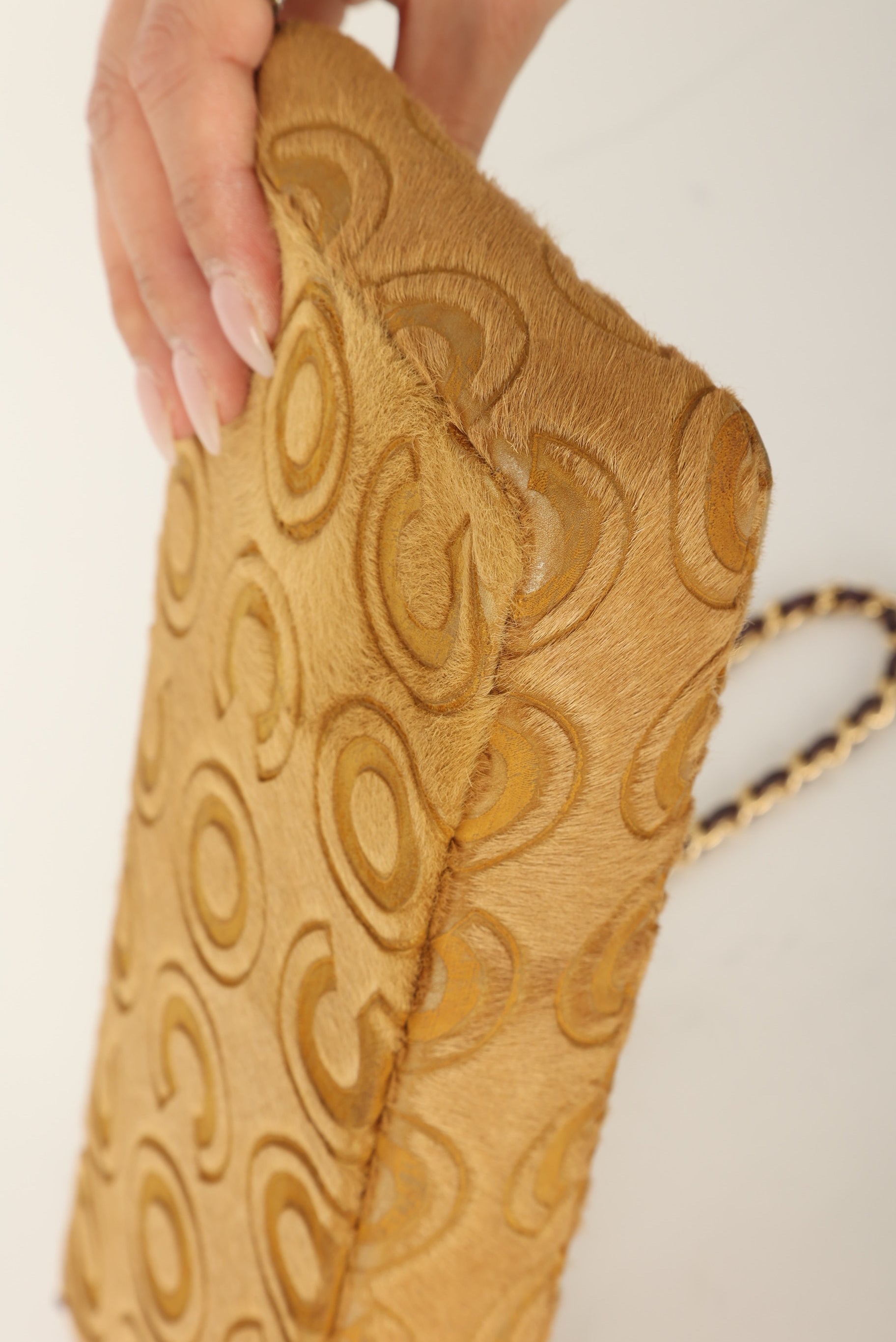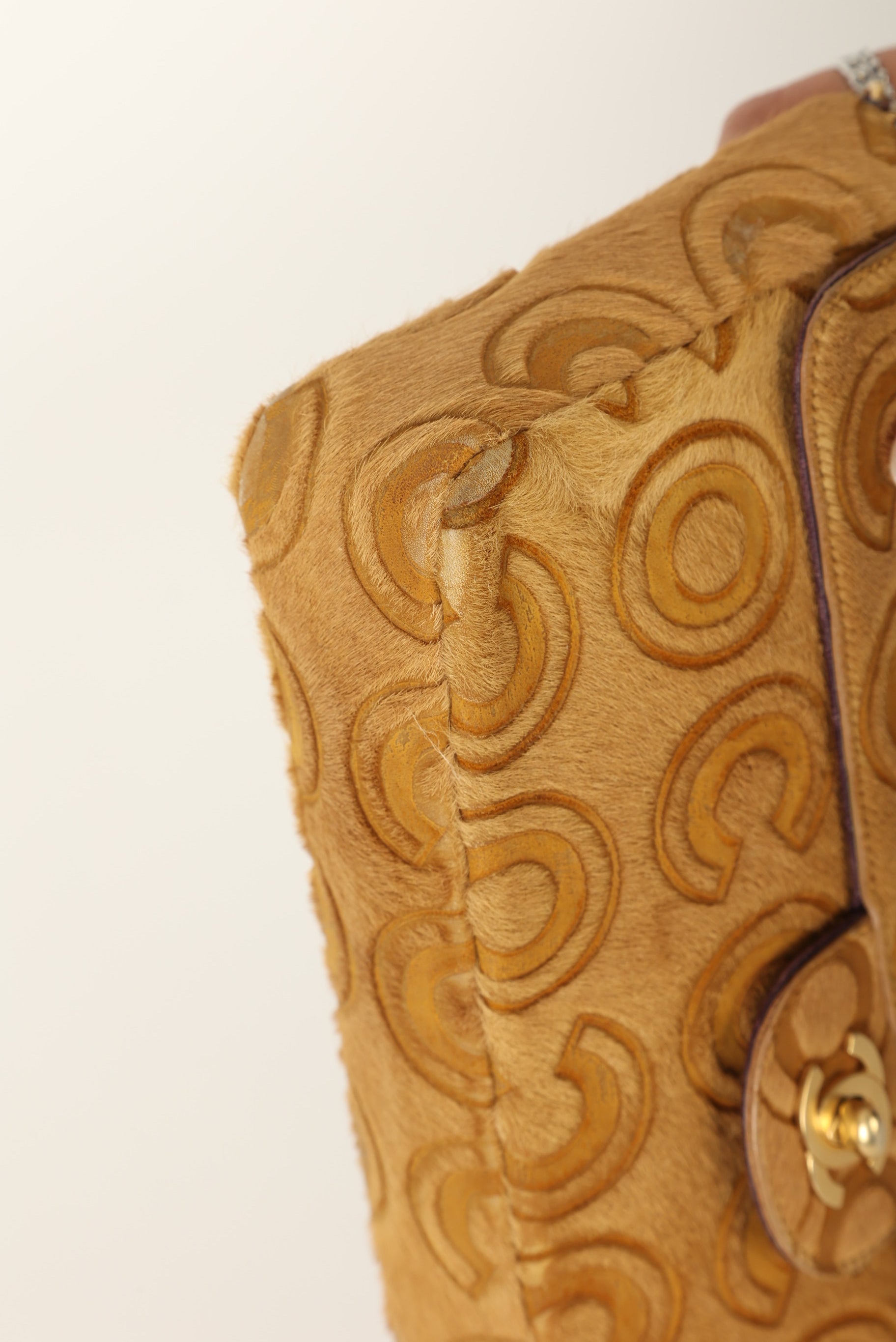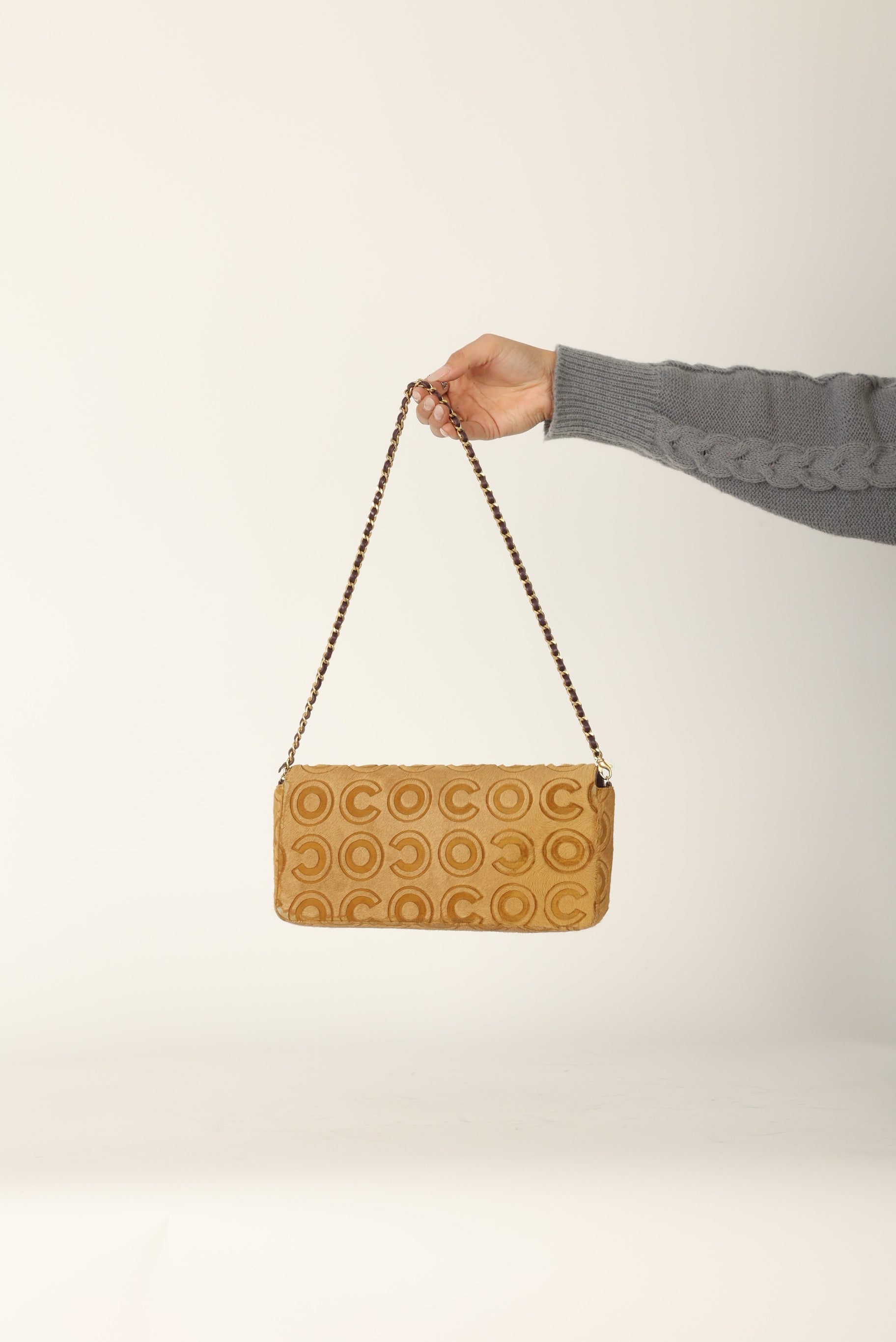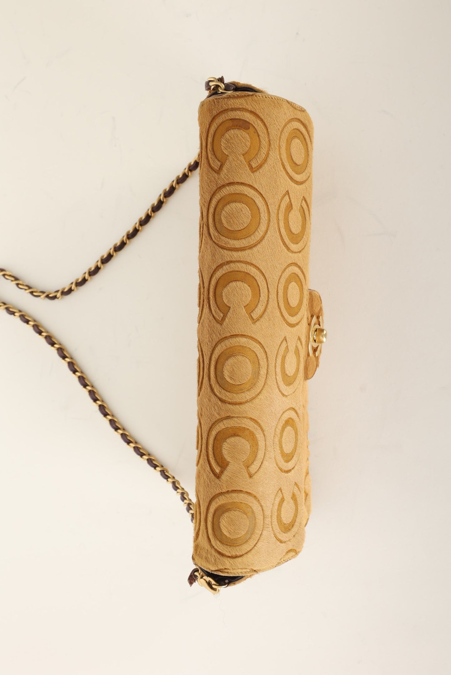 Twin with Nica - she has the same style! Dropping in the shop is a beautiful Chanel Ponyhair Coco East West Flap in a stunning caramel color with antique gold hardware! This beauty is such a special piece as it's crafted in ponyhair and has COCO etched all over the bag. The inner purple lambskin lining gives the bag such a fun touch. To make it even more special, the bag is the discontinued east west design. Such a great bag to grab on your night out on the town! You can fit your phone, keys, wallet, sunglasses, and one or two more smaller essentials.?