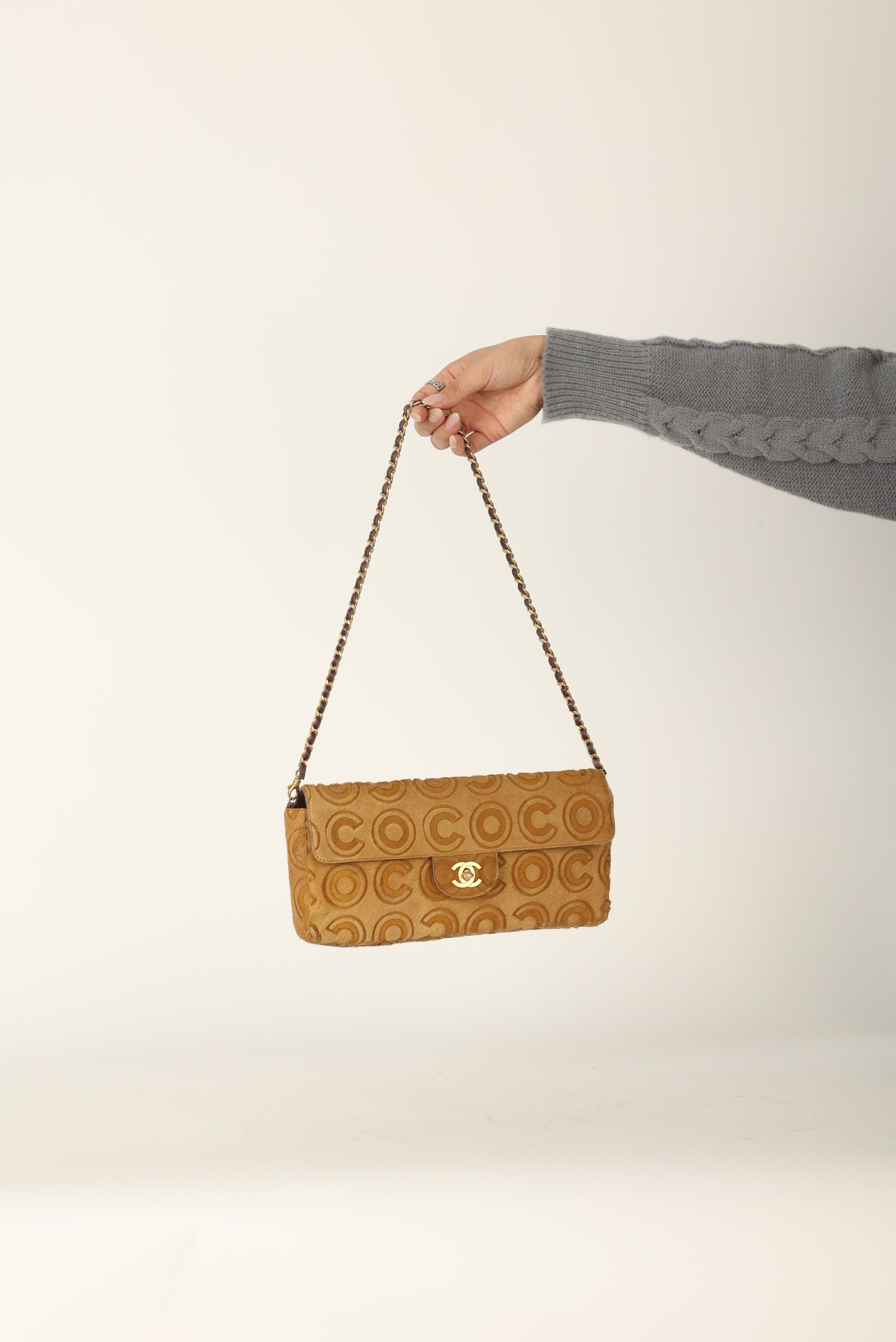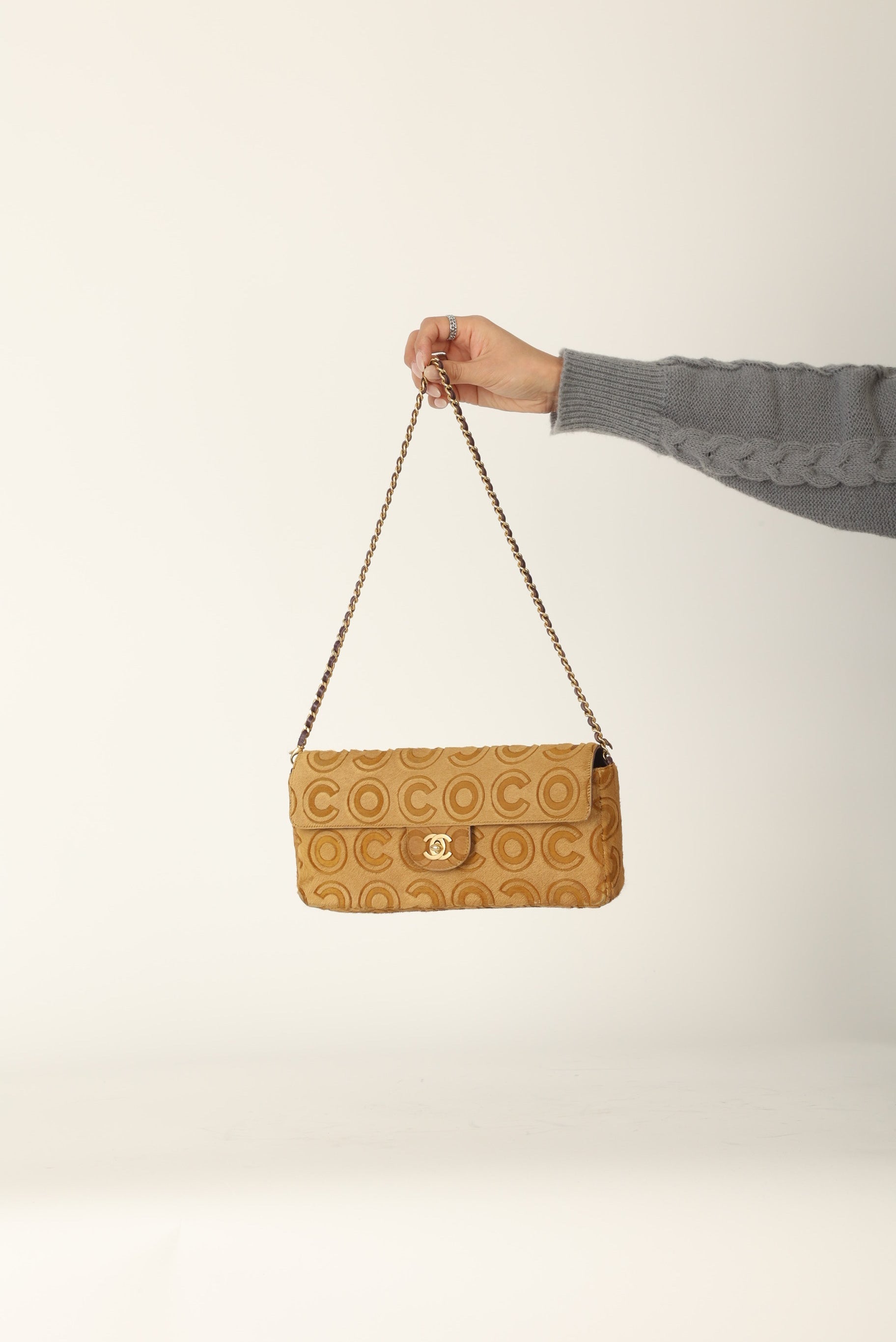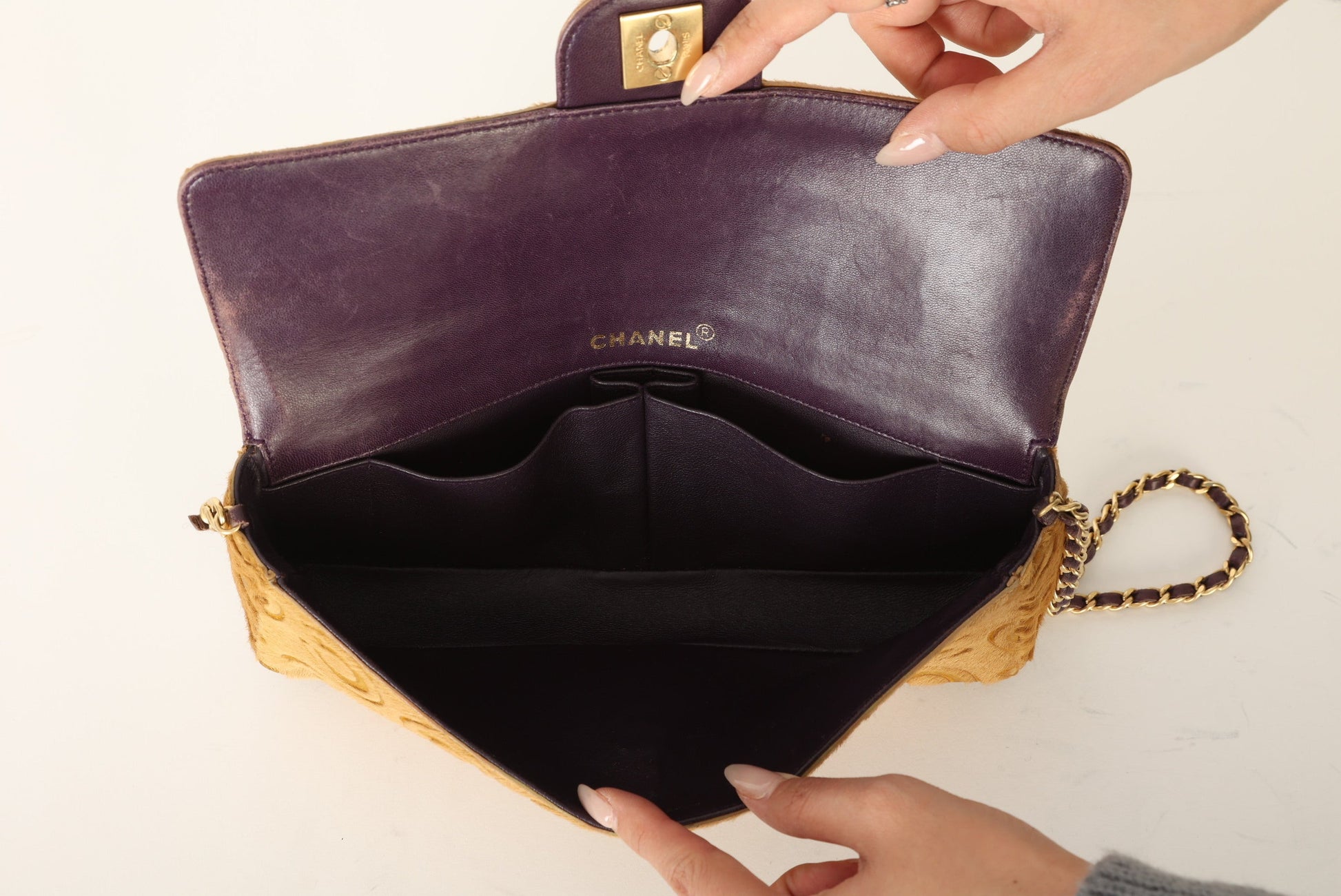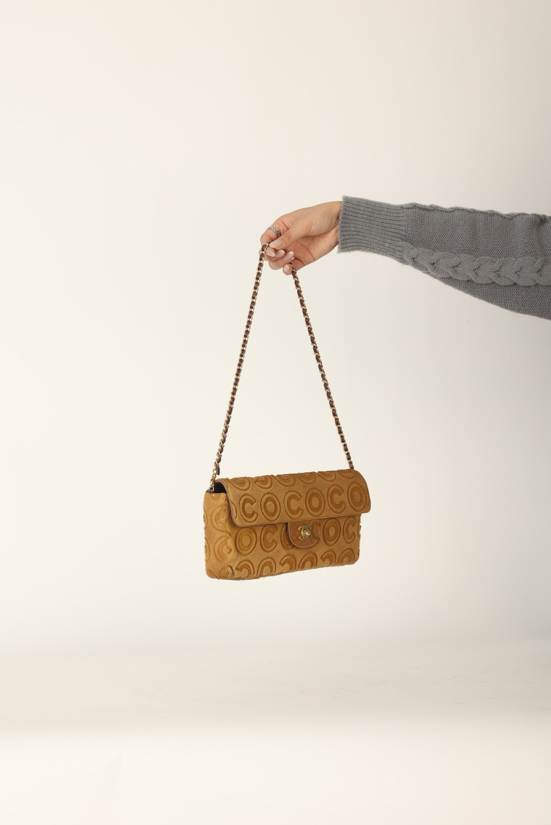 Twin with Nica - she has the same style! Dropping in the shop is a beautiful Chanel Ponyhair Coco East West Flap in a stunning caramel color with antique gold hardware! This beauty is such a special piece as it's crafted in ponyhair and has COCO etched all over the bag. The inner purple lambskin lining gives the bag such a fun touch. To make it even more special, the bag is the discontinued east west design. Such a great bag to grab on your night out on the town! You can fit your phone, keys, wallet, sunglasses, and one or two more smaller essentials.?