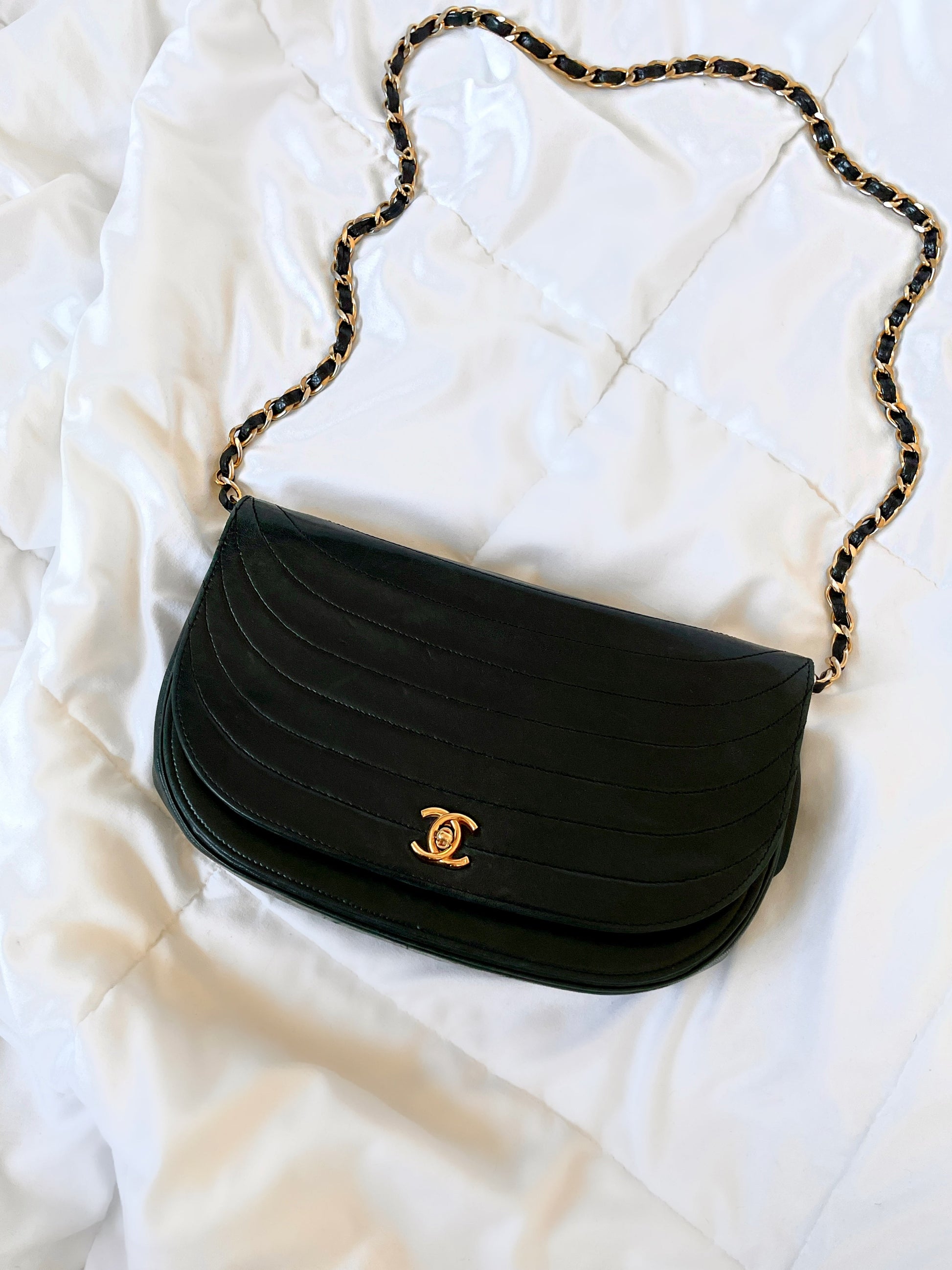 Up for grabs is a stunning Chanel?Crescent Half Flap vintage bag in lambskin! Highly sought after, crafted in the 90's with 24k gold plated hardware. Just conditioned, so lambskin is buttery soft! Currently online going for 4000+.