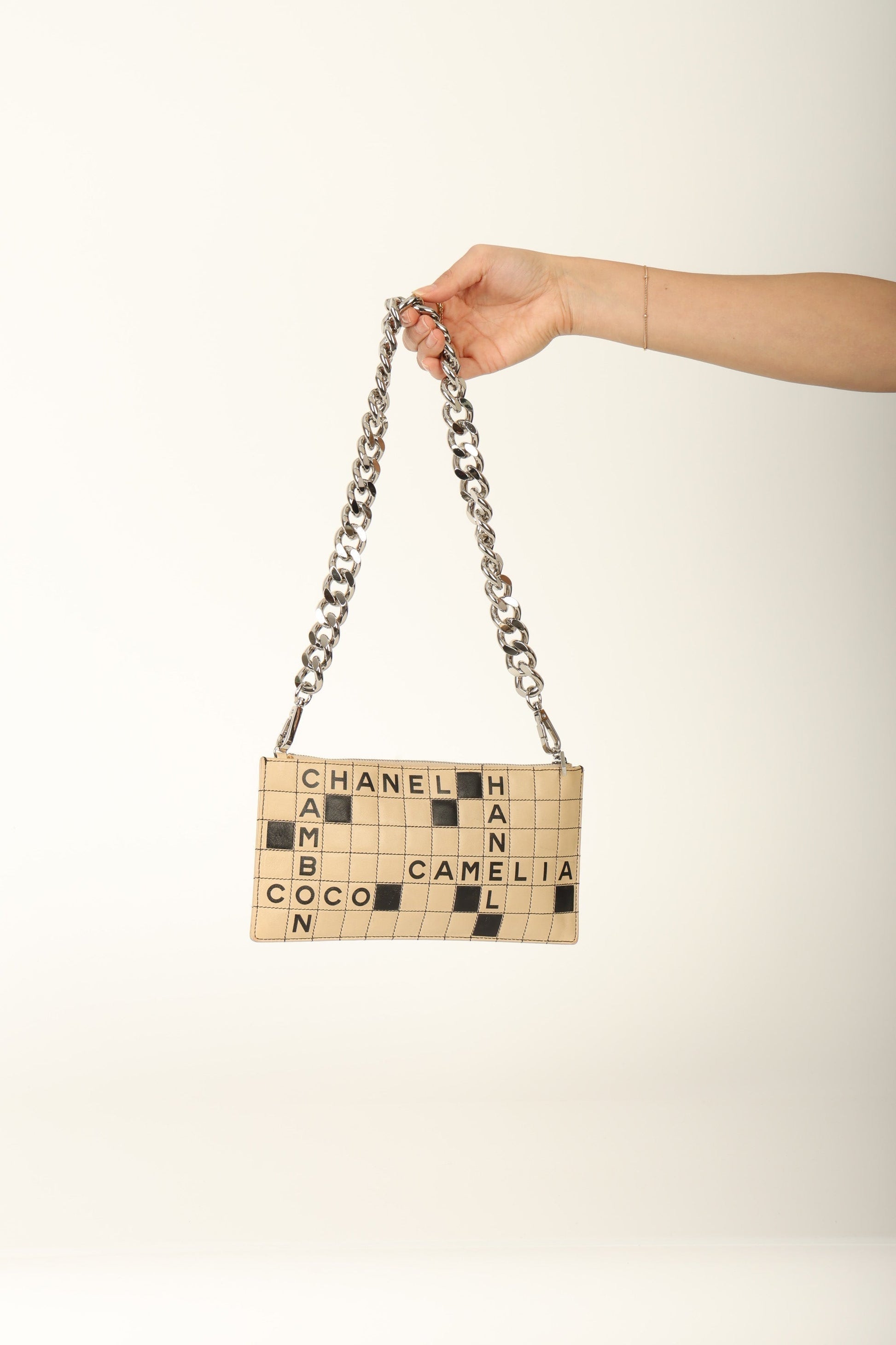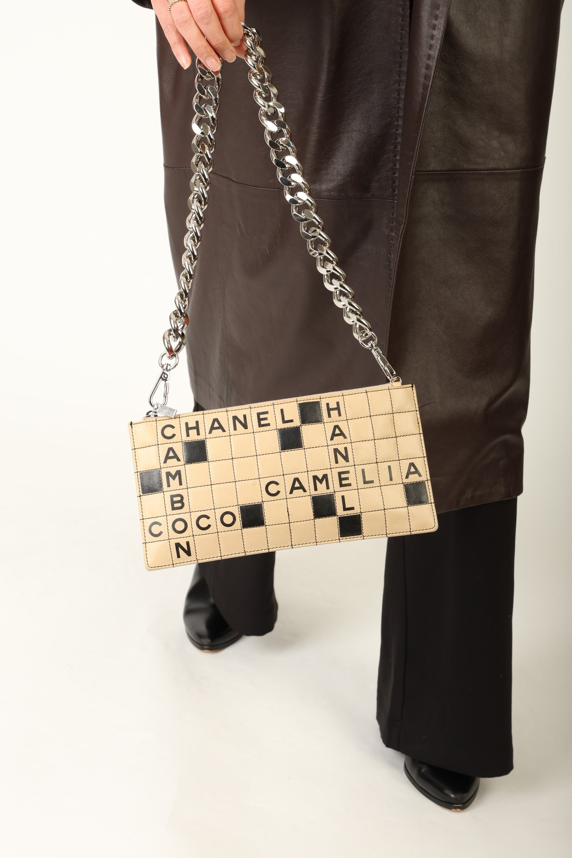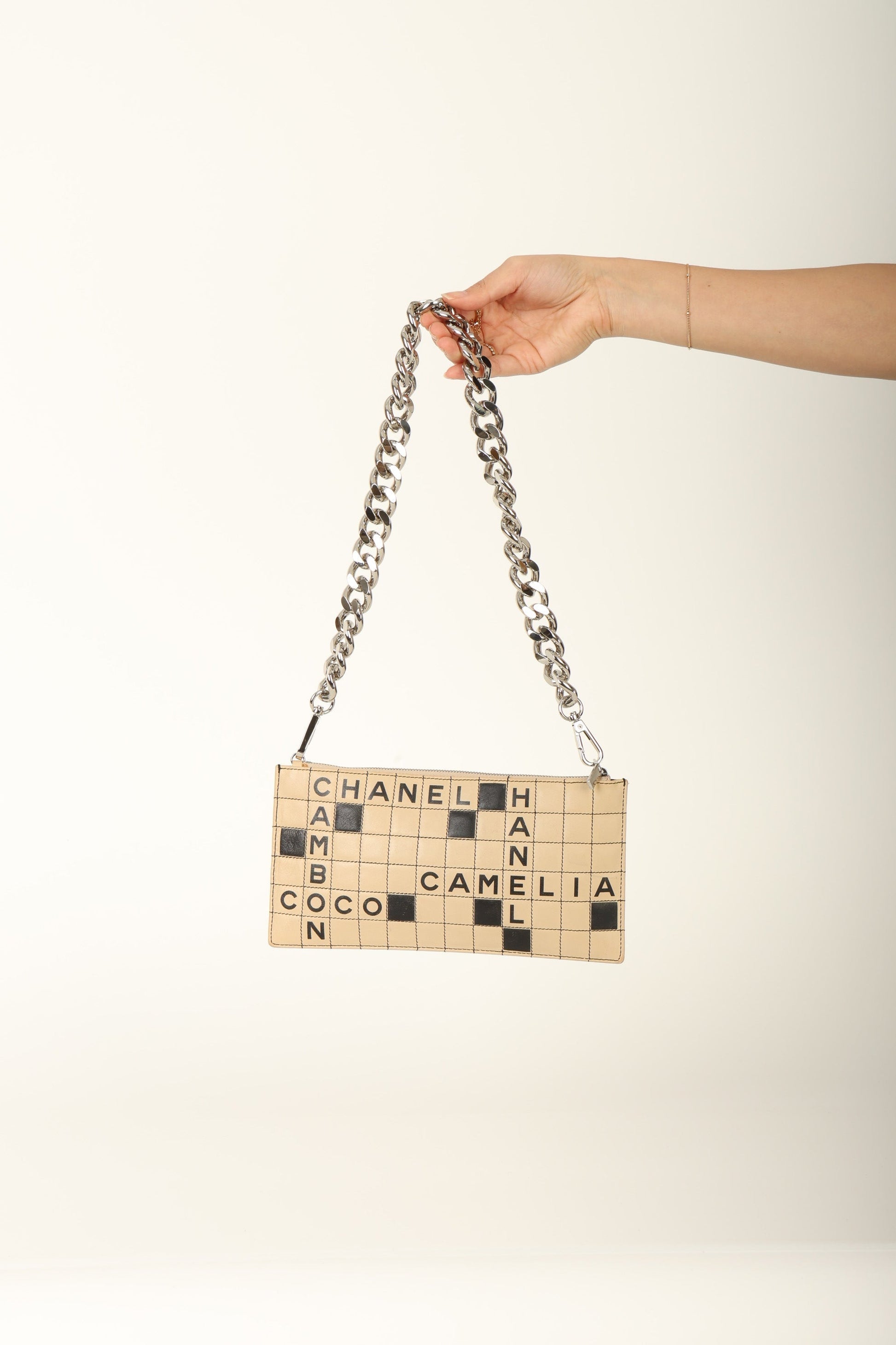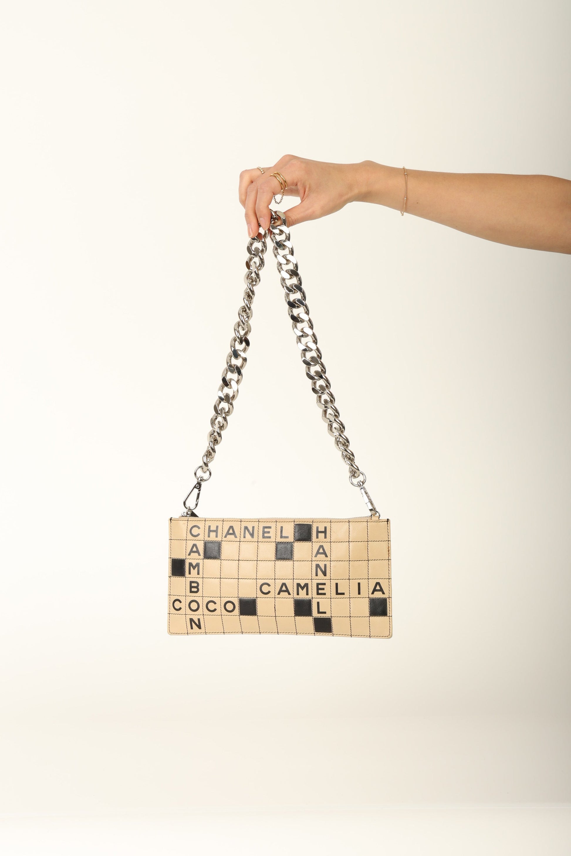 Bringing a chic crossword Chanel bag to the shop! This piece is such an eye catcher, and brings some fun and whimsy to a stylish outfit. Added generic chunky chain for some flair!