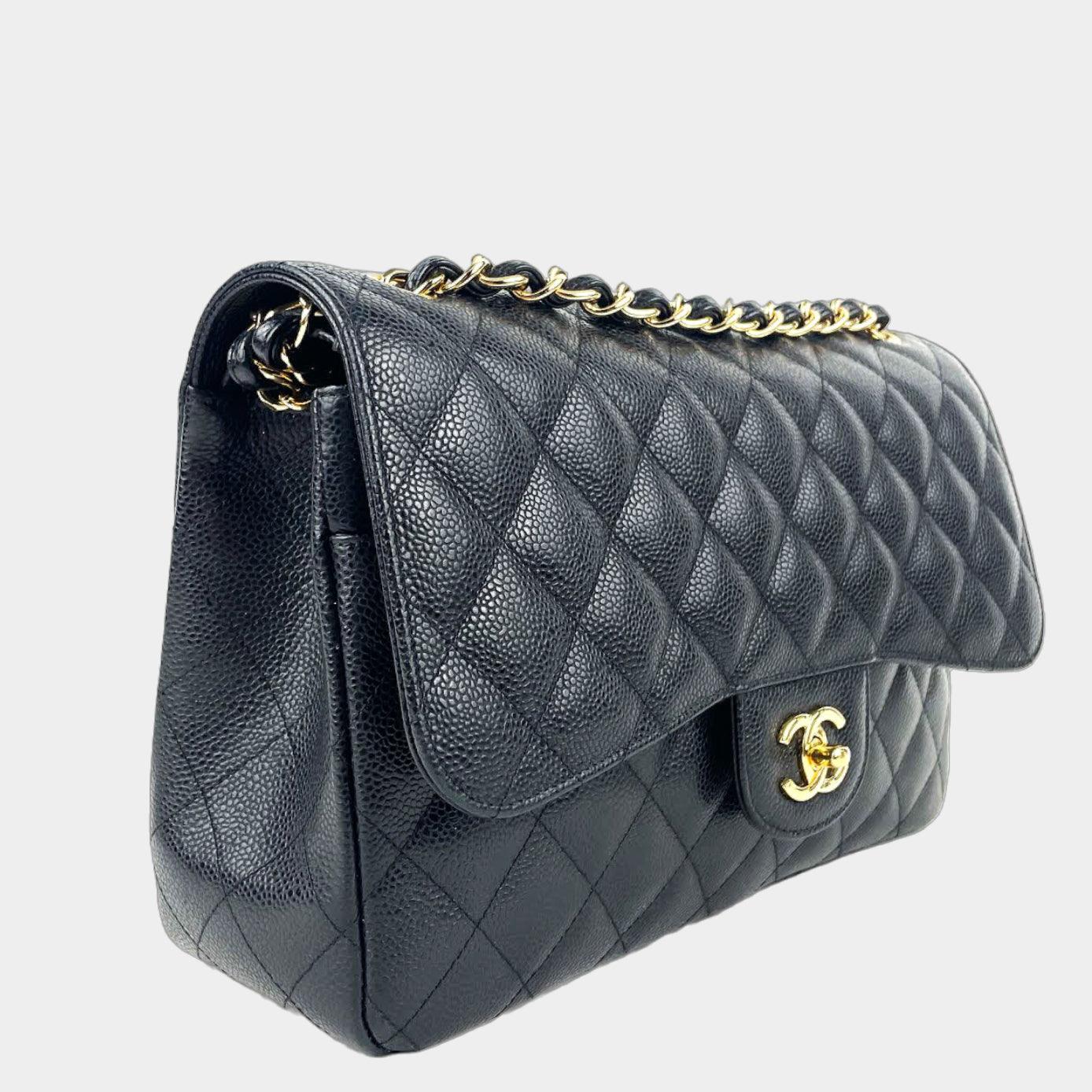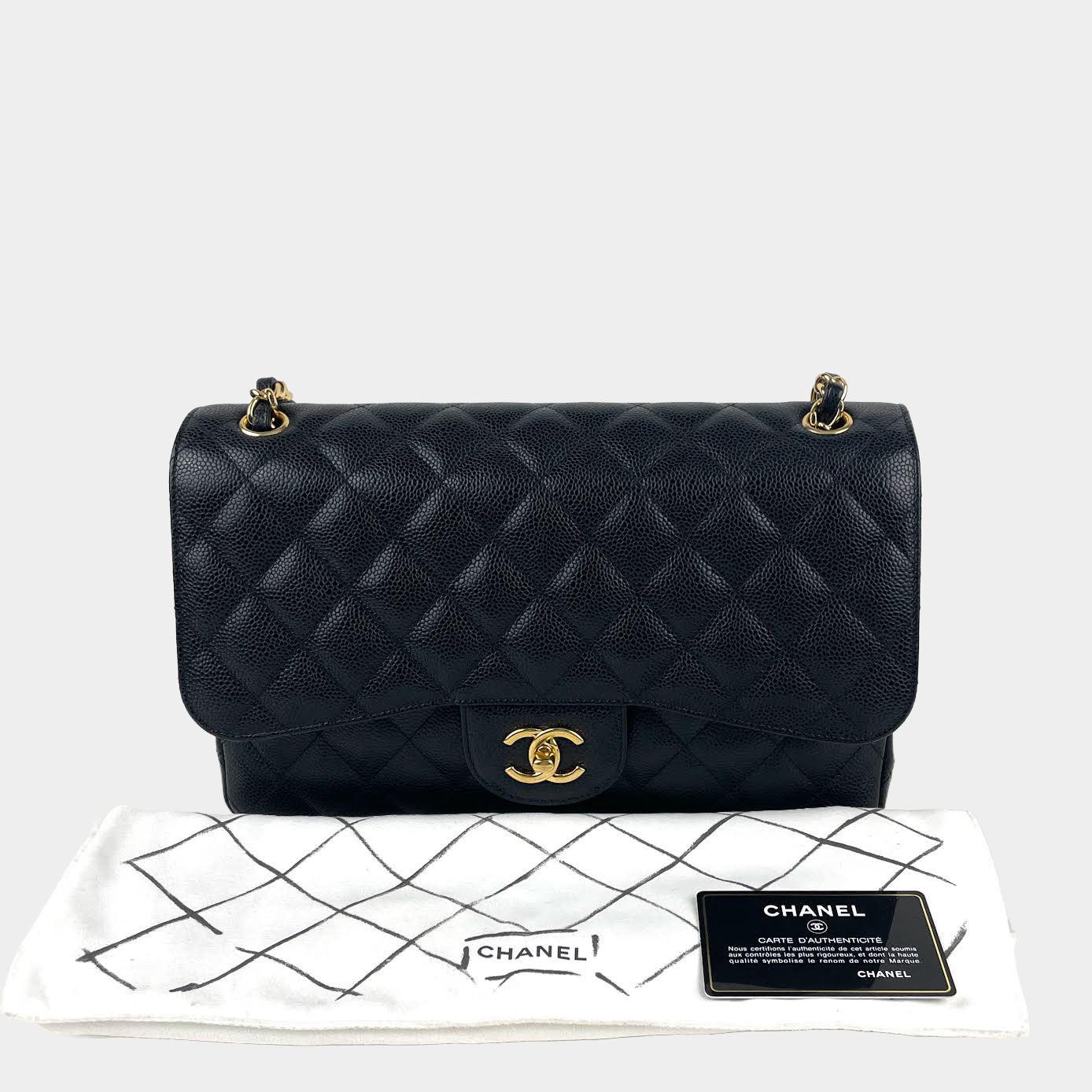 CHANEL Caviar Quilted Jumbo Double Flap Black w/Gold