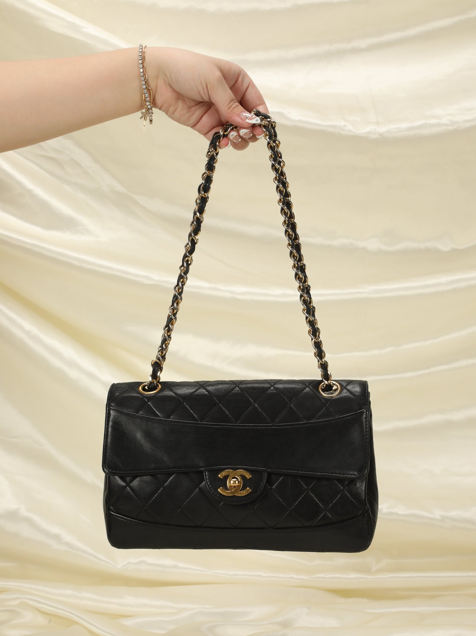 Bringing to the shop a stunning, soft timeless Chanel flap with a matching wallet. Can be loved for years to come. Vintage Chanel crafted in the 90's= 24k hardware and soft buttery lambskin. Don't miss out on this gorgeous find. Can be as a long or short shoulder bag. 5000-8000+.?