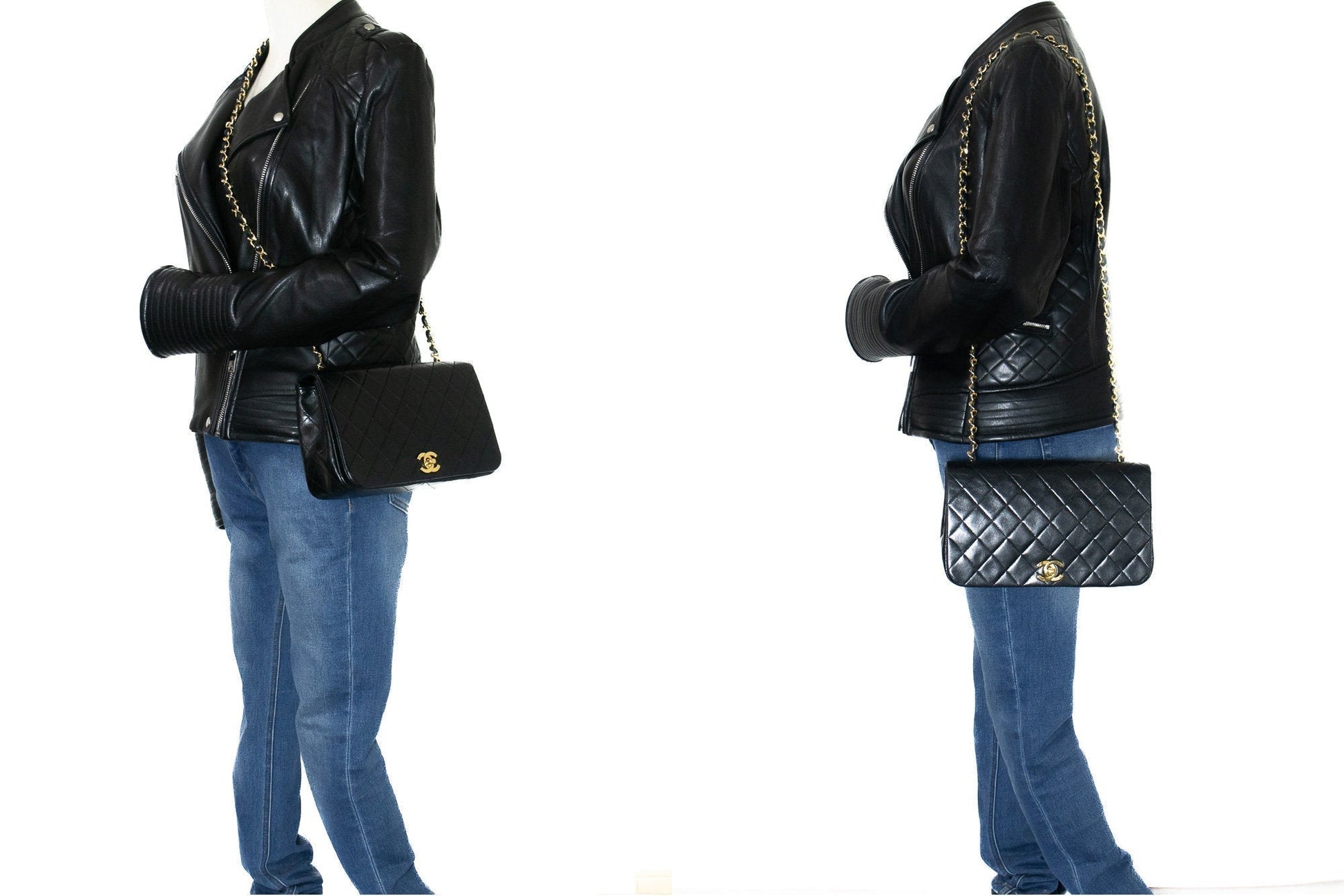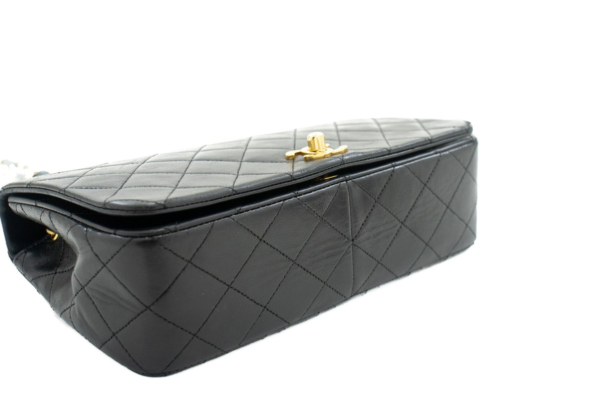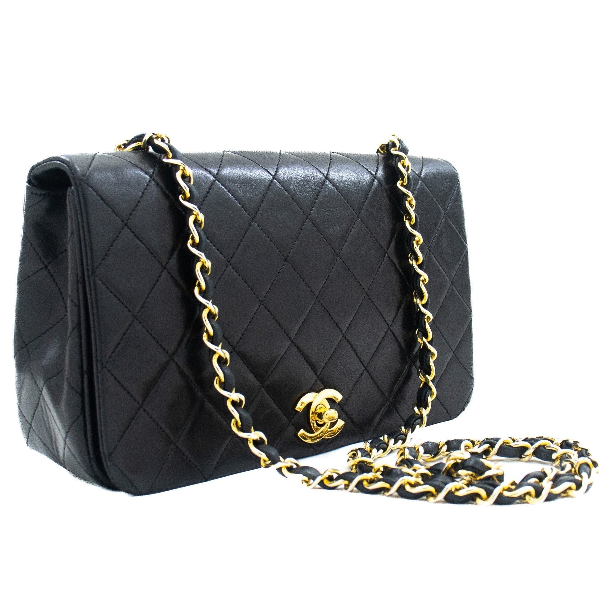 CHANEL Full Flap Chain Shoulder Bag Black Quilted Lambskin Purse j65