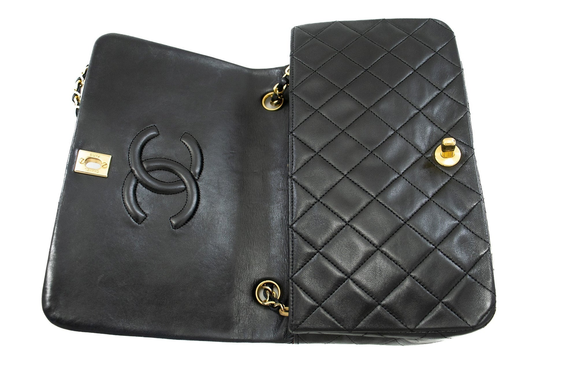 An CHANEL Full Flap Chain Shoulder Bag Black Quilted made of black Lambskin Purse j65 This item is Vintage / Classic. The year of manufacture would be 1989-1991.