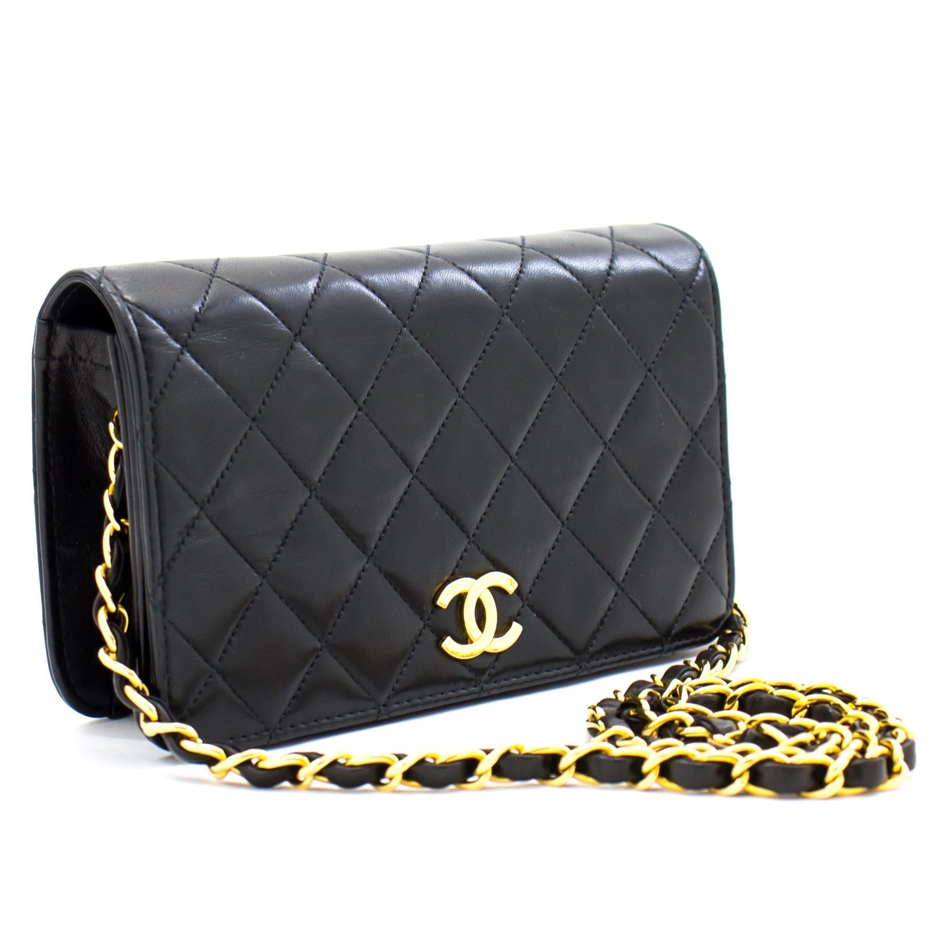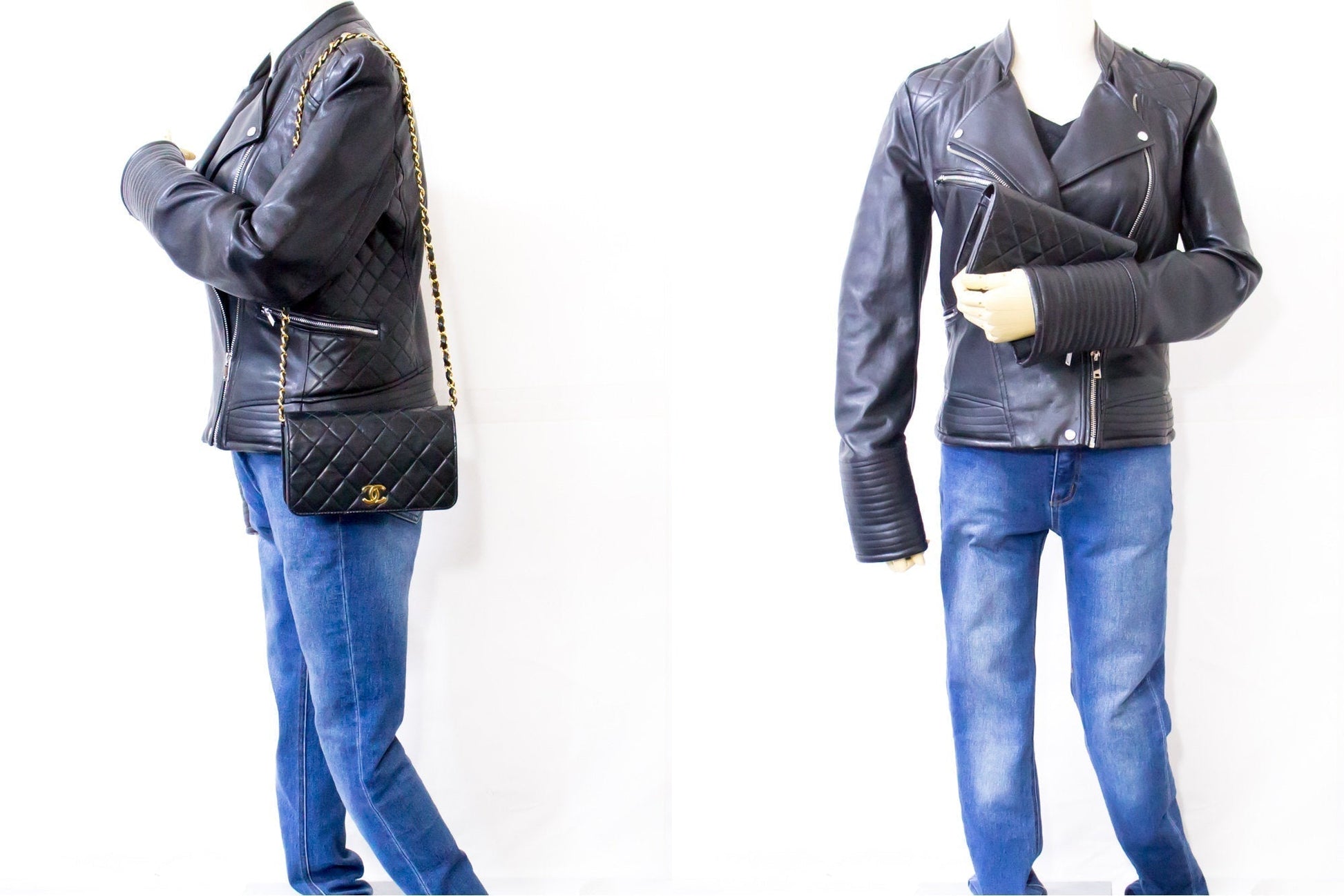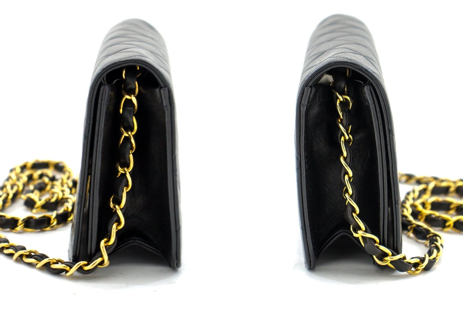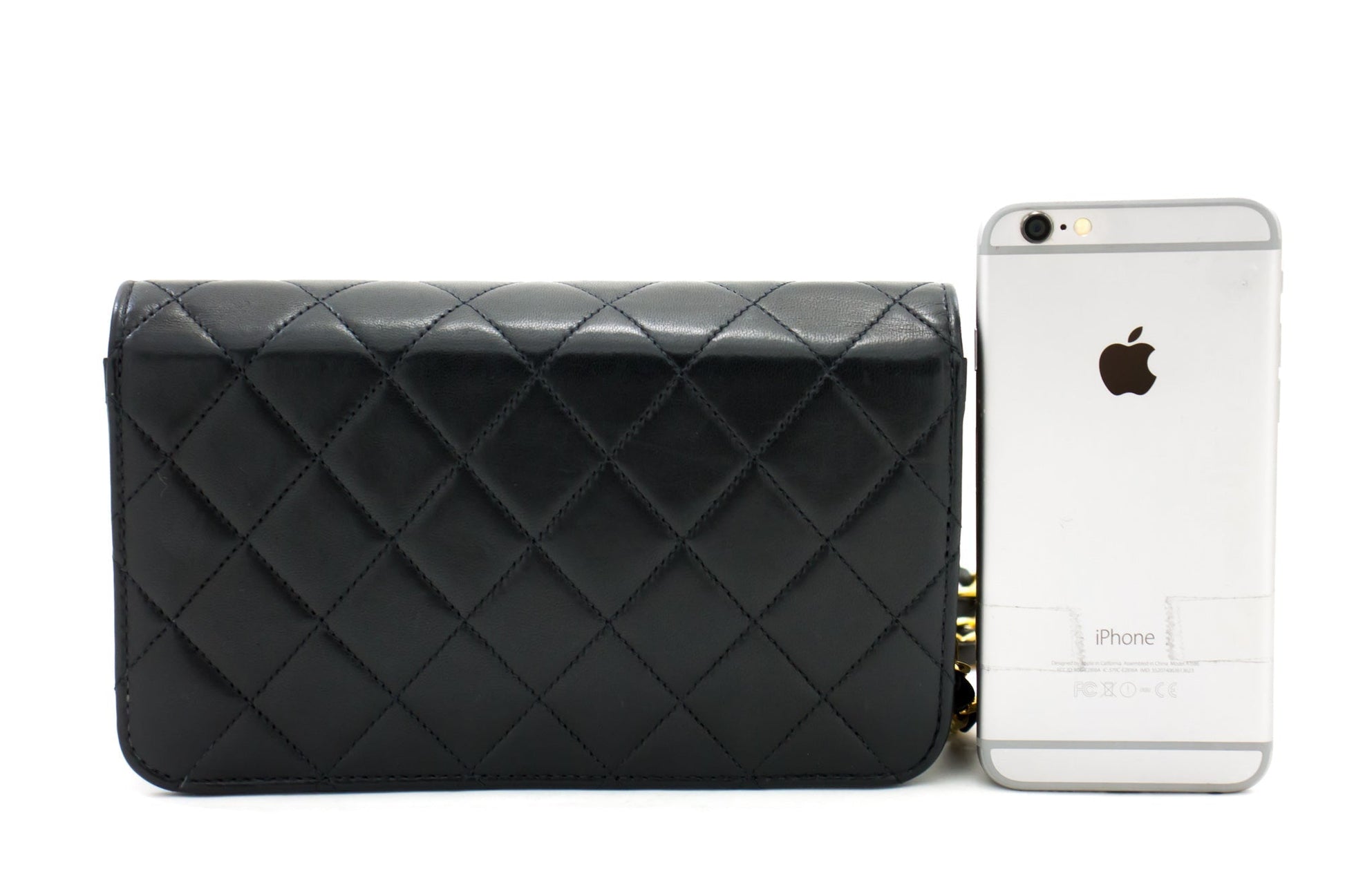 An CHANEL Full Flap Chain Shoulder Bag Clutch Black Quilted made of black Lambskin h09 This item is Vintage / Classic. The year of manufacture would be 1997-1999.
