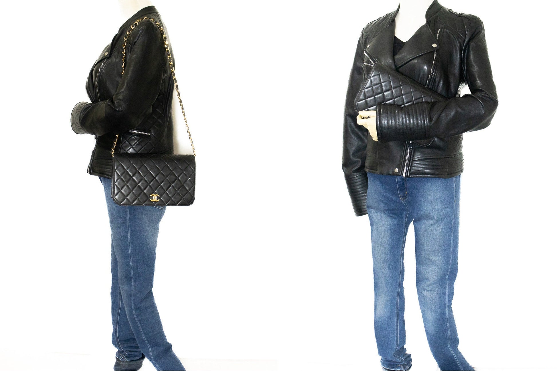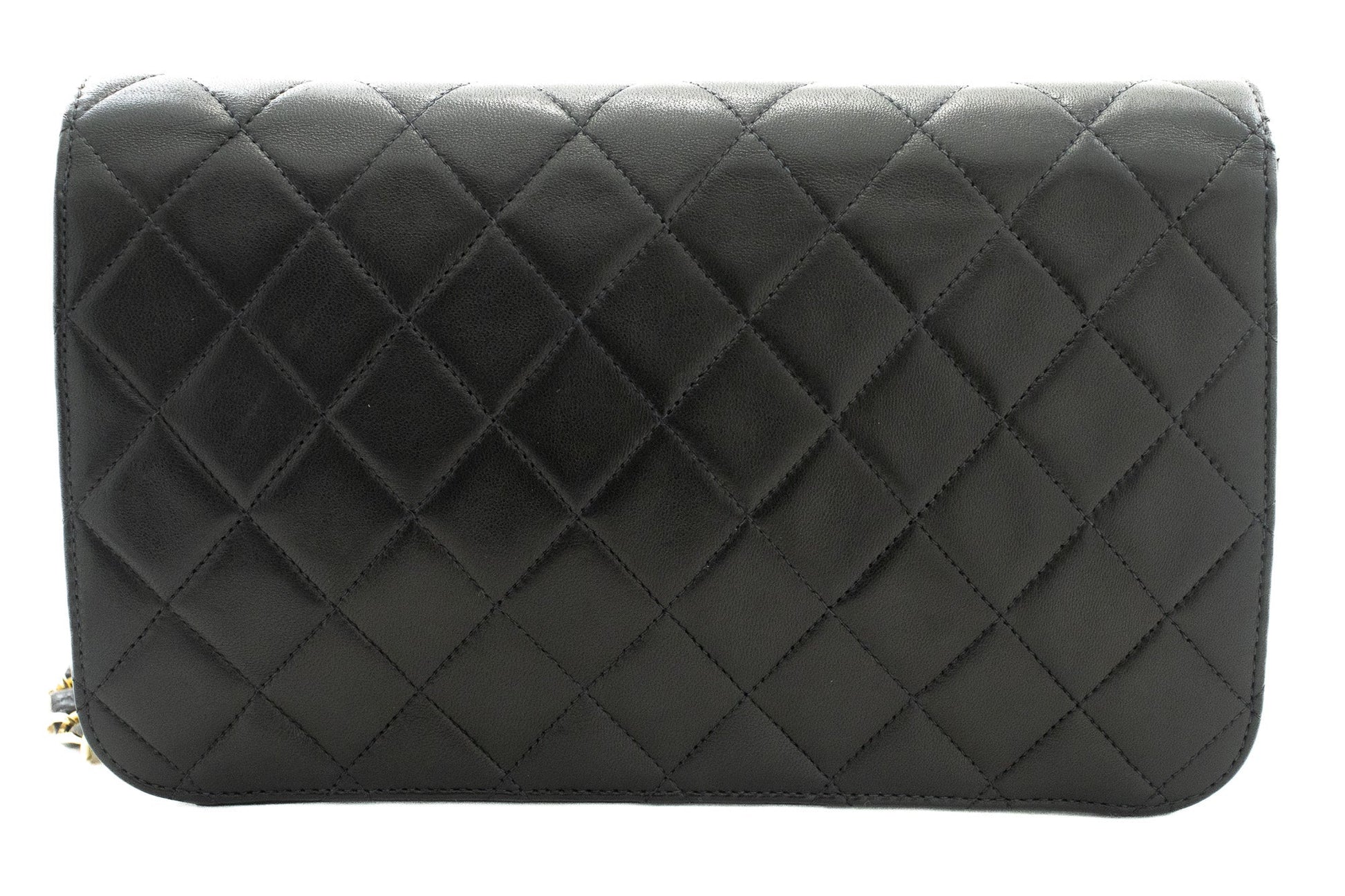CHANEL Full Flap Chain Shoulder Bag Clutch Black Quilted Lambskin k19