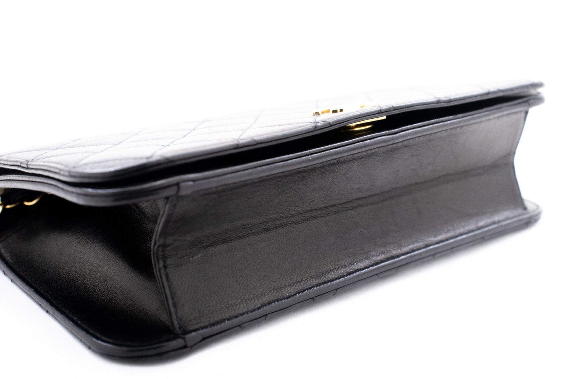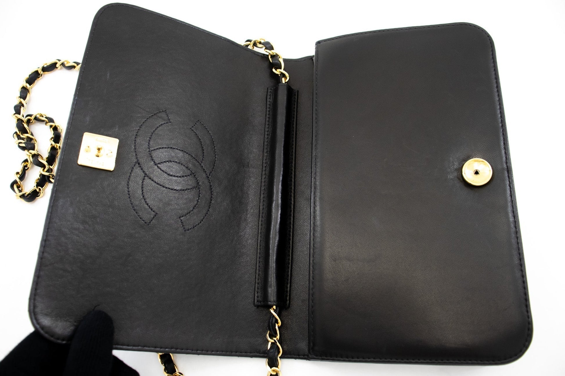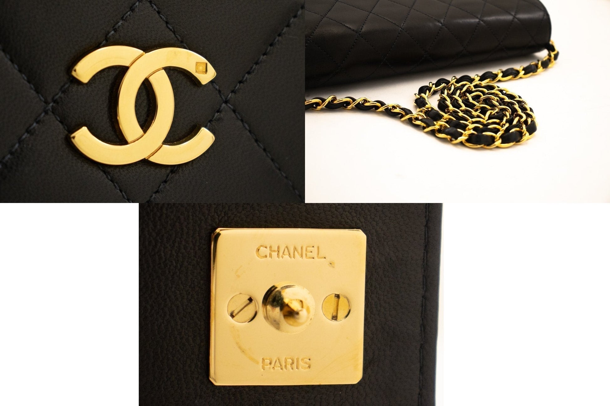 CHANEL Full Flap Chain Shoulder Bag Clutch Black Quilted Lambskin k78