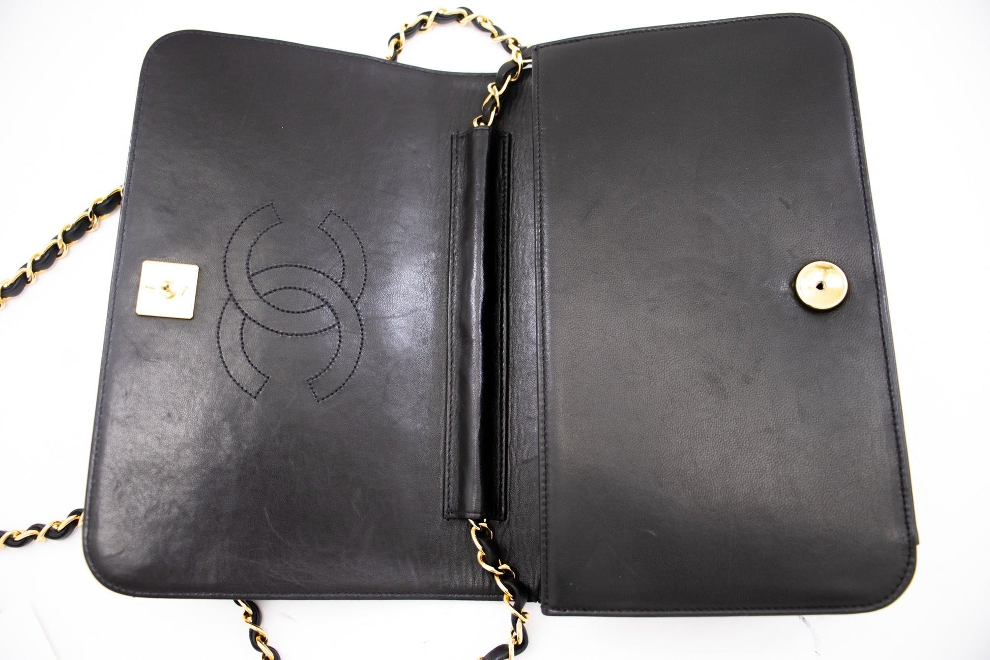 An CHANEL Full Flap Chain Shoulder Bag Clutch Black Quilted made of black Lambskin k82 This item is Vintage / Classic. The year of manufacture would be 1996-1997.