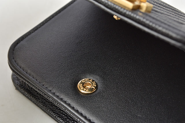 Chanel Boy Belt Bag Coin Case Chain Pouch Black Gold Hardware