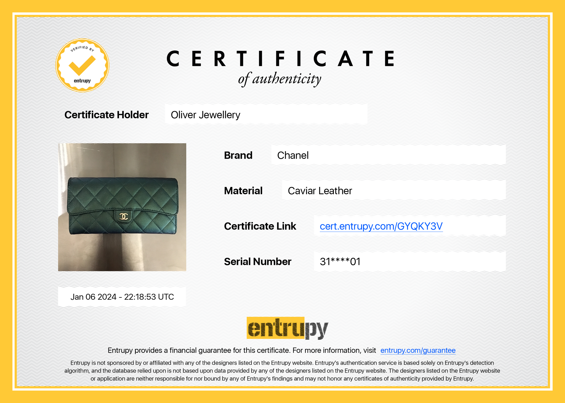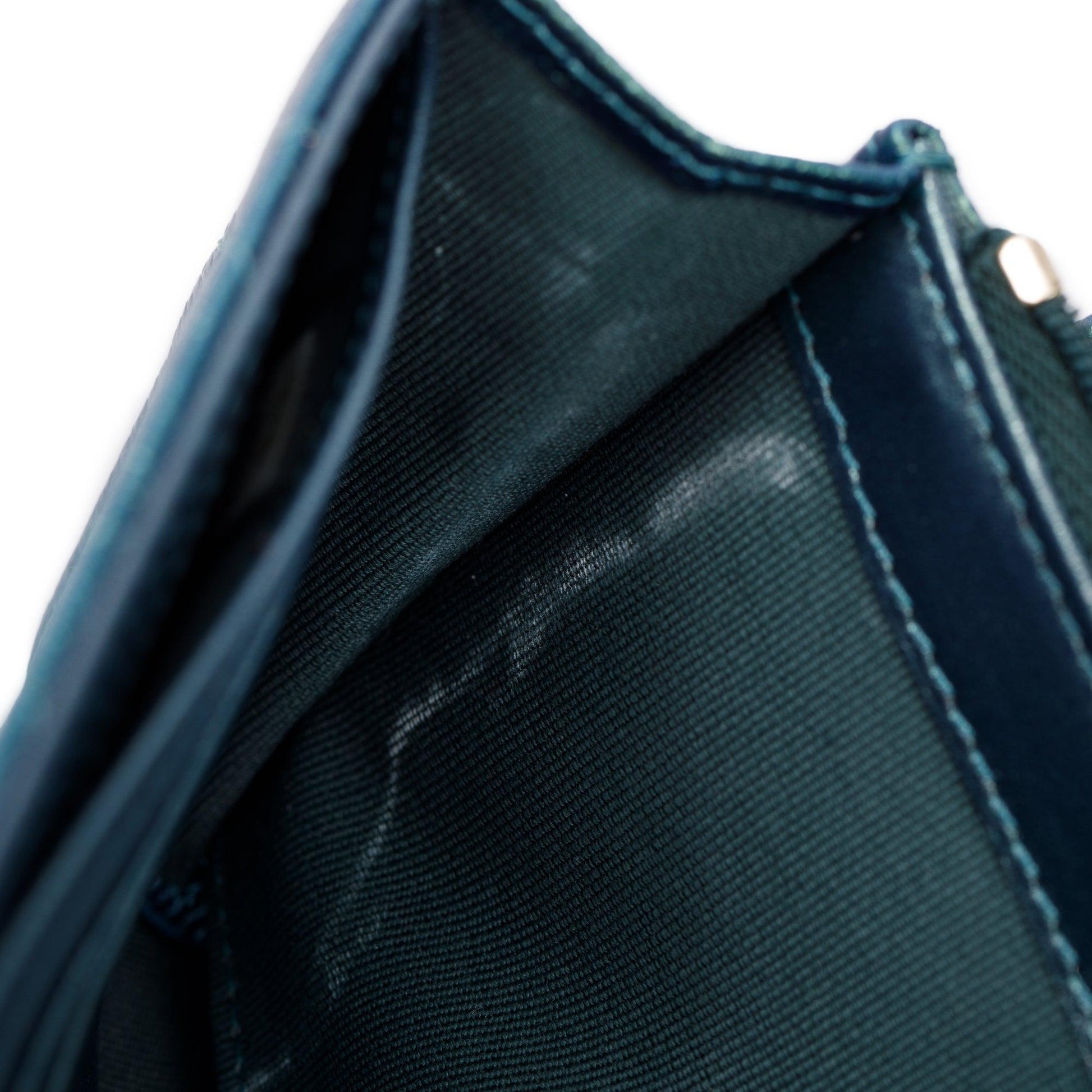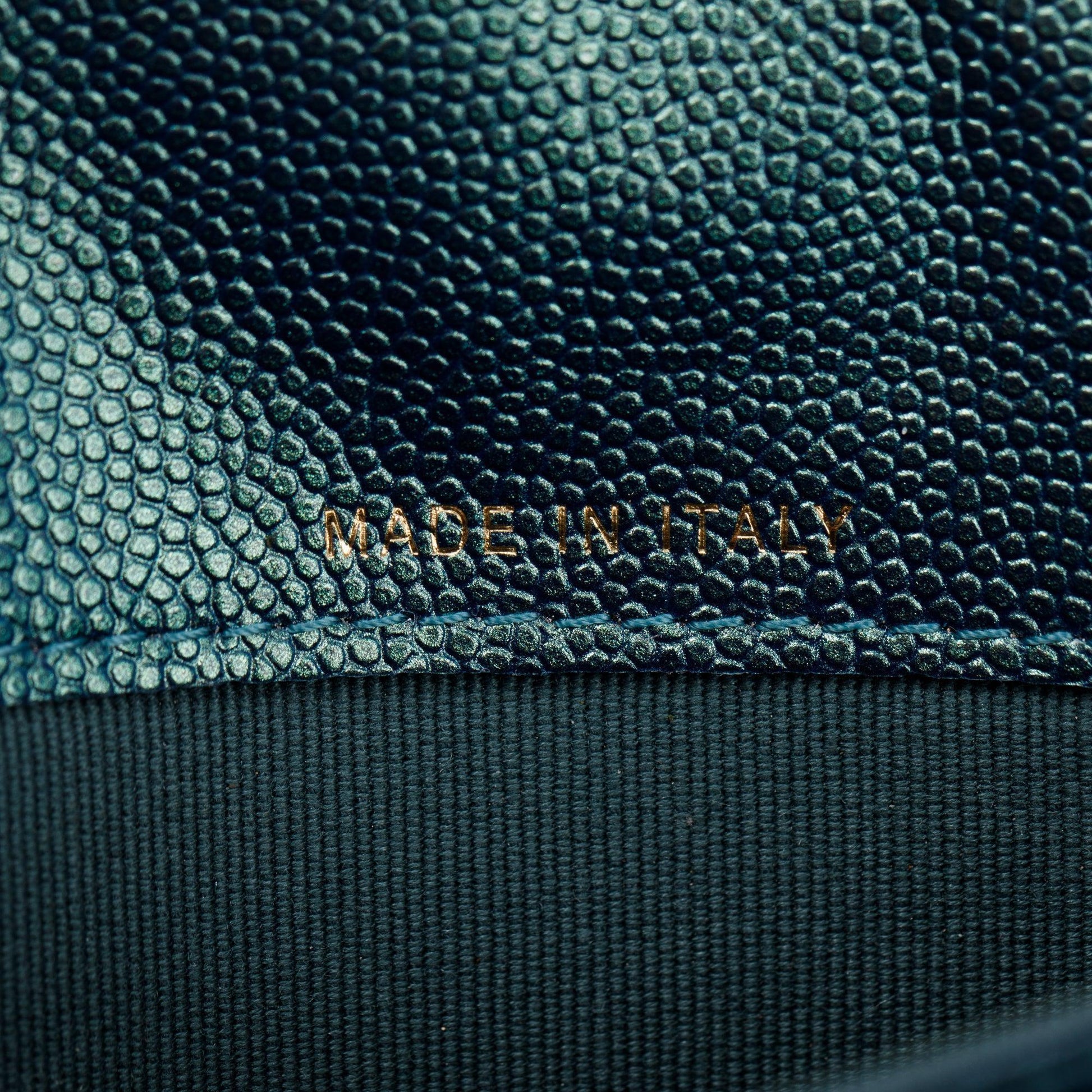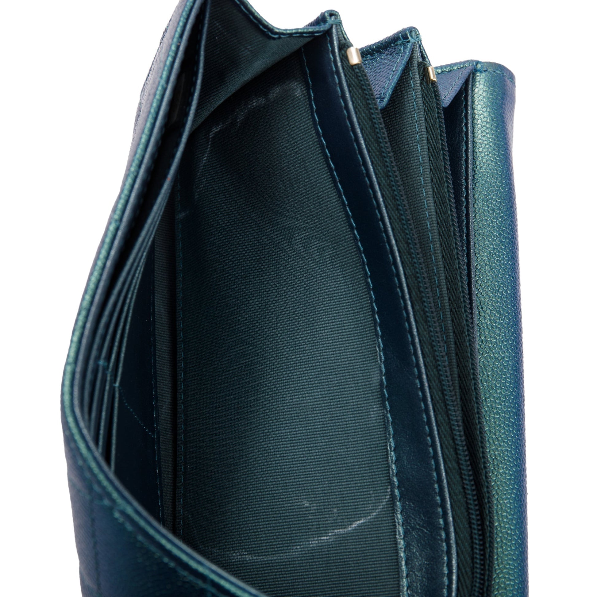 Chanel 2021 Green Iridescent Caviar Leather Classic Long Flap Wallet w/ Box & Authenticity Card