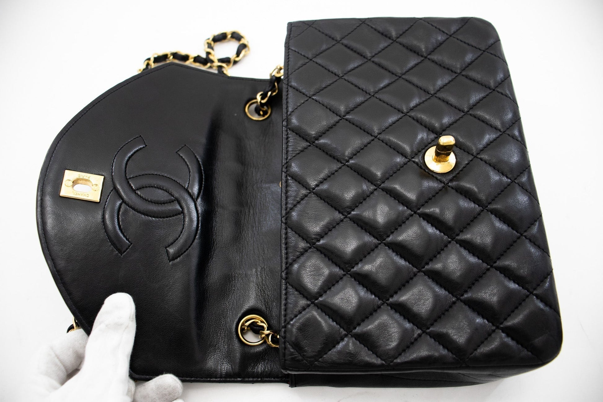 An CHANEL Half Moon Chain Shoulder Bag Crossbody Black Quilted Flap j18 This item is Vintage / Classic. The year of manufacture would be 1989-1991.