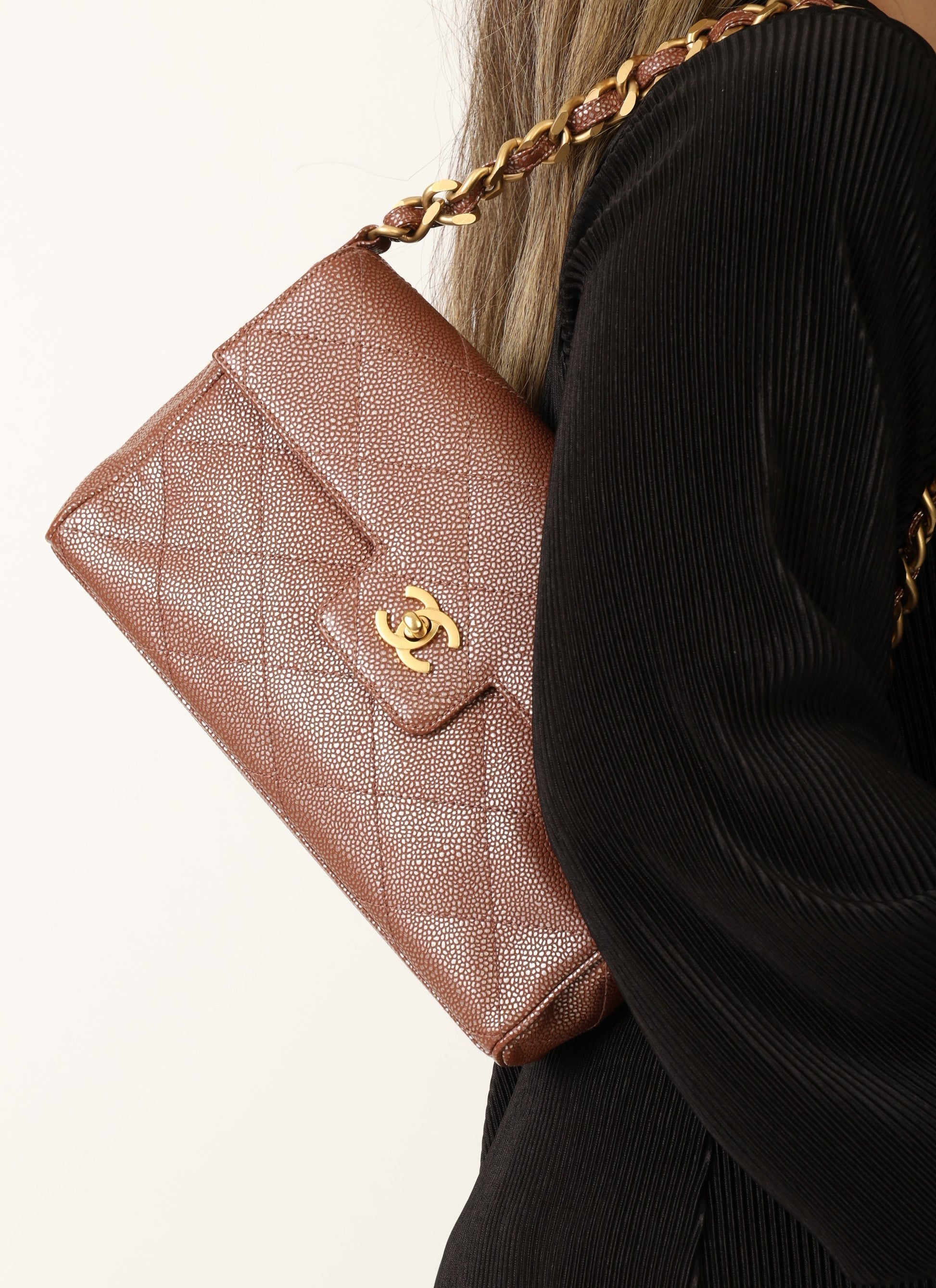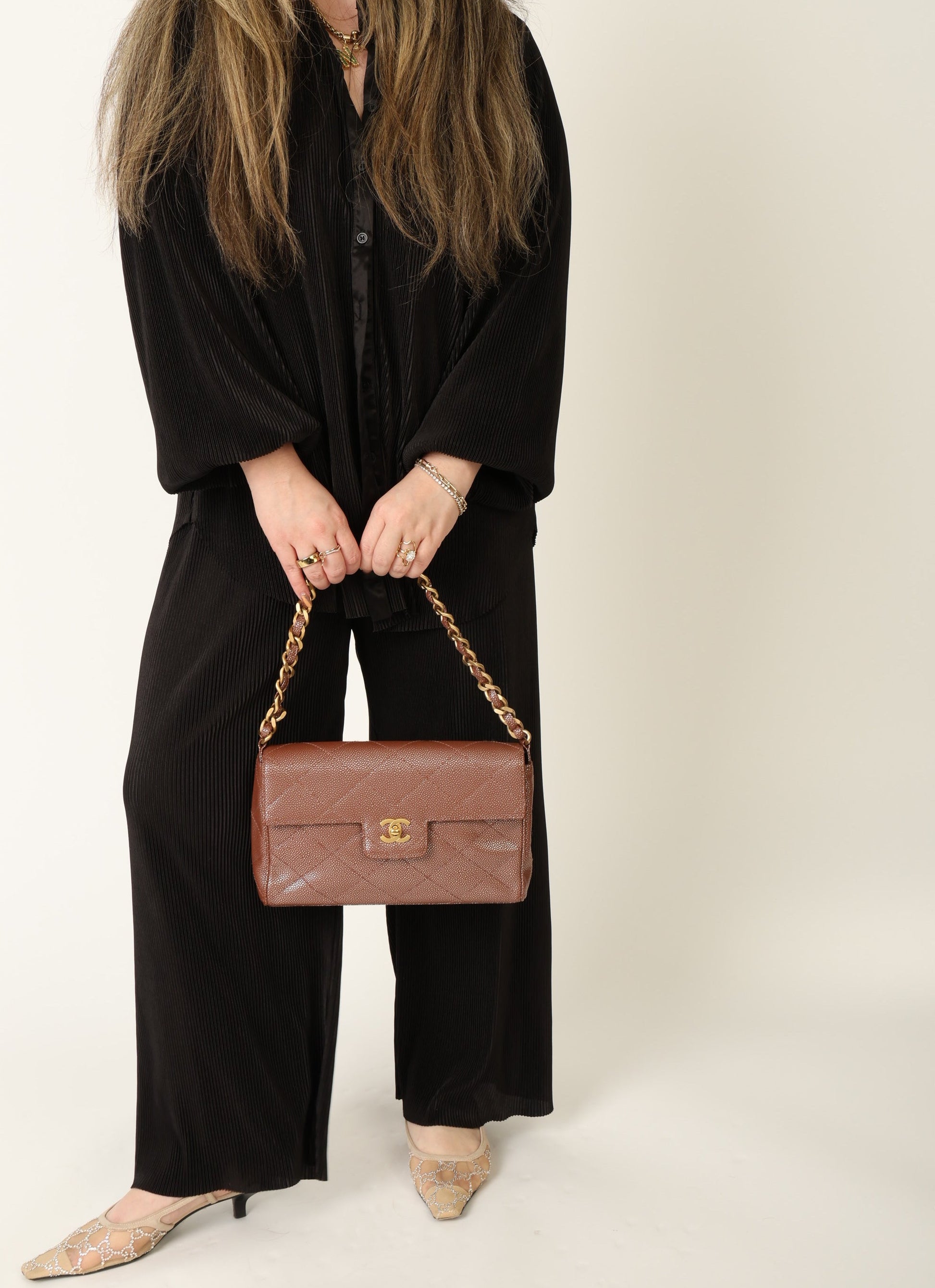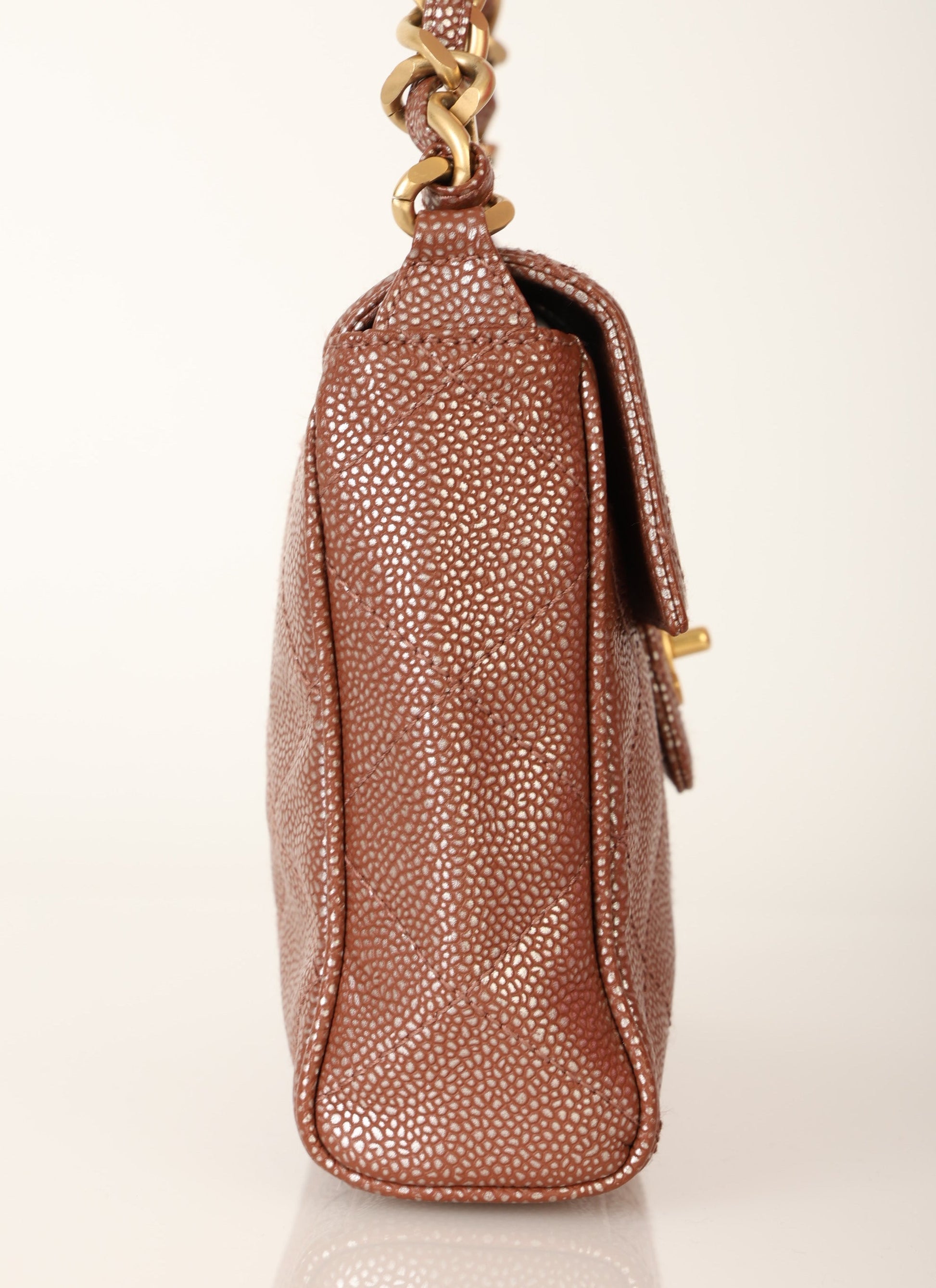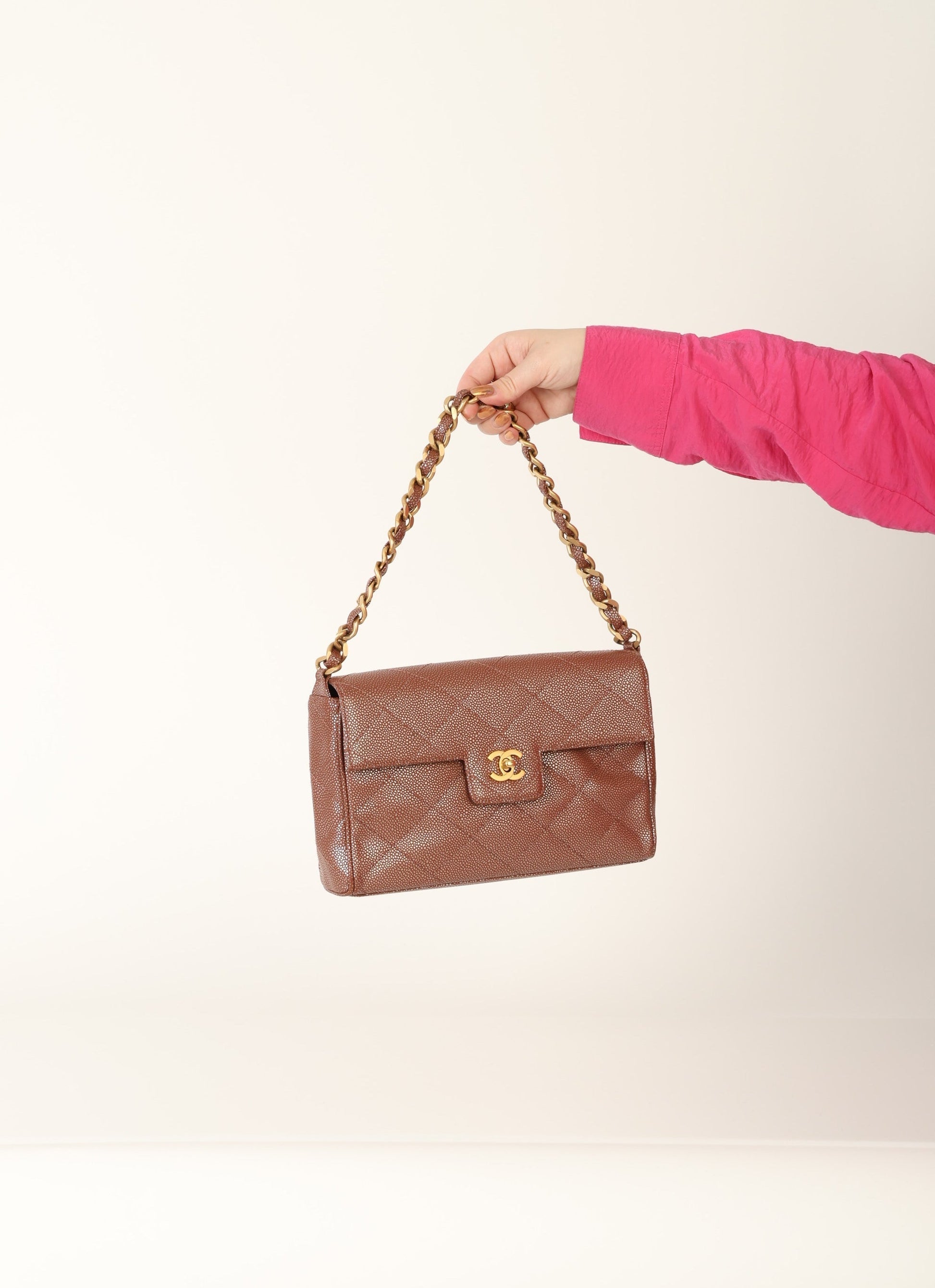 Dropping in the shop is a Chanel Caviar Shoulder Bag in a gorgeous mauve color with aged gold hardware! This piece has an incredible iridescent shine making this an eye-catching piece perfect to wear with any neutral outfit. The caviar material allows for extreme durability?and the gorgeous mauve color is complimented by gold hardware. You can fit your phone, wallet, sunglasses, keys, and one or two smaller essentials.