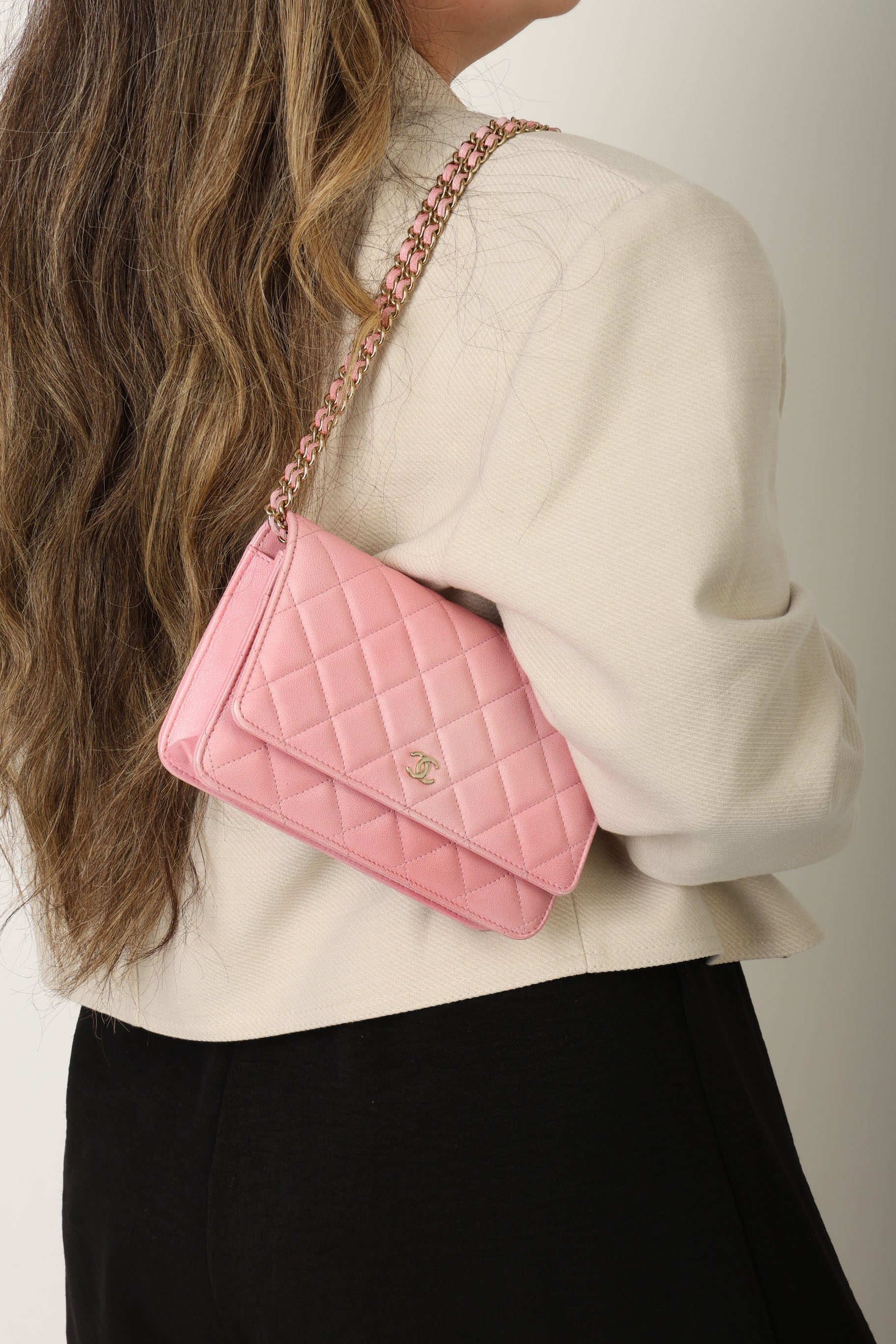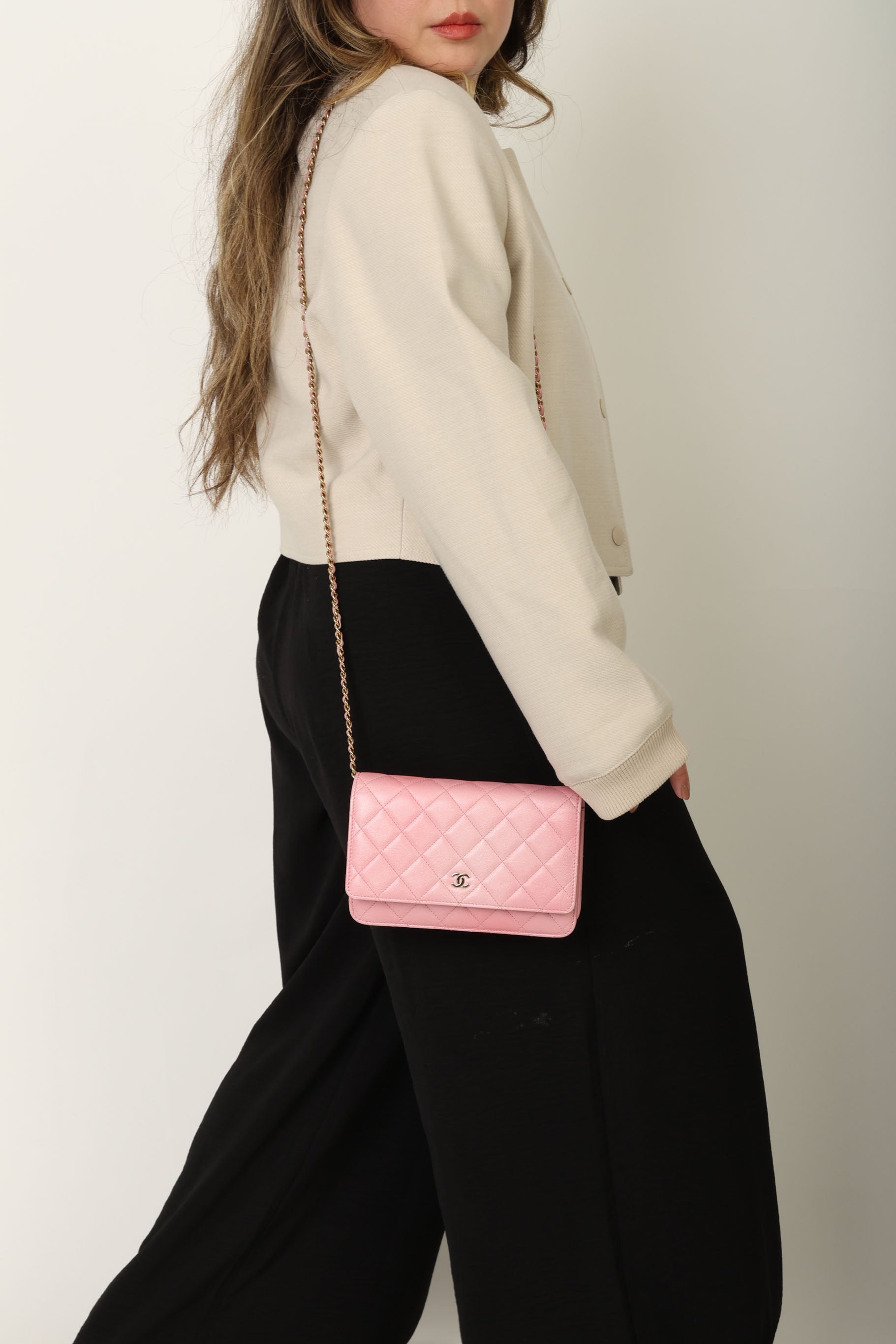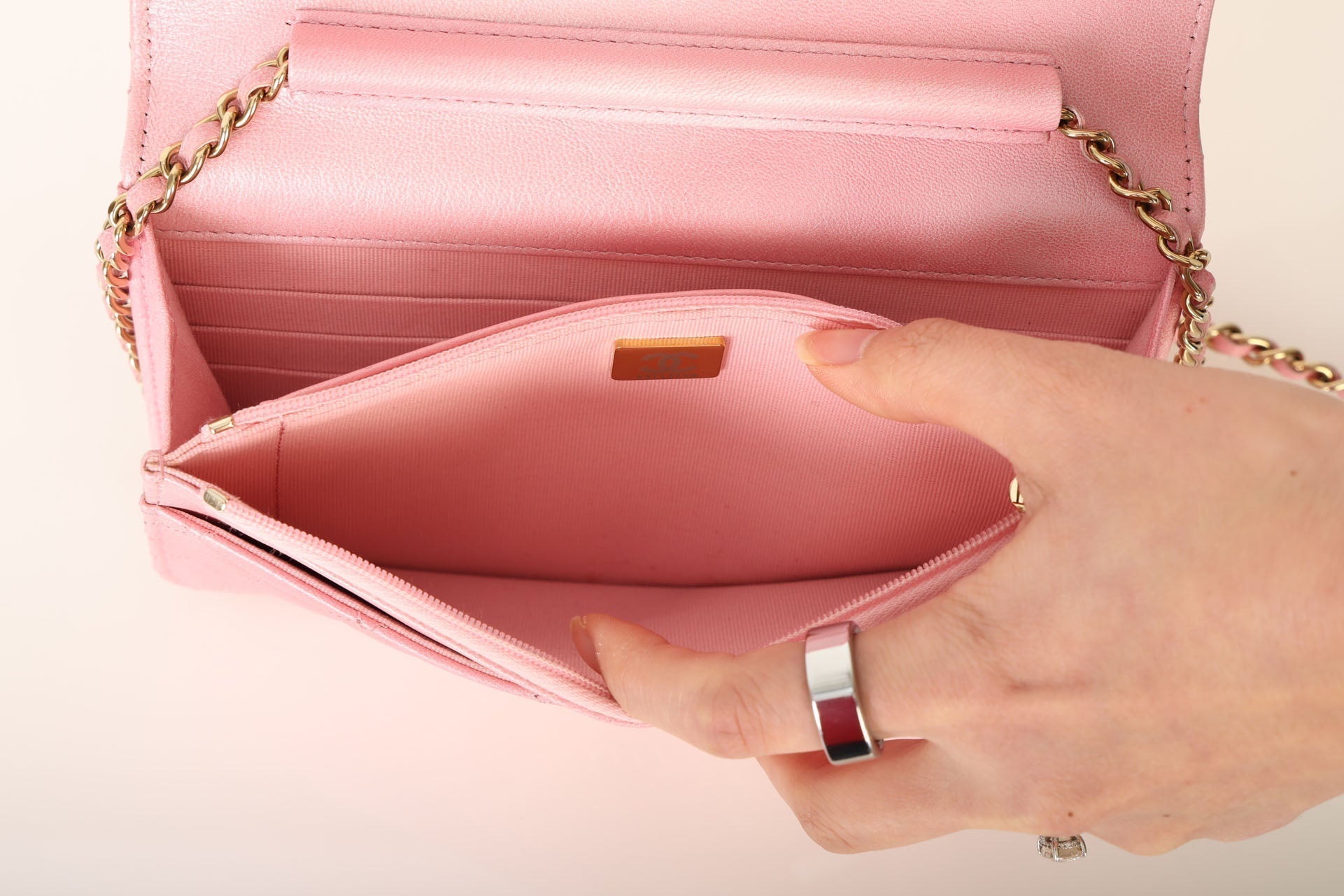 Dropping in the shop again is a chic Chanel Caviar Wallet on Chain but in a beautiful iridescent pink and gold hardware! The perfect bag to transition from day to night activities, or even for traveling this season!