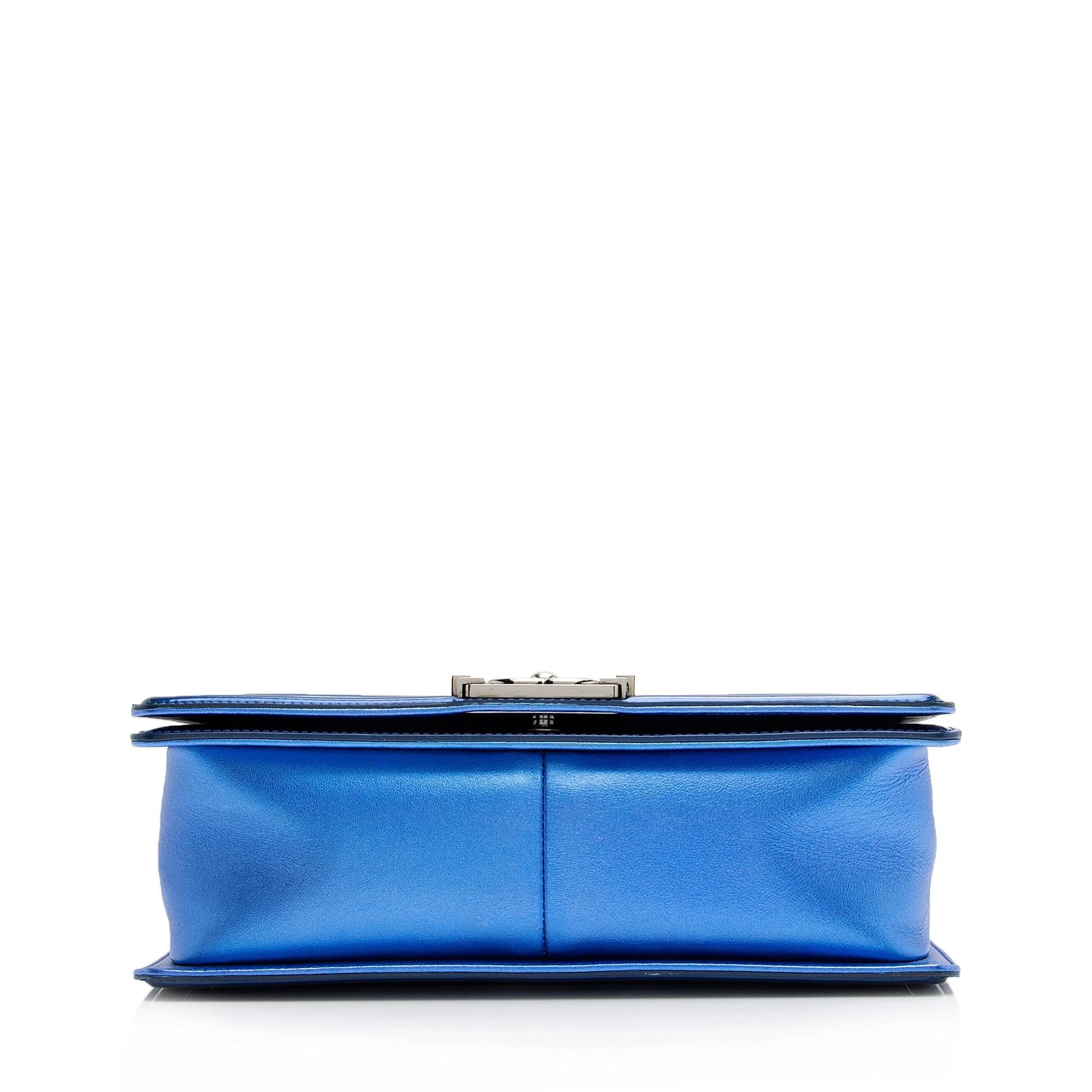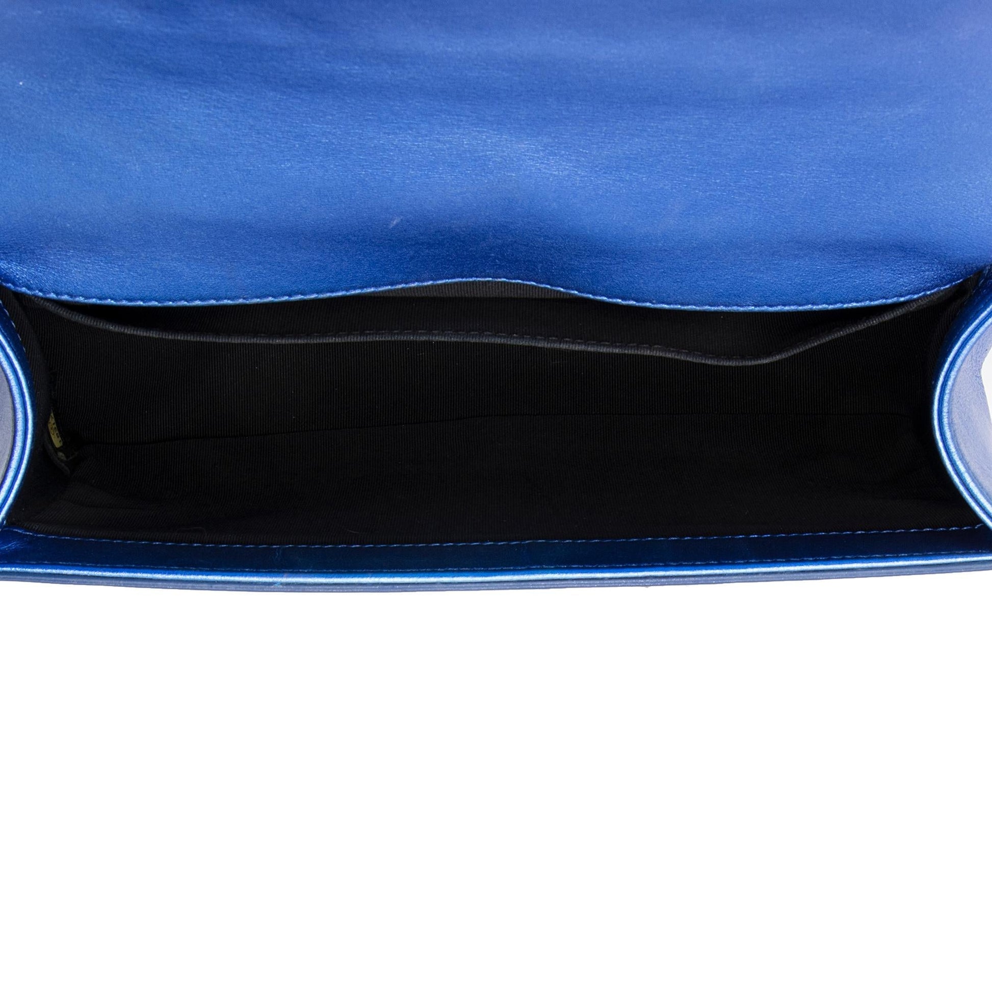 Chanel Metallic Patent Leather Old Medium Boy Bag (SHF-23789)